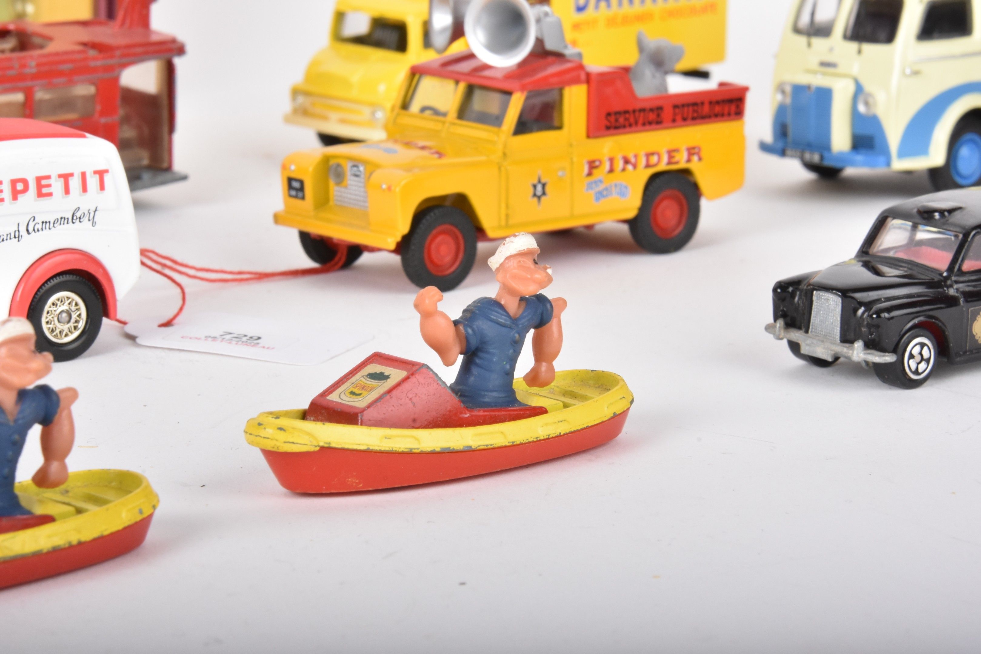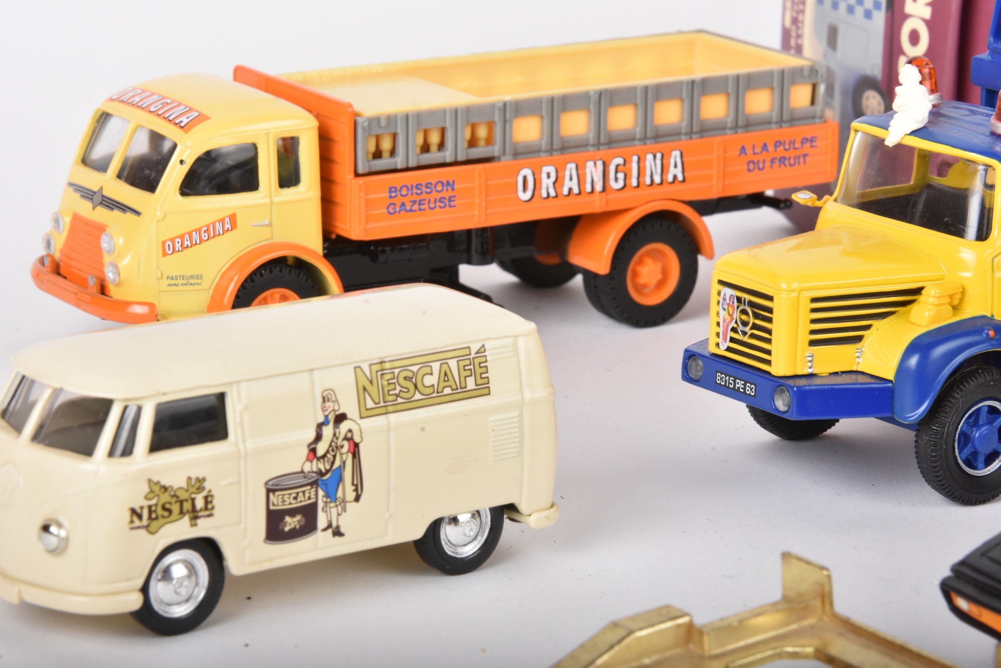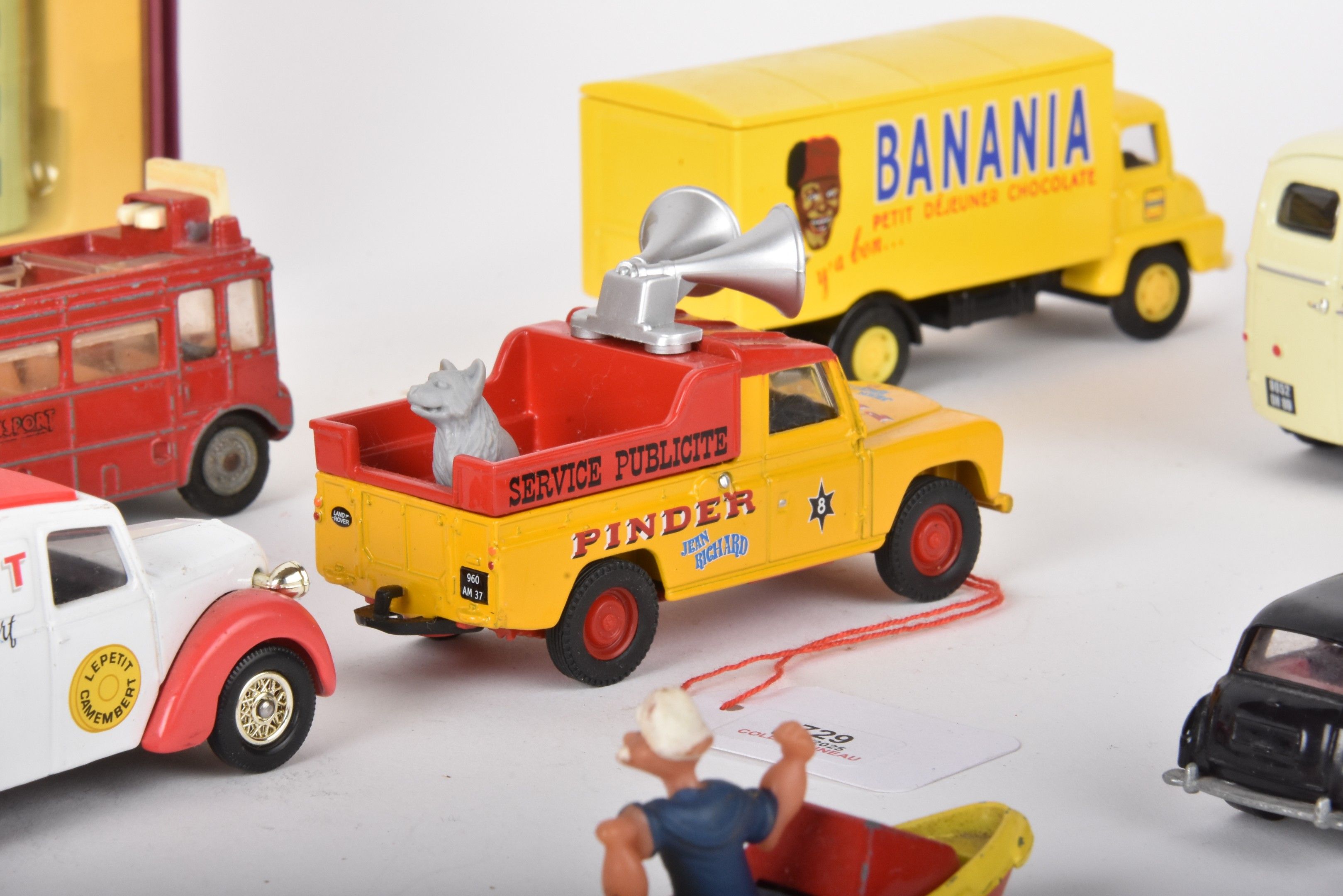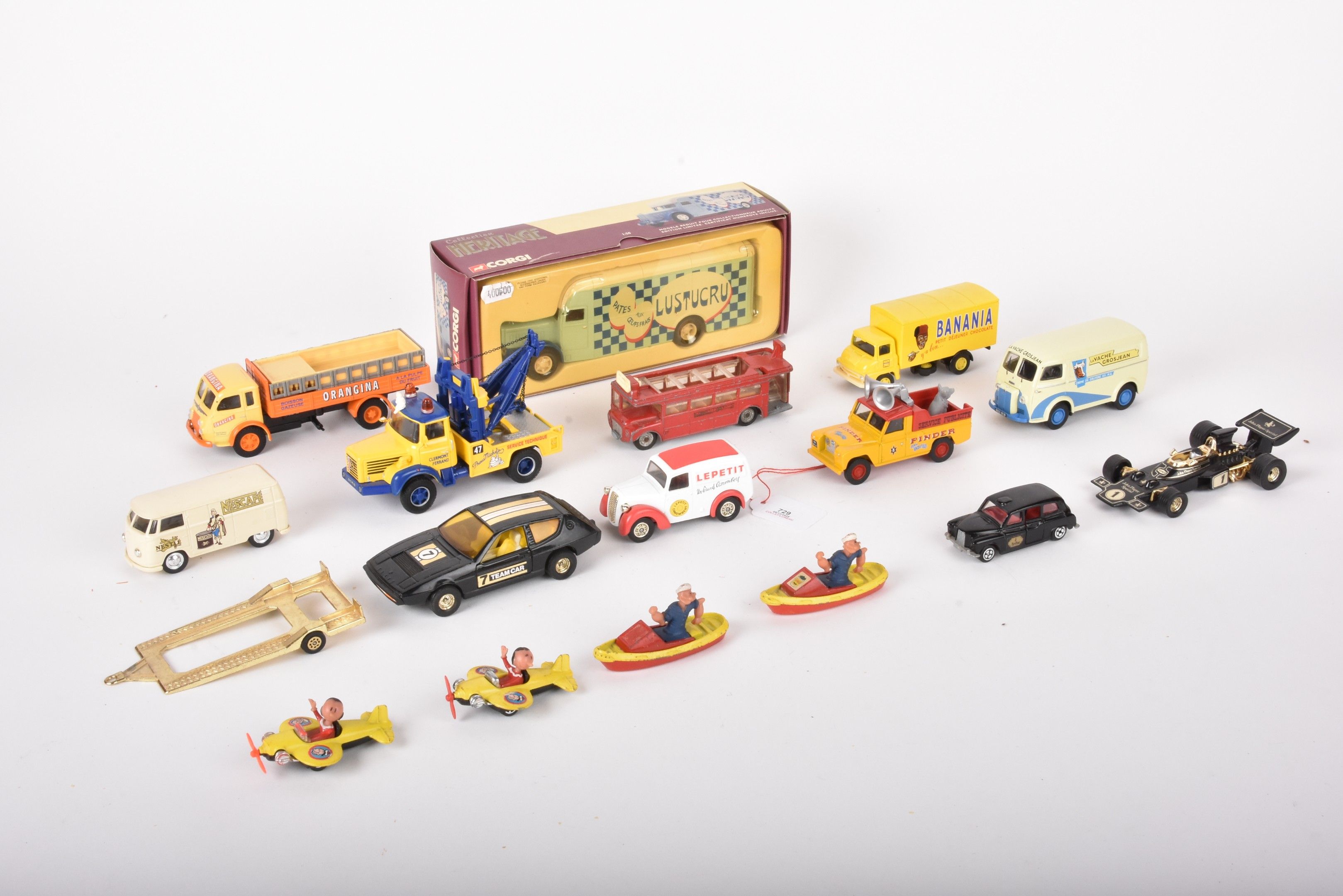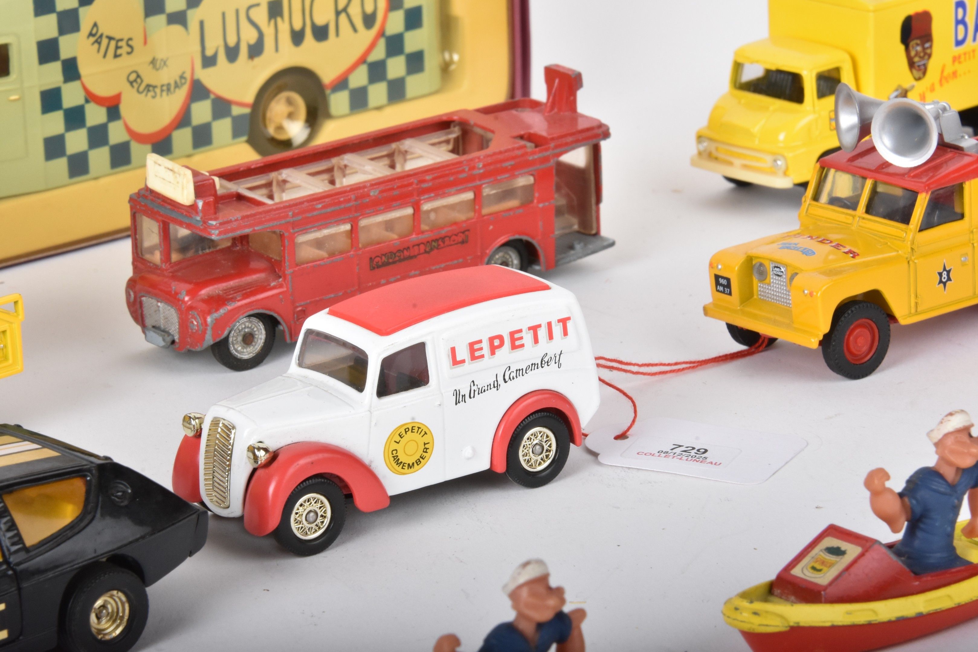Lot of 10 various miniatures including Lotus Elite, Pinder, la vache Grosjean, Orangina, Michelin, Banania, Popeye, etc ... (some recent)