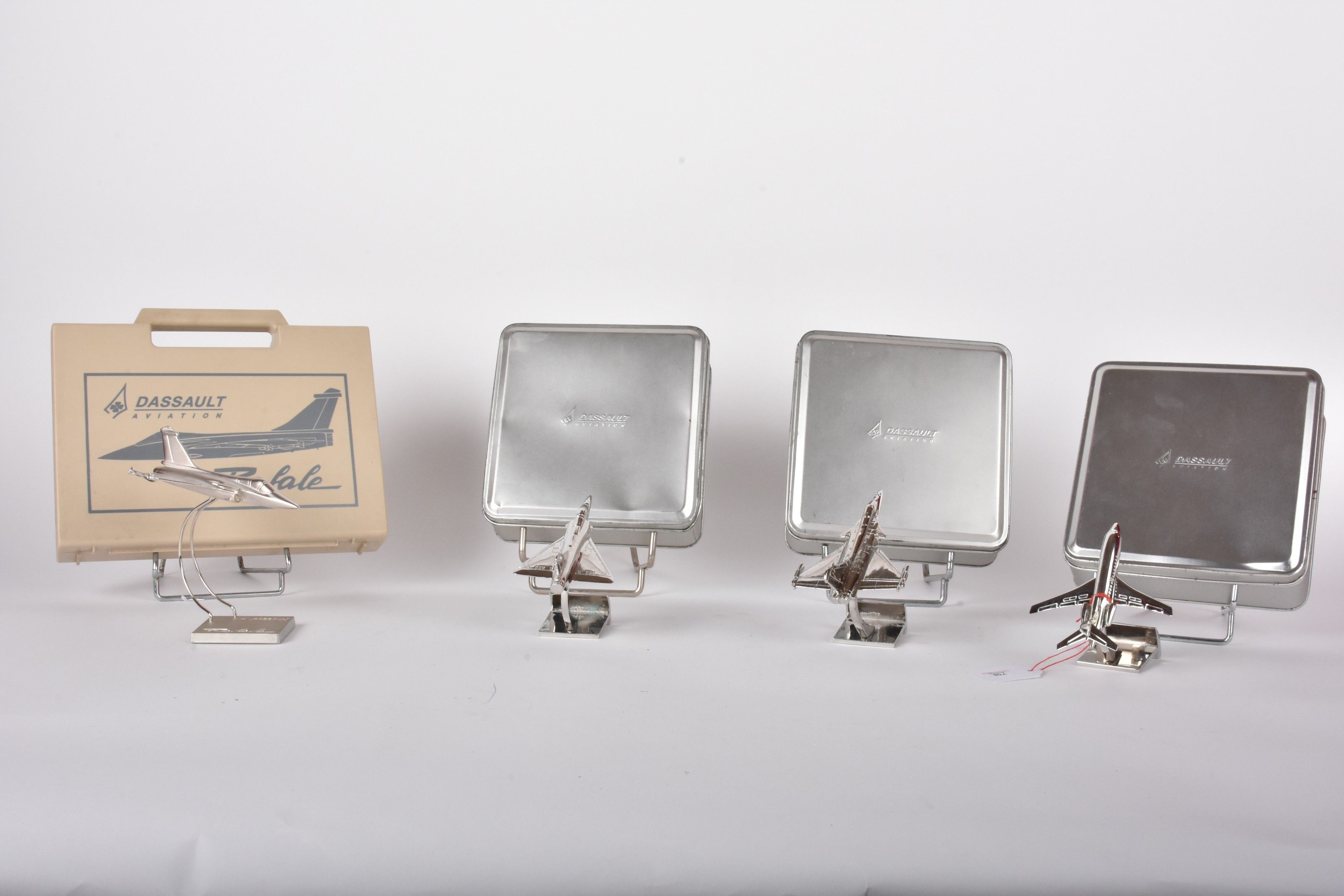 DASSAULT AVIATION - 4 chromed metal models in their case