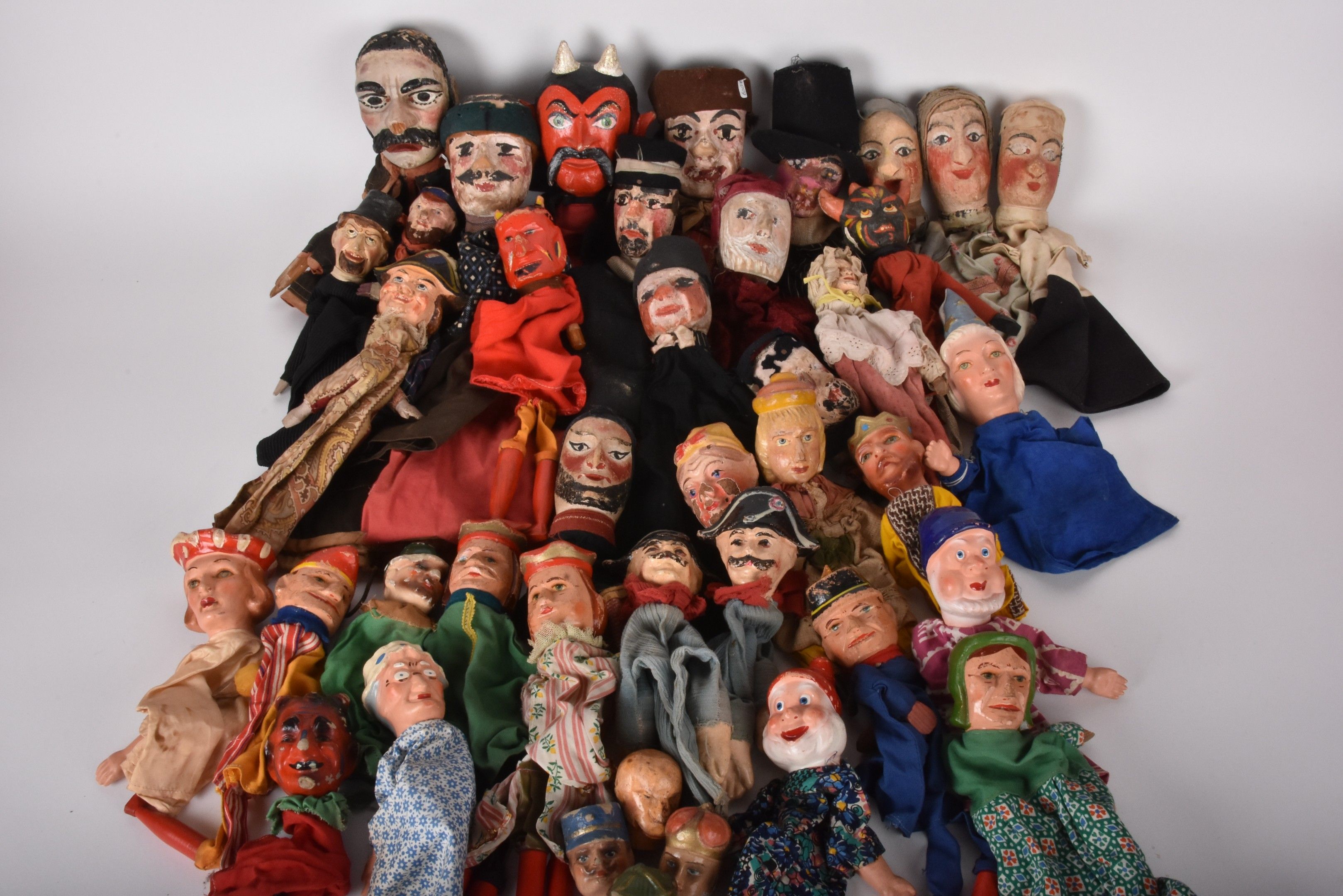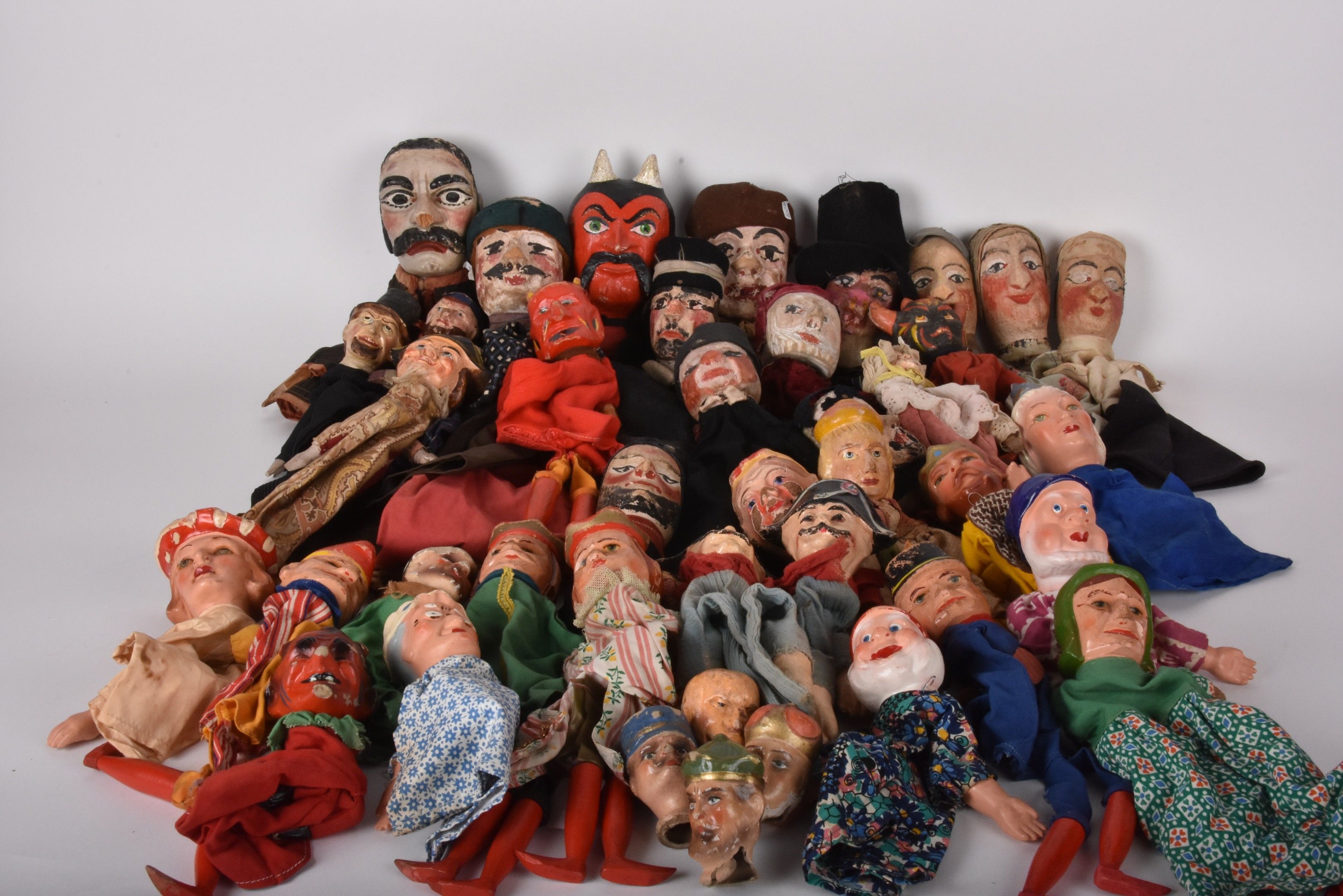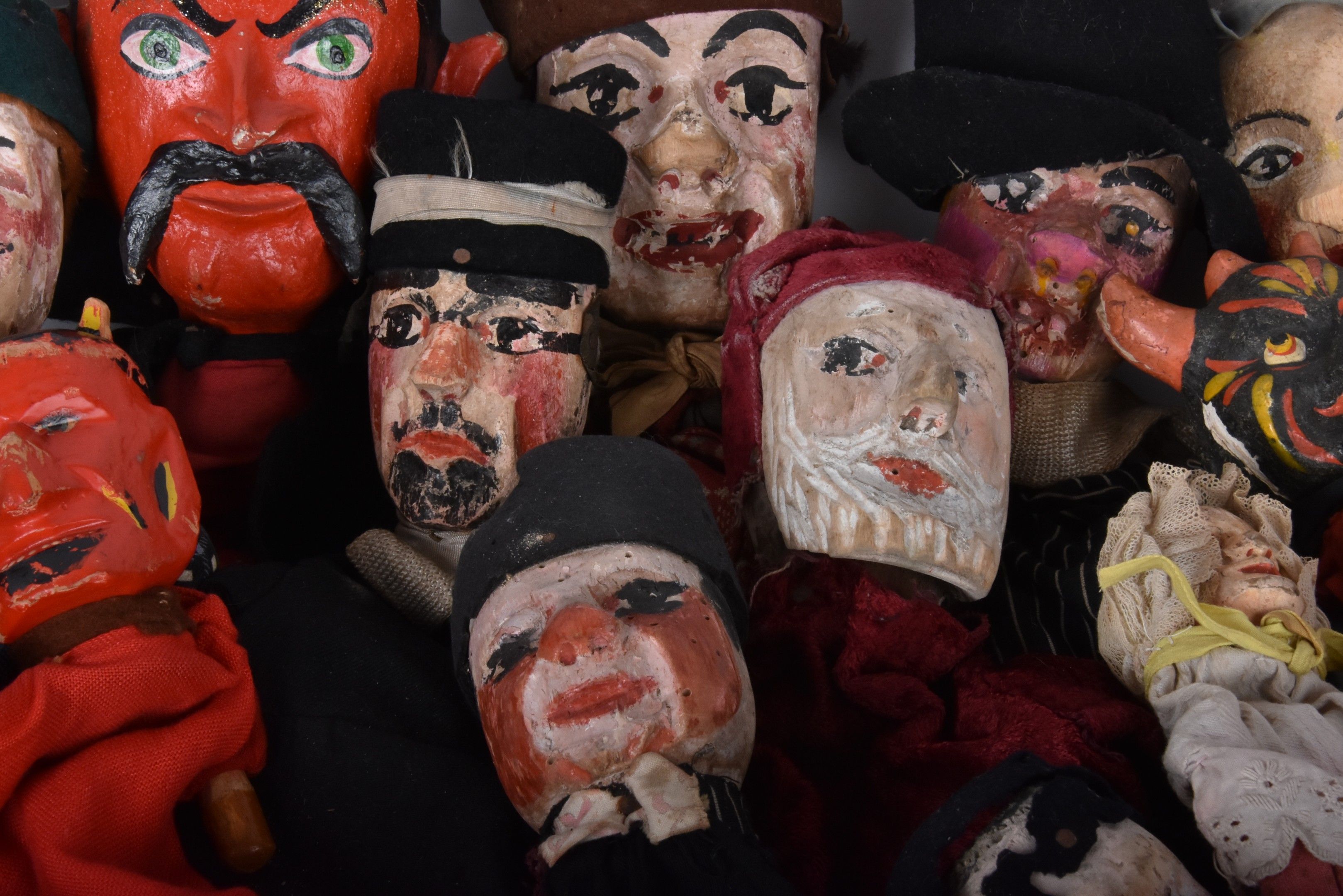 Large lot of Guignol puppets (about 30) of different periods, models and sizes