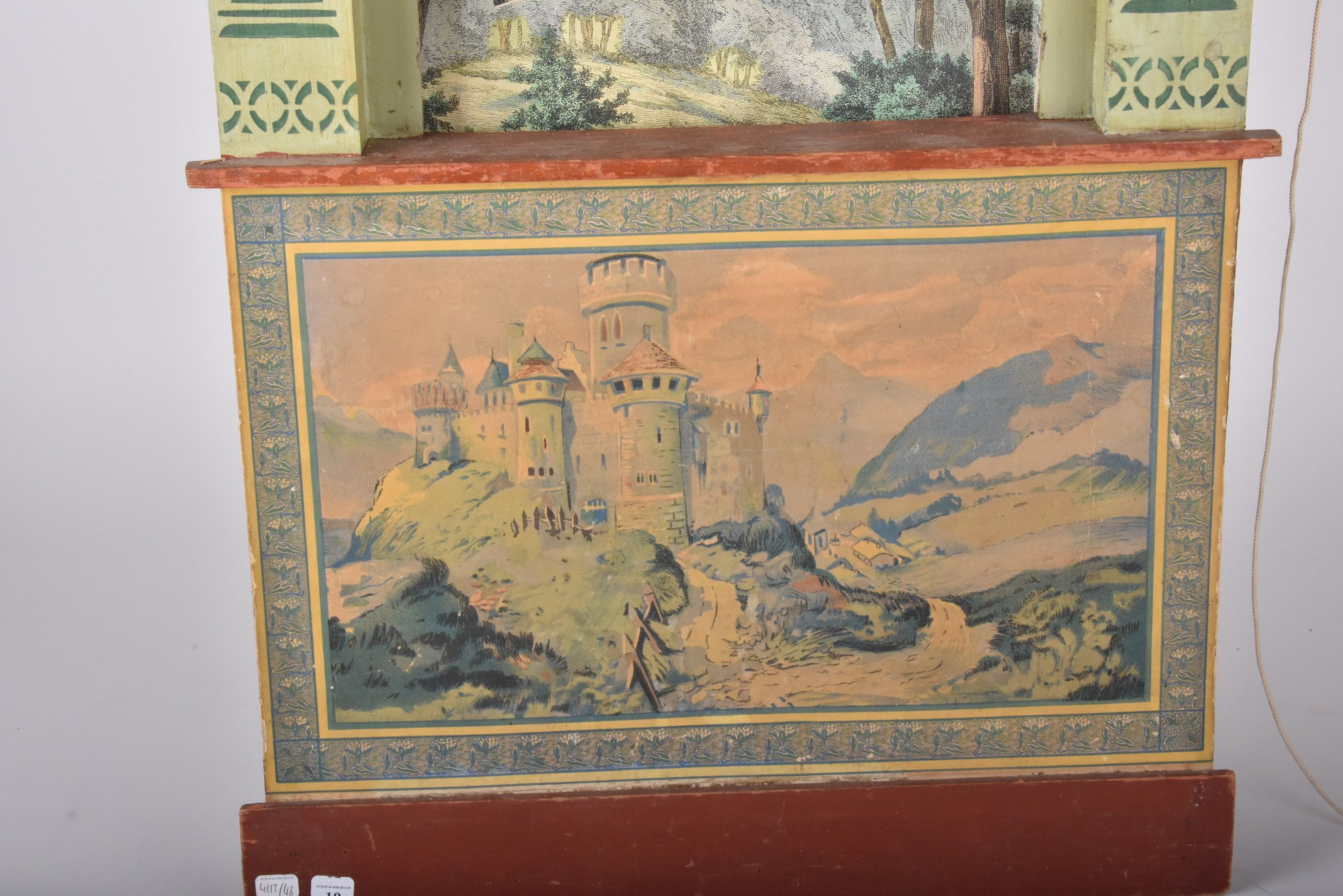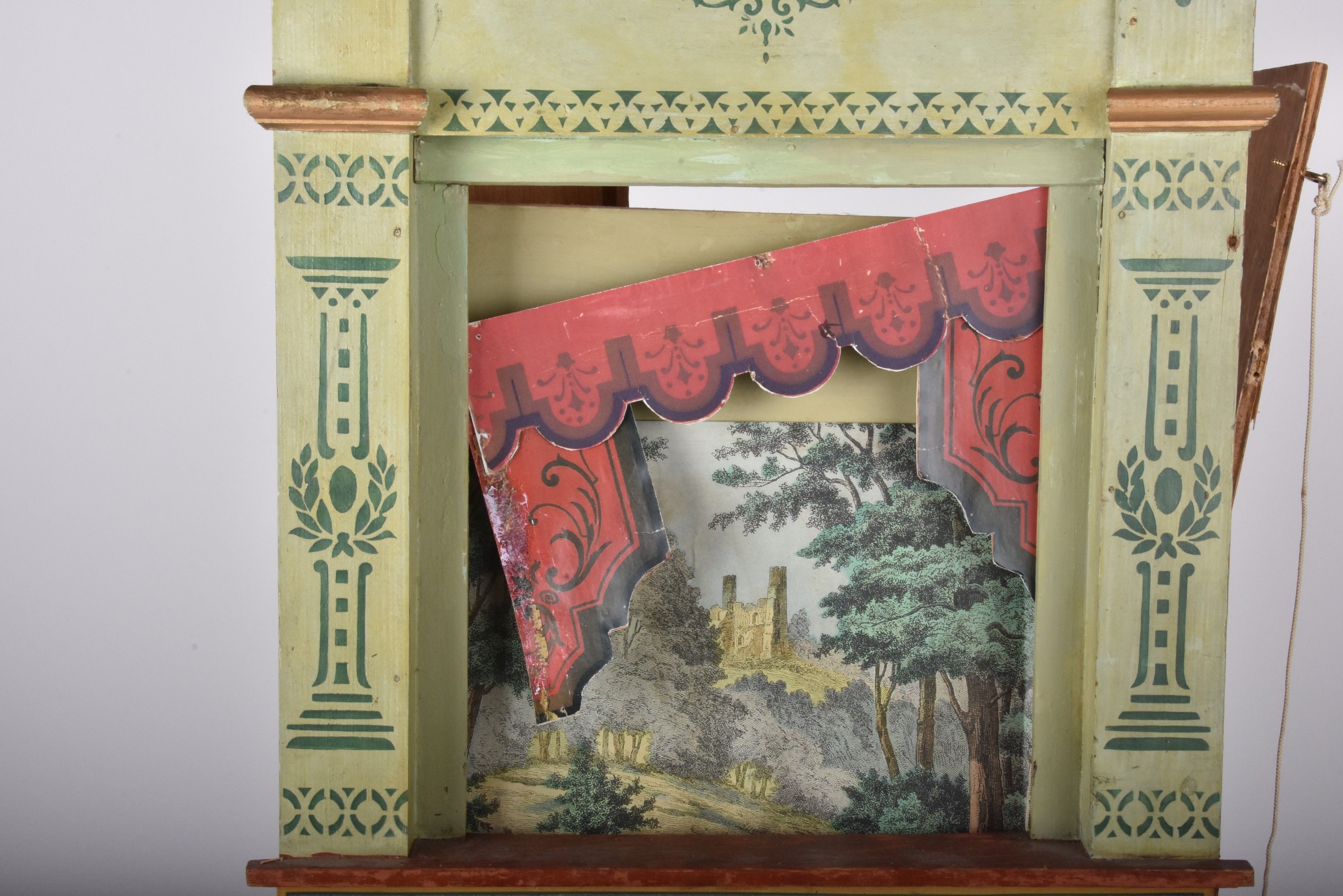 Polychrome painted wood Guignol theatre decorated with a castle (accidents and missing parts, part to be reattached) Early 20th century