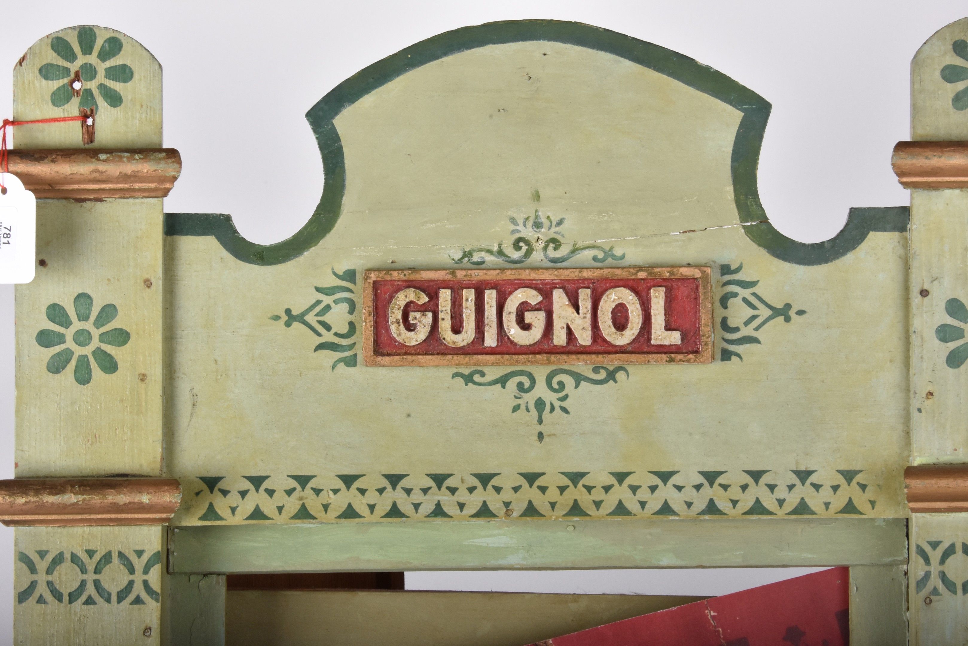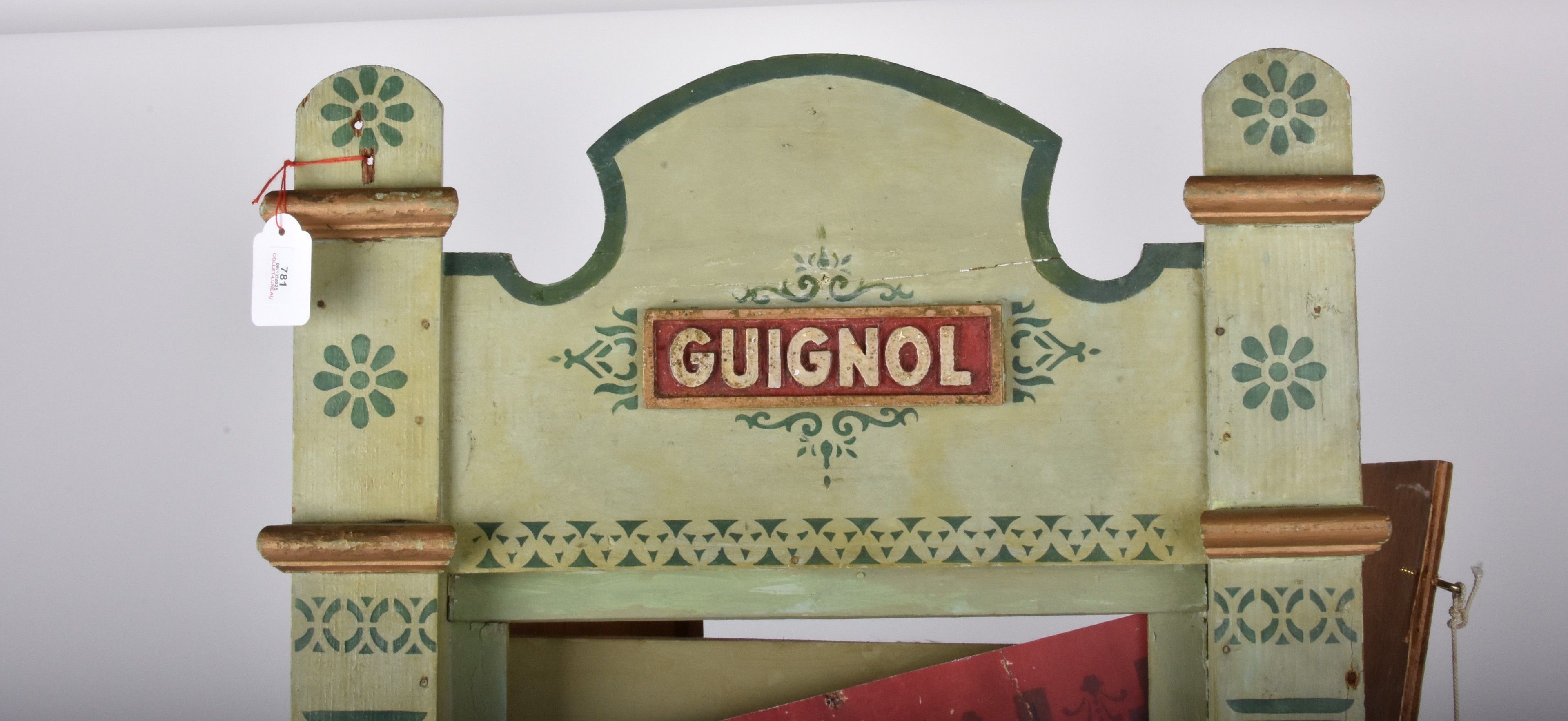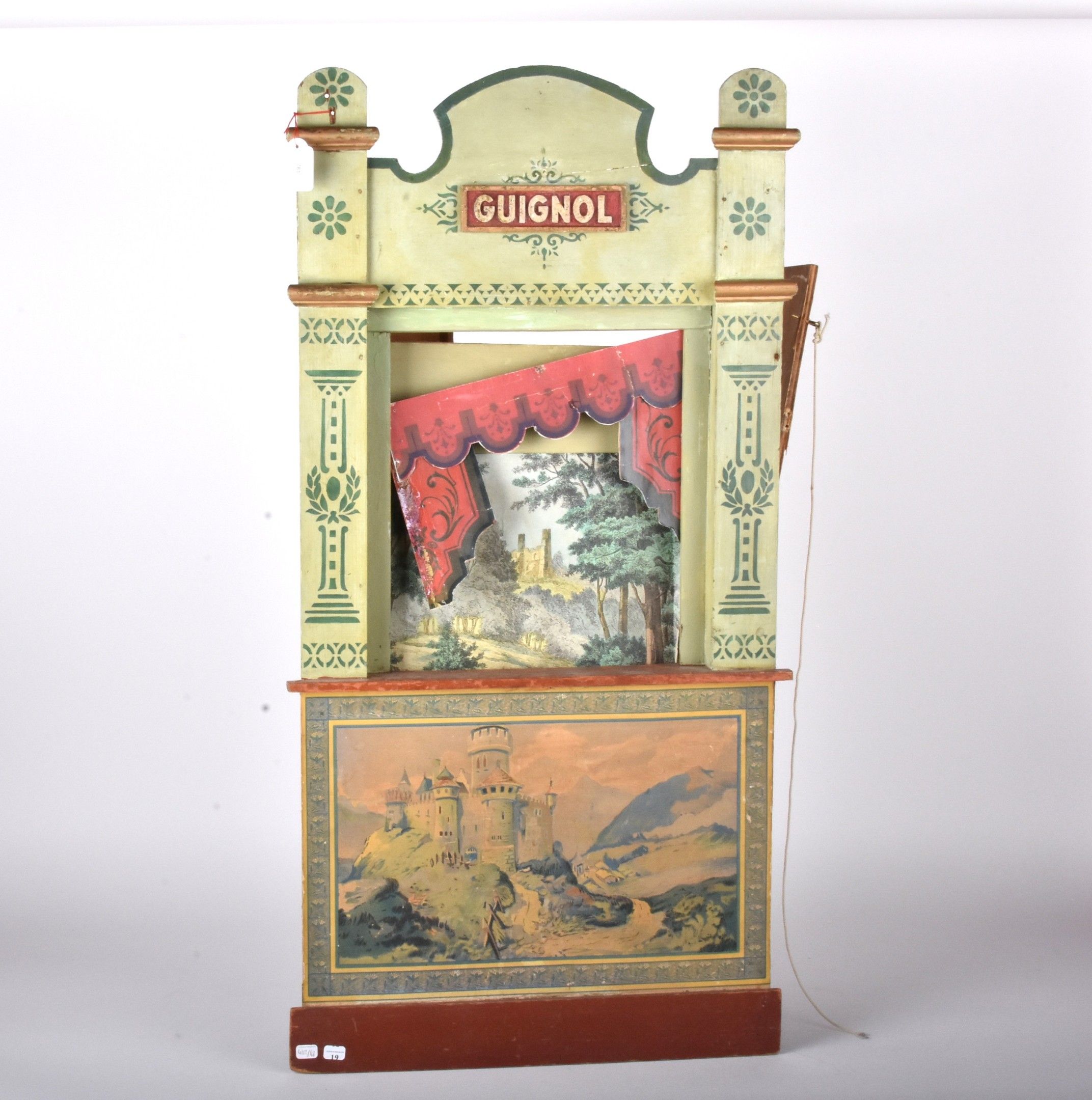 Polychrome painted wood Guignol theatre decorated with a cas…