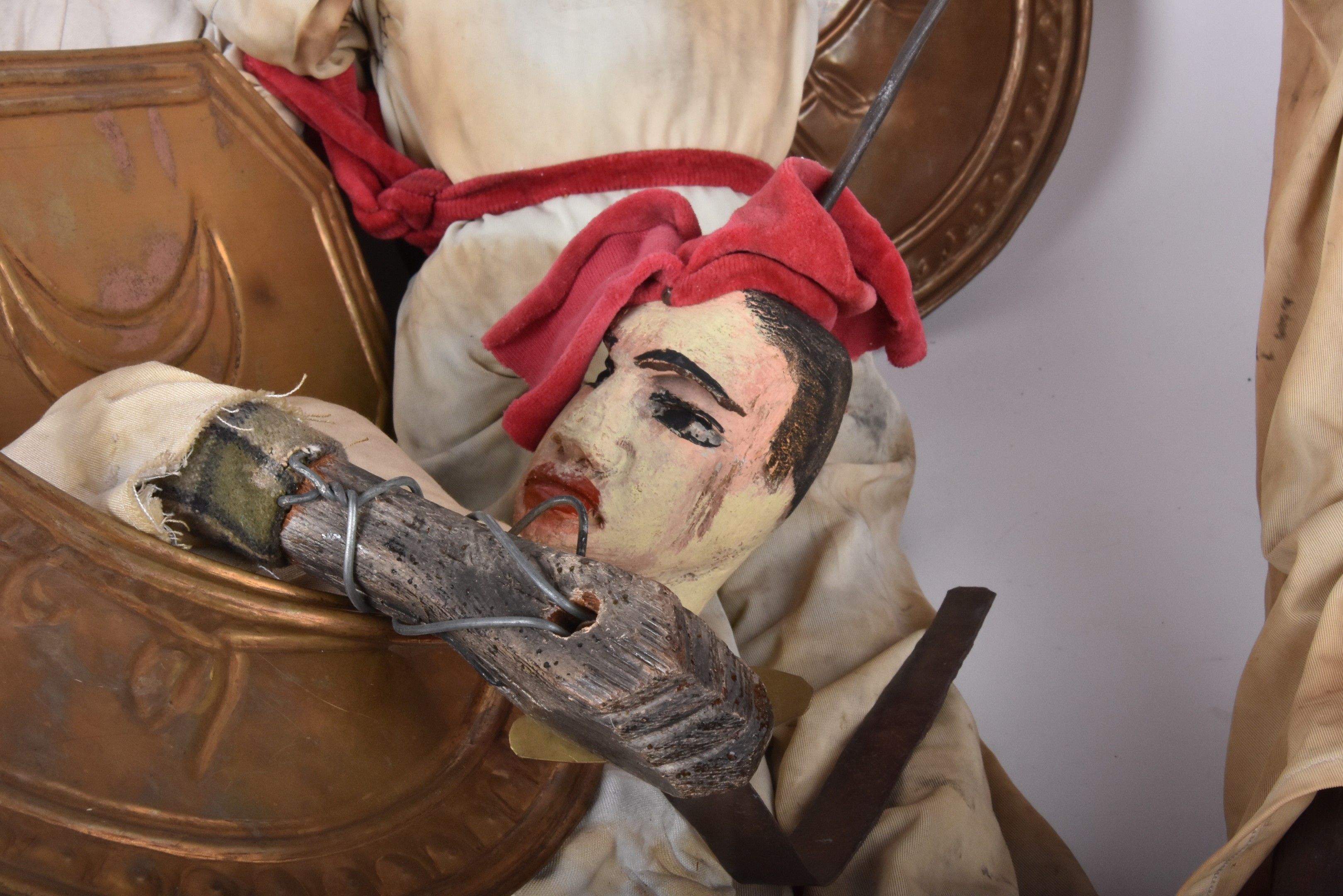 PUPI de PALERME - Six combatants with shields adorned with the crescent, polychromy of use, missing parts and small accidents - XX° century H. 75 cm approx. Five heads attached.