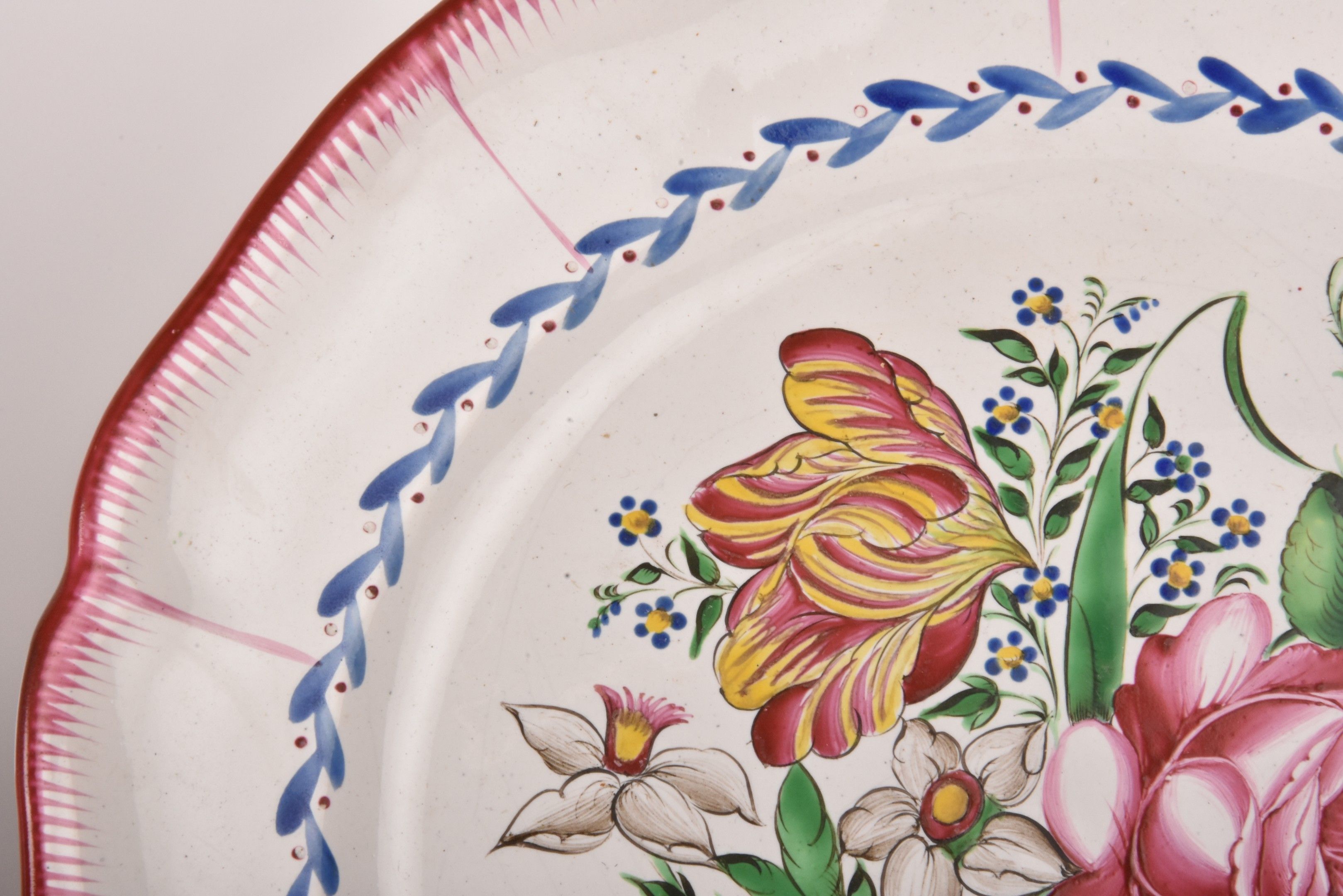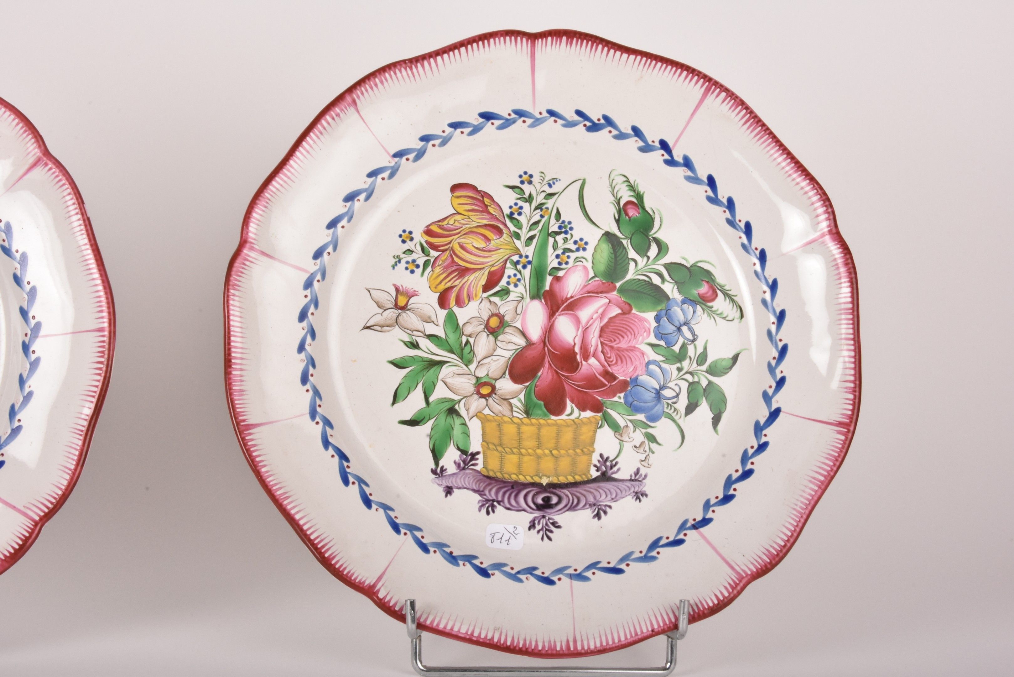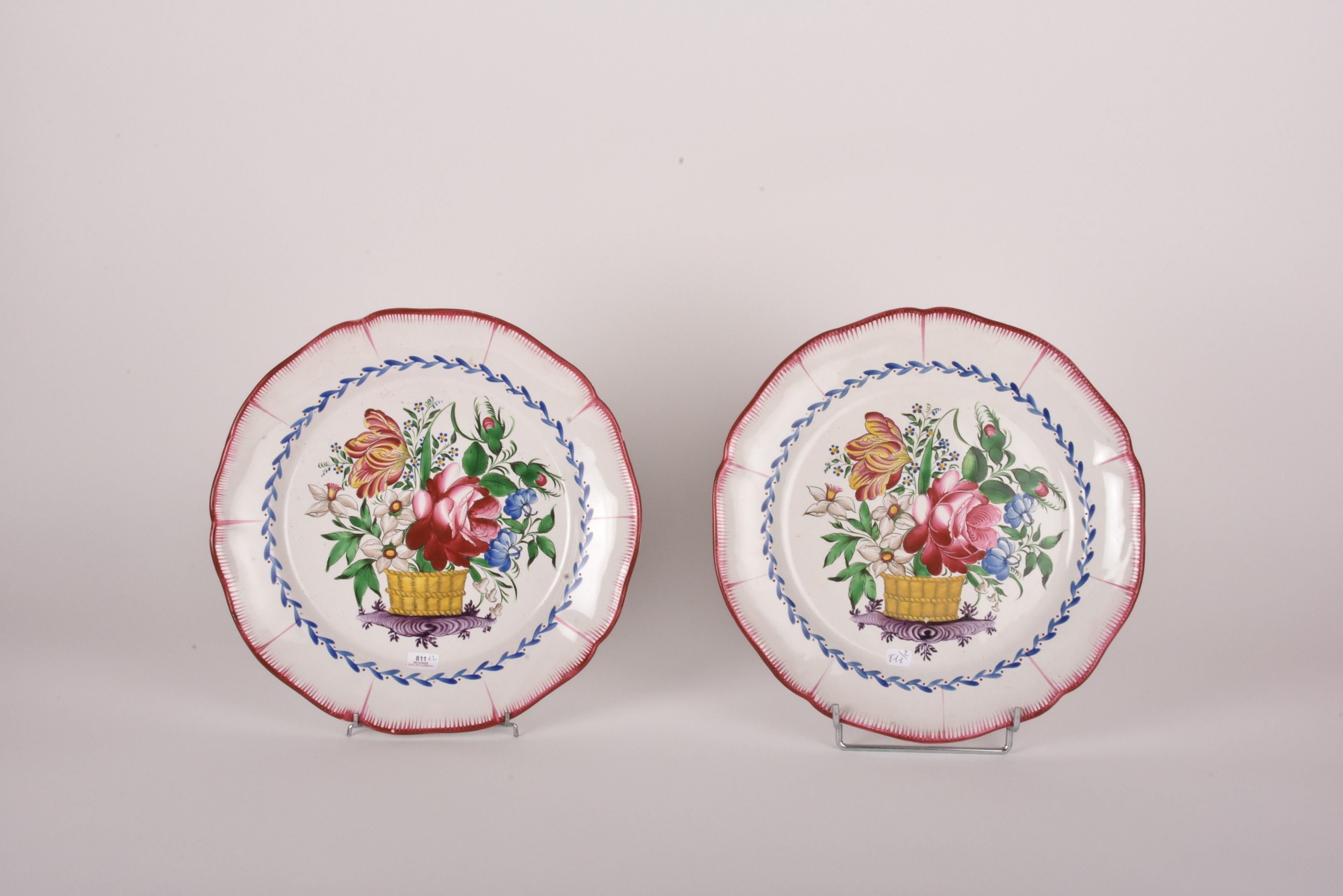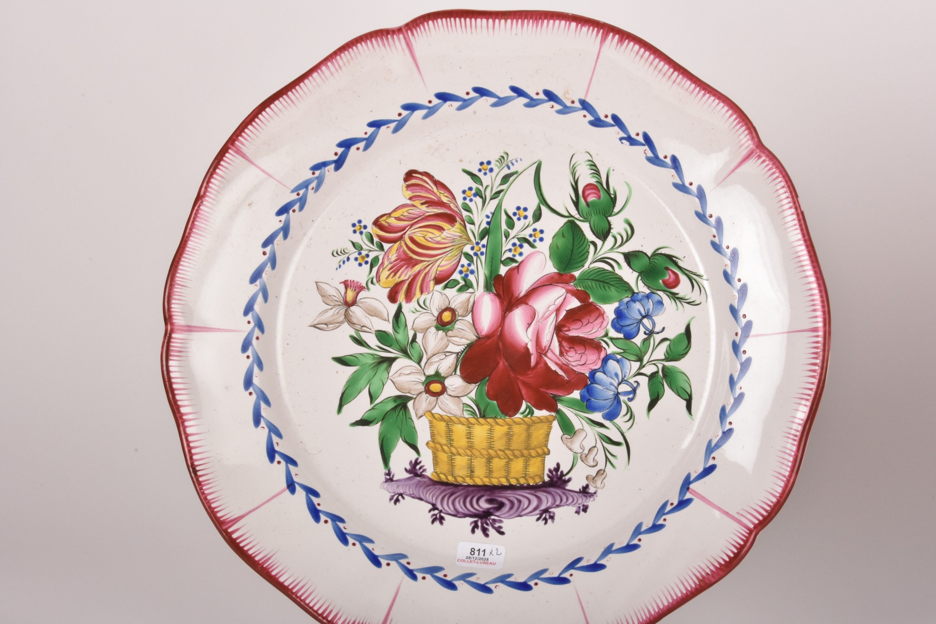 LES ISLETTES. Pair of earthenware dishes decorated with a basket of flowers, the wing decorated with a blue frieze.