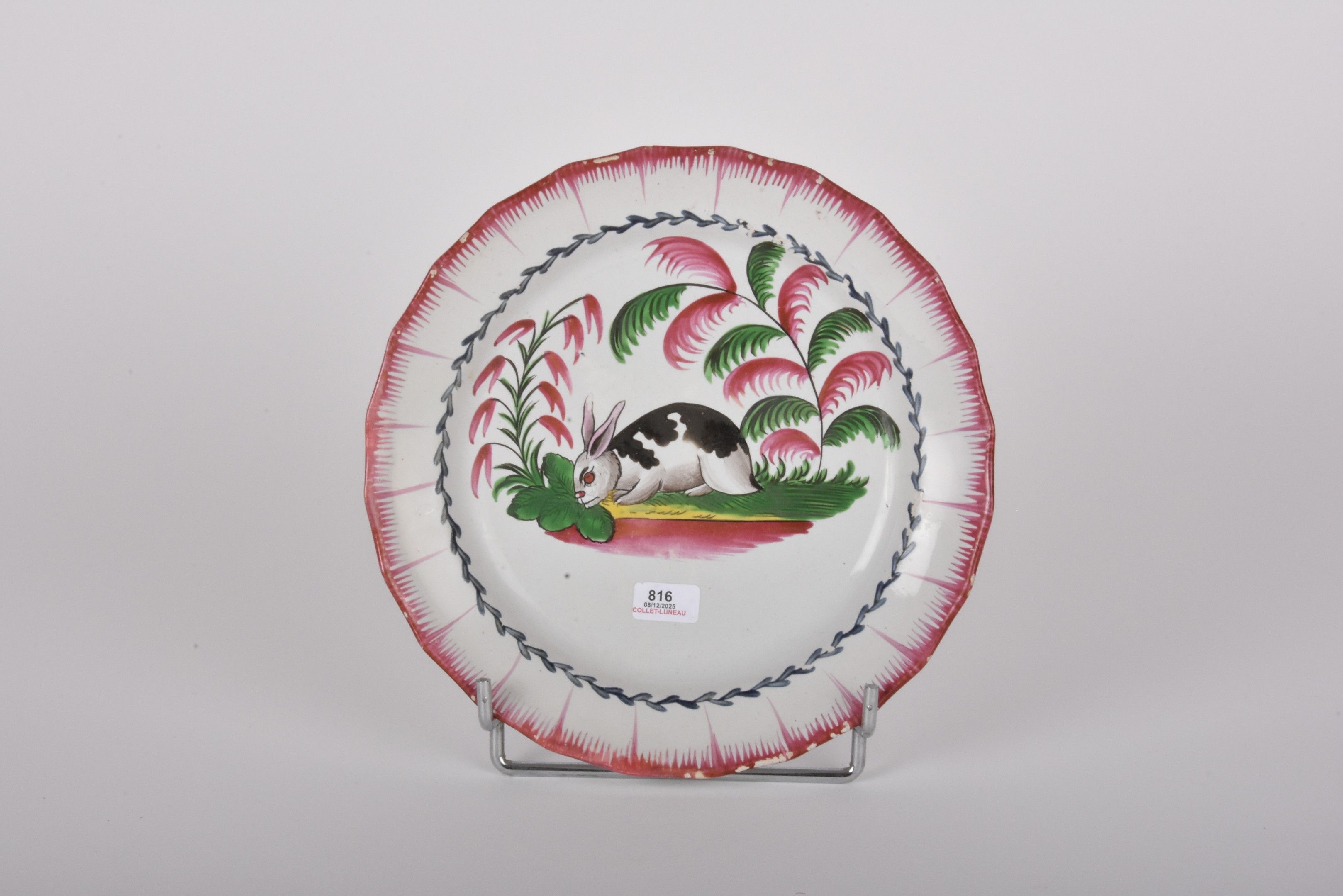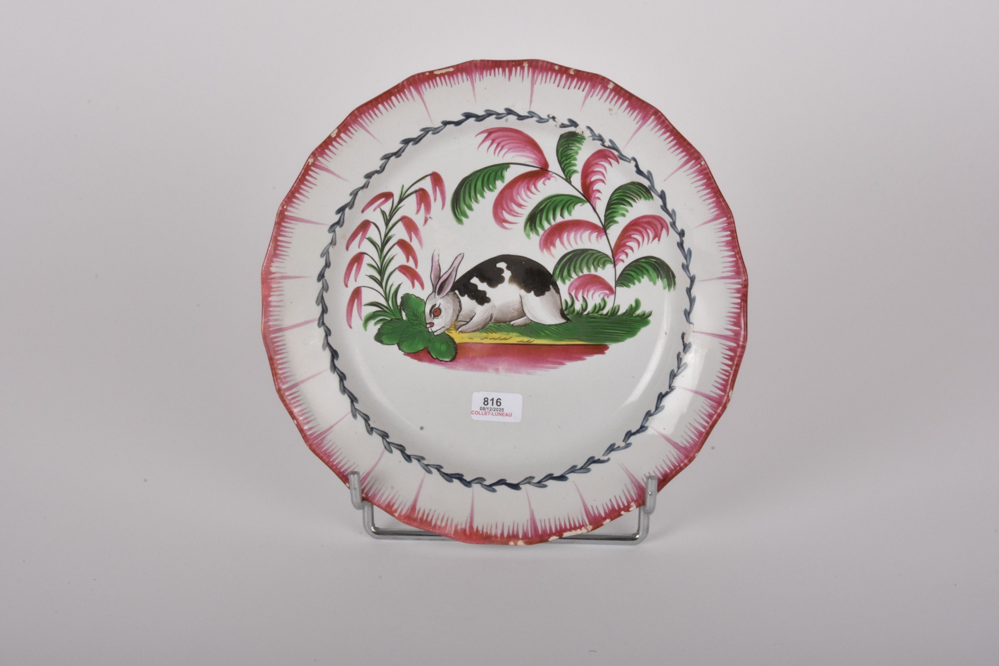 LES ISLETTES. Small earthenware plate decorated with a rabbi…