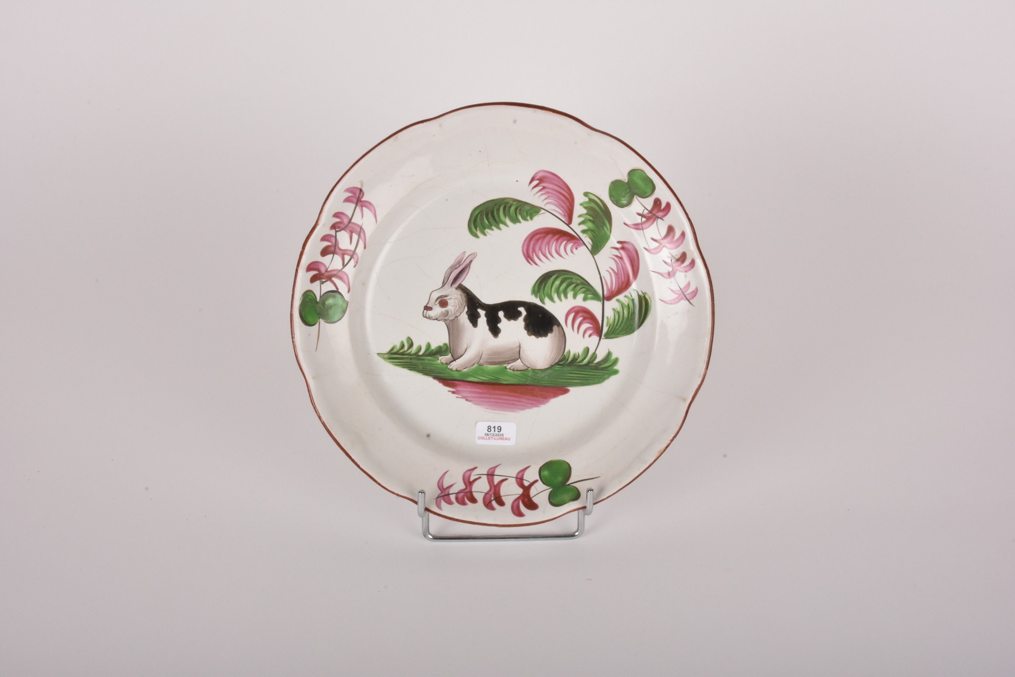 LES ISLETTES. Earthenware plate decorated with a rabbit, the…