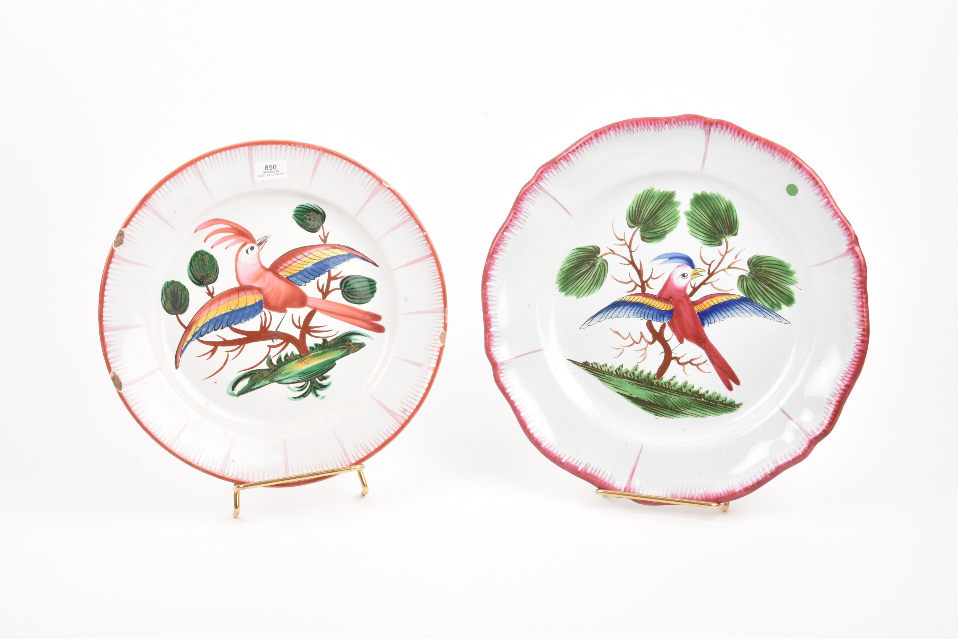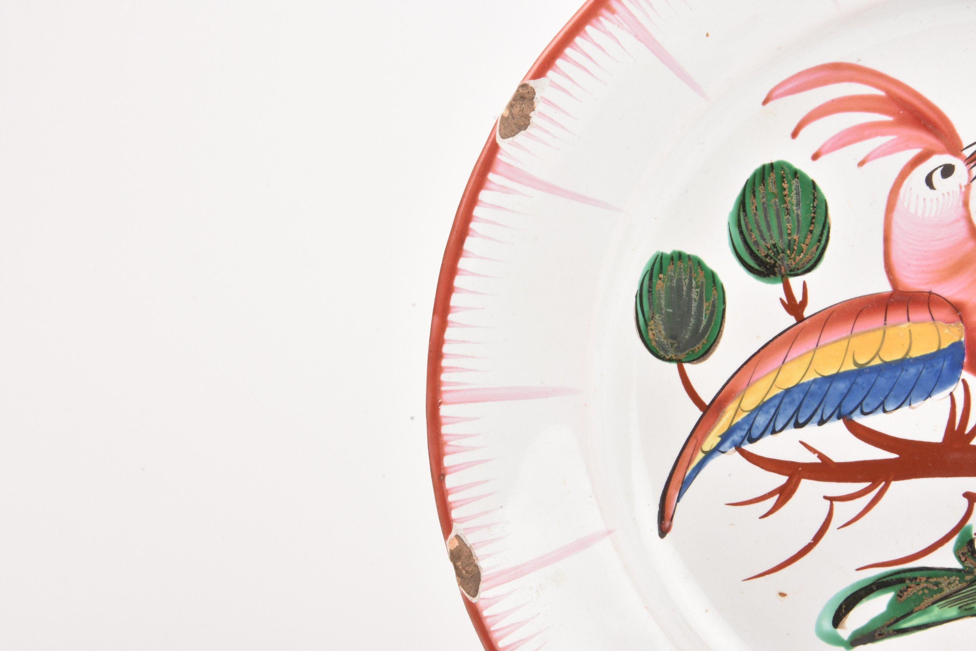 LES ISLETTES. Set of an earthenware dish and plate decorated with fire birds.