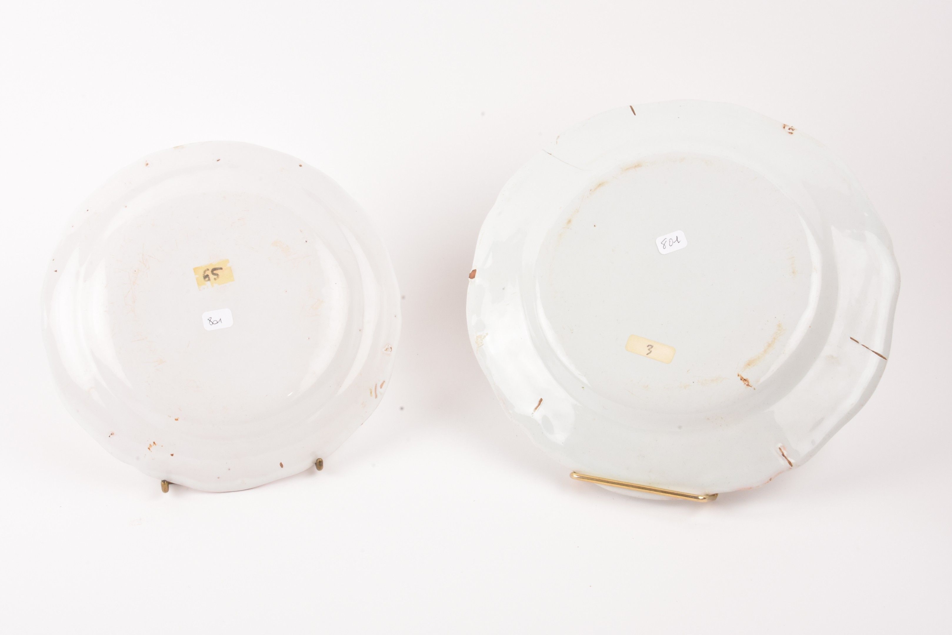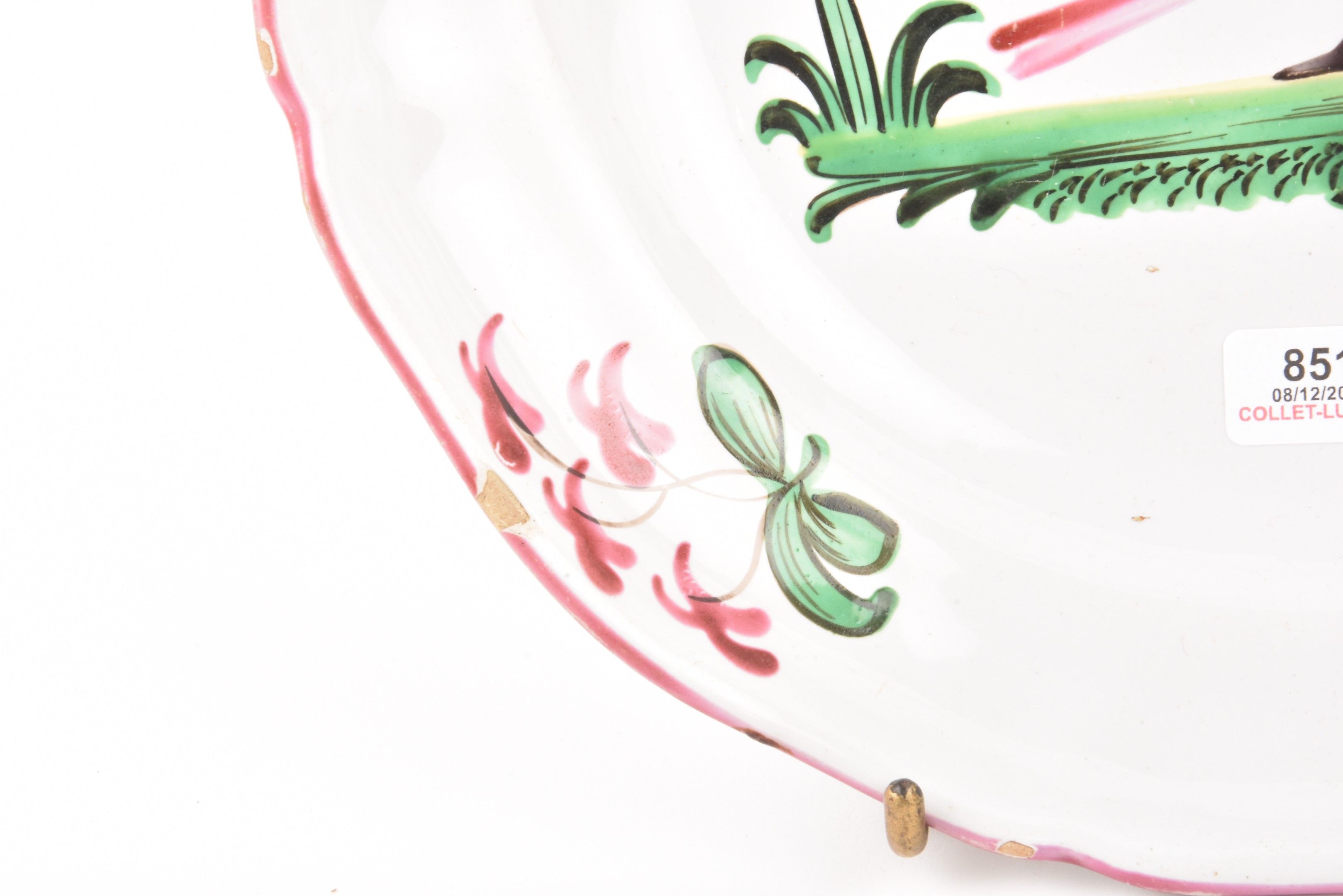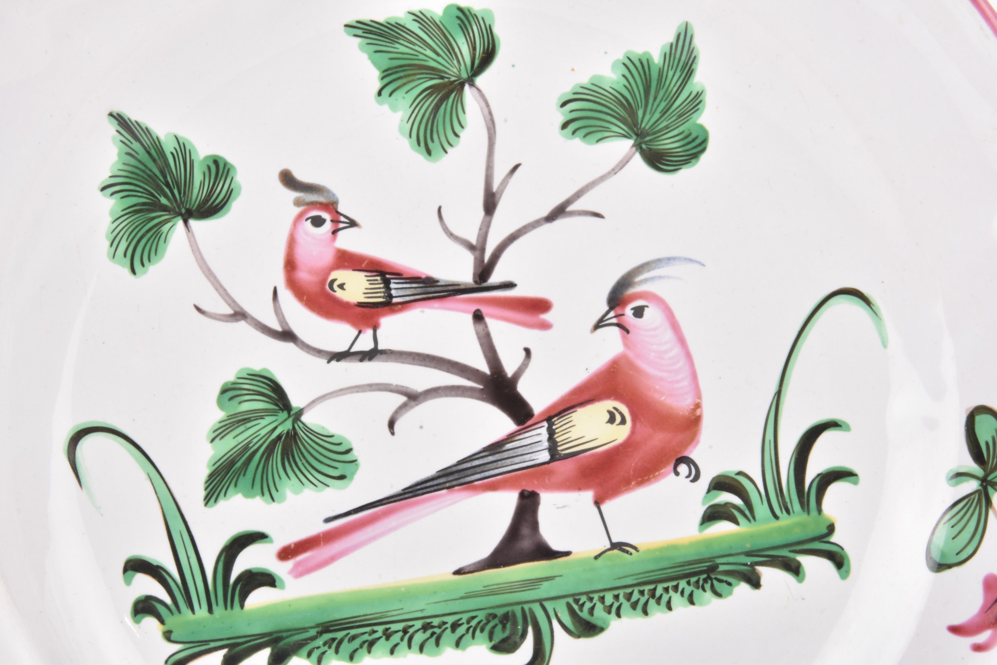 LES ISLETTES, an earthenware dish decorated with fire birds - EST, an earthenware plate decorated with two birds in flight