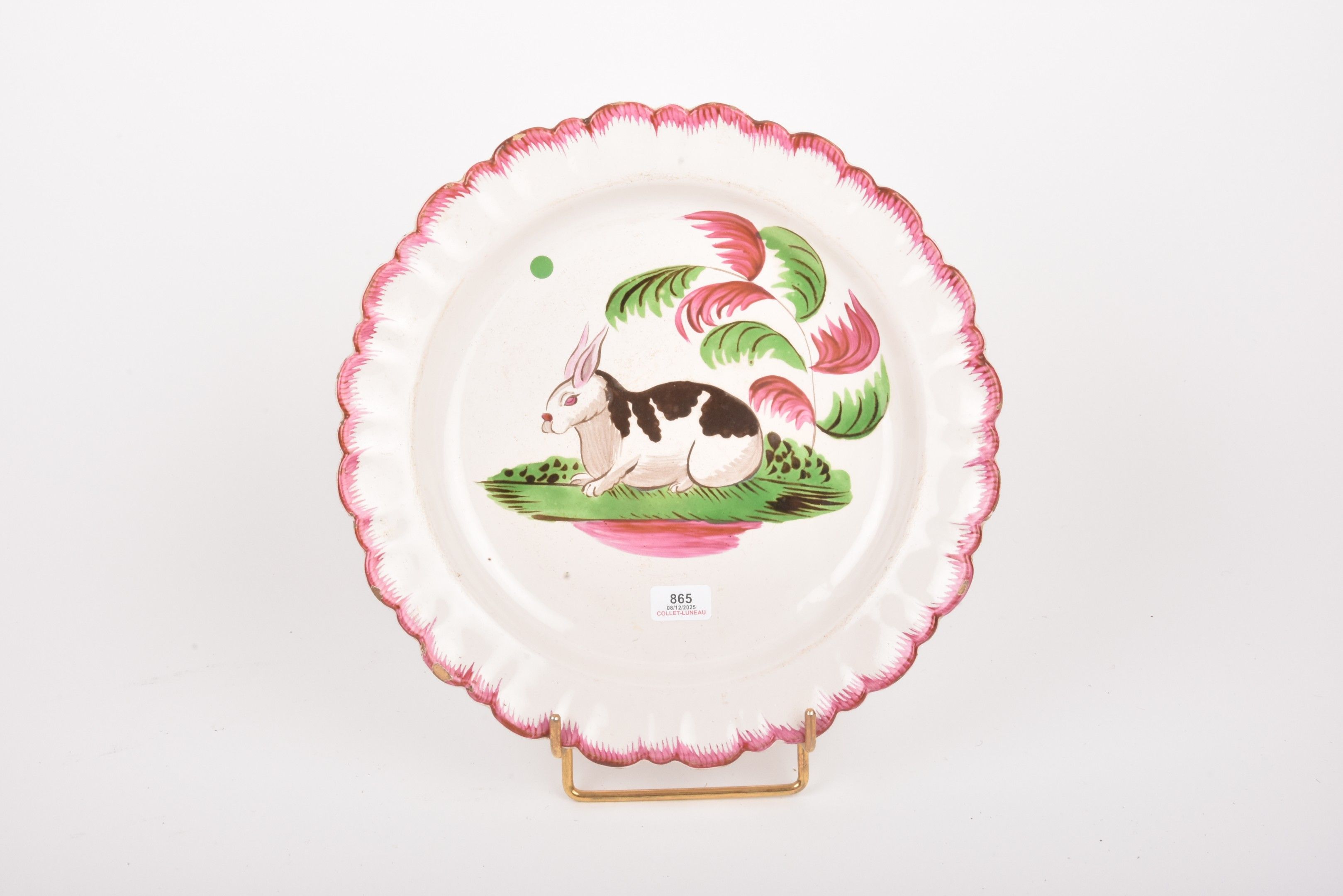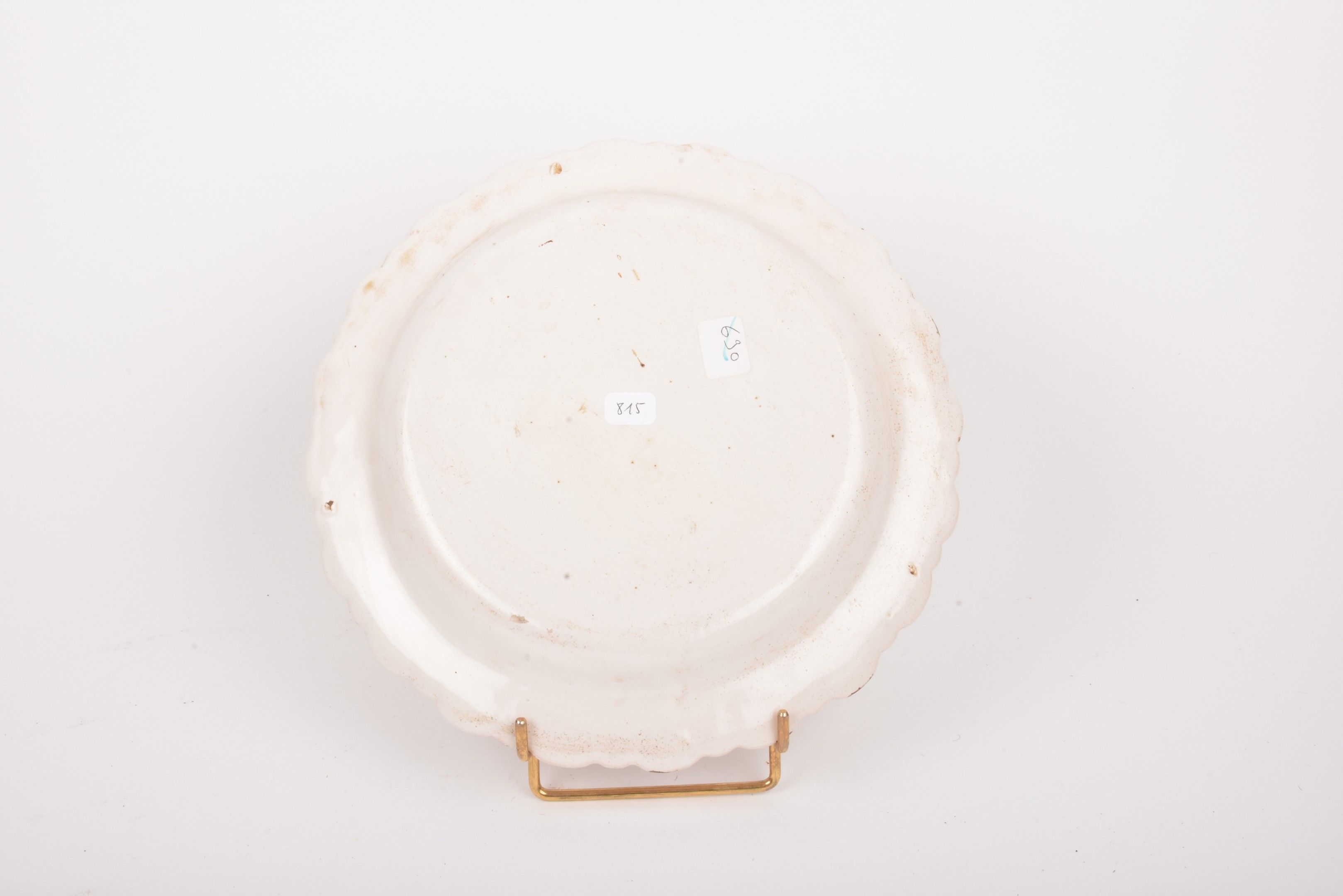 LES ISLETTES. Earthenware soup plate decorated with a rabbit, the polylobed wing with ribbed decoration.