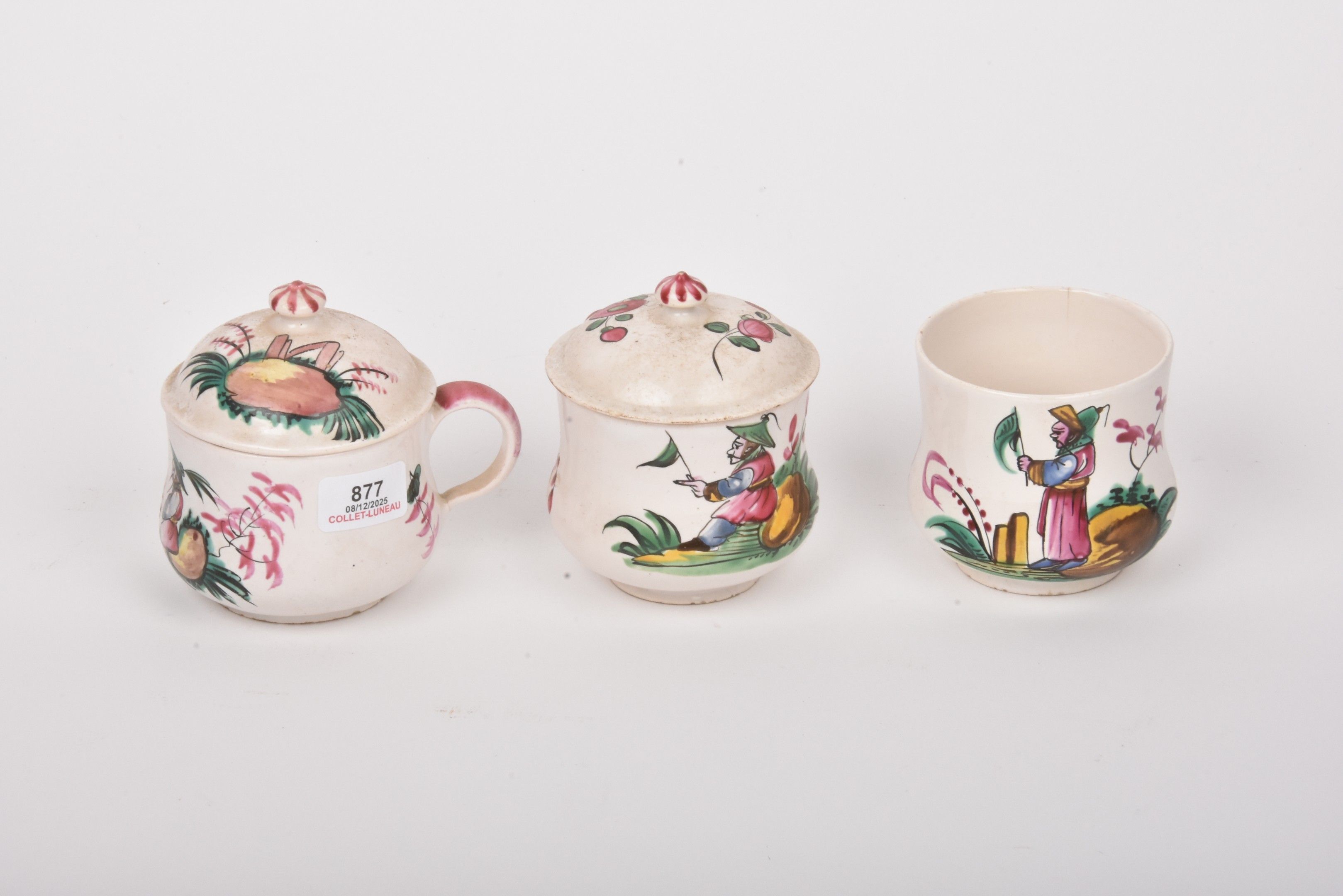 LUNEVILLE. Three earthenware cream pots with Chinese decorat…