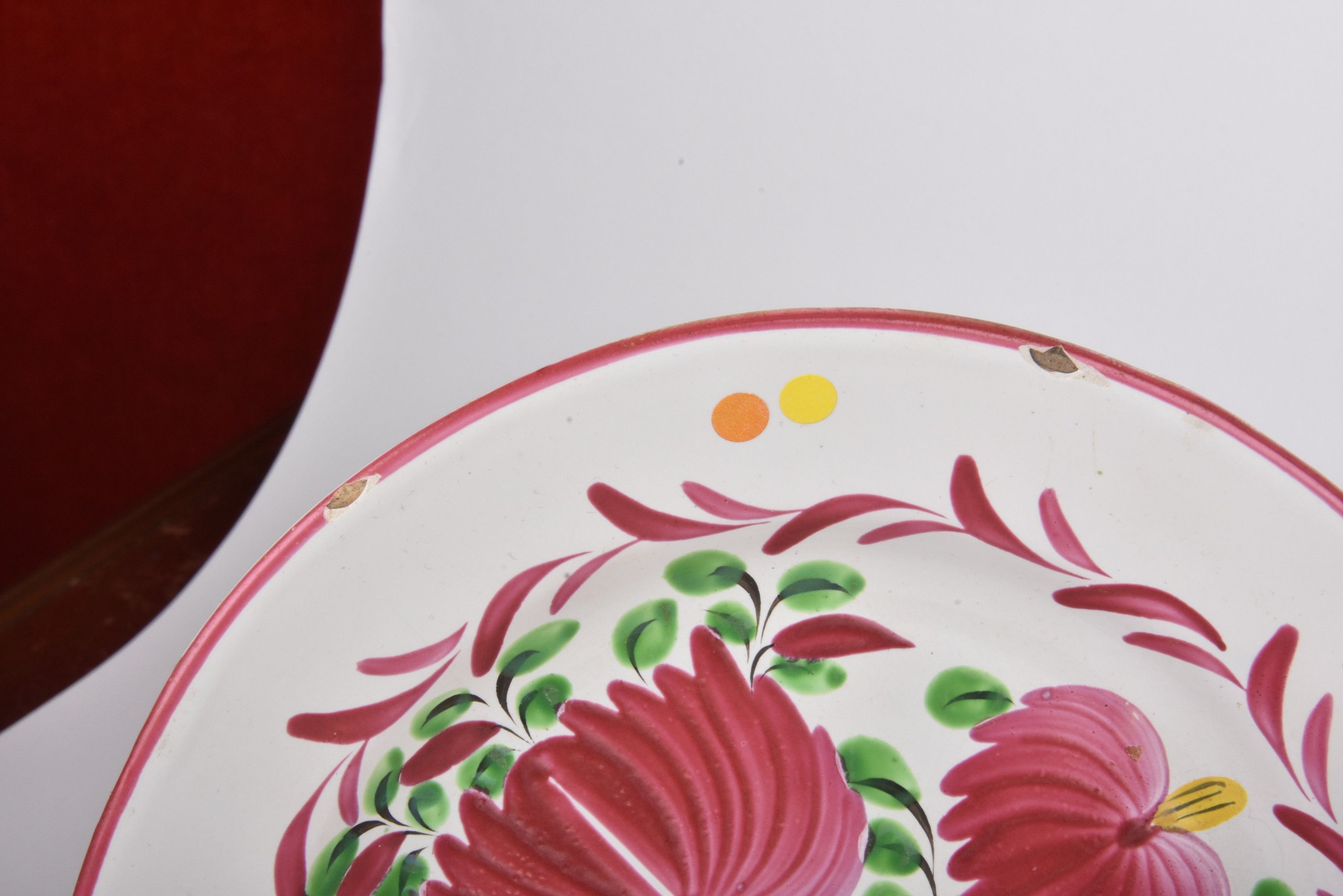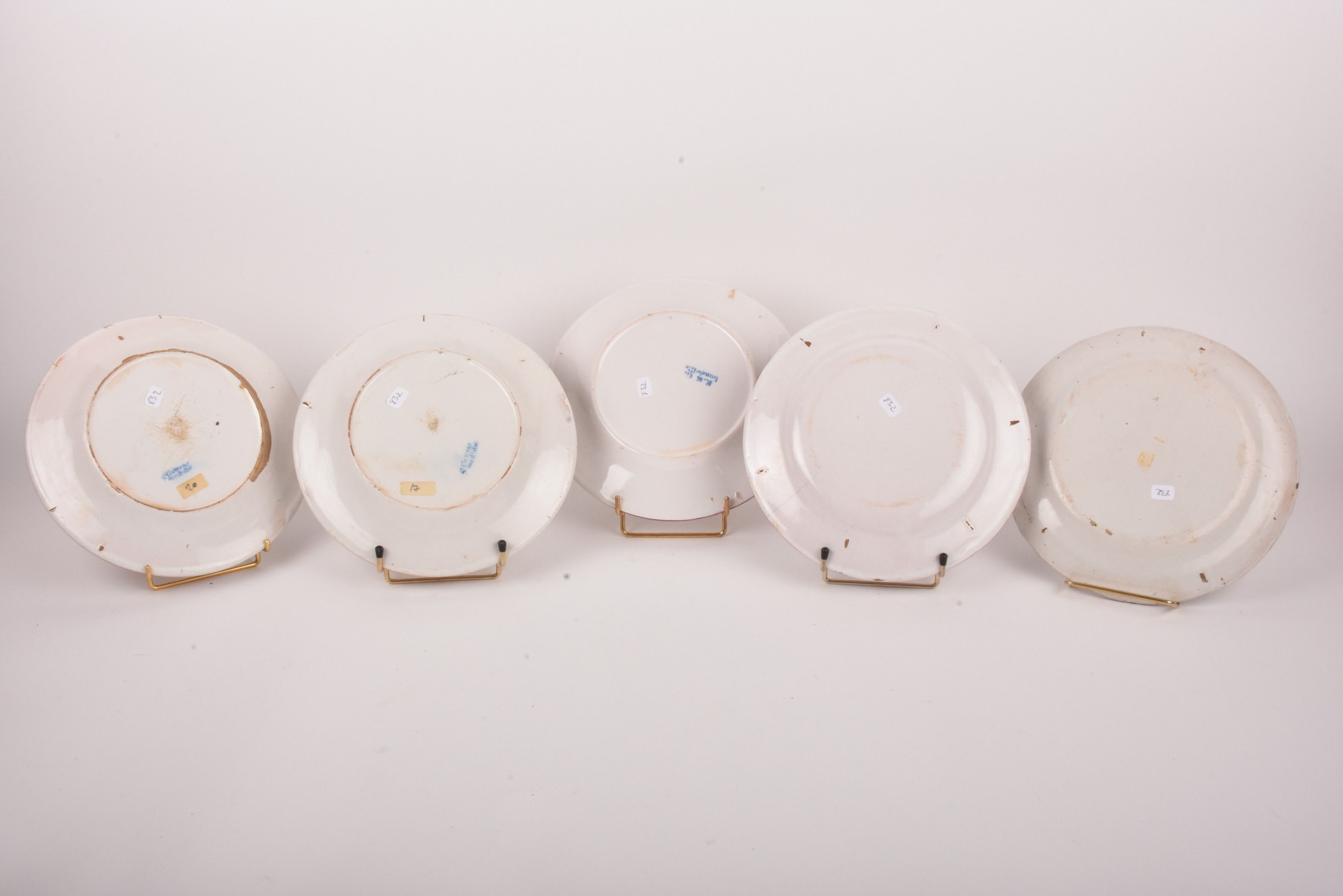 EST. Five earthenware plates decorated with flowering basket…