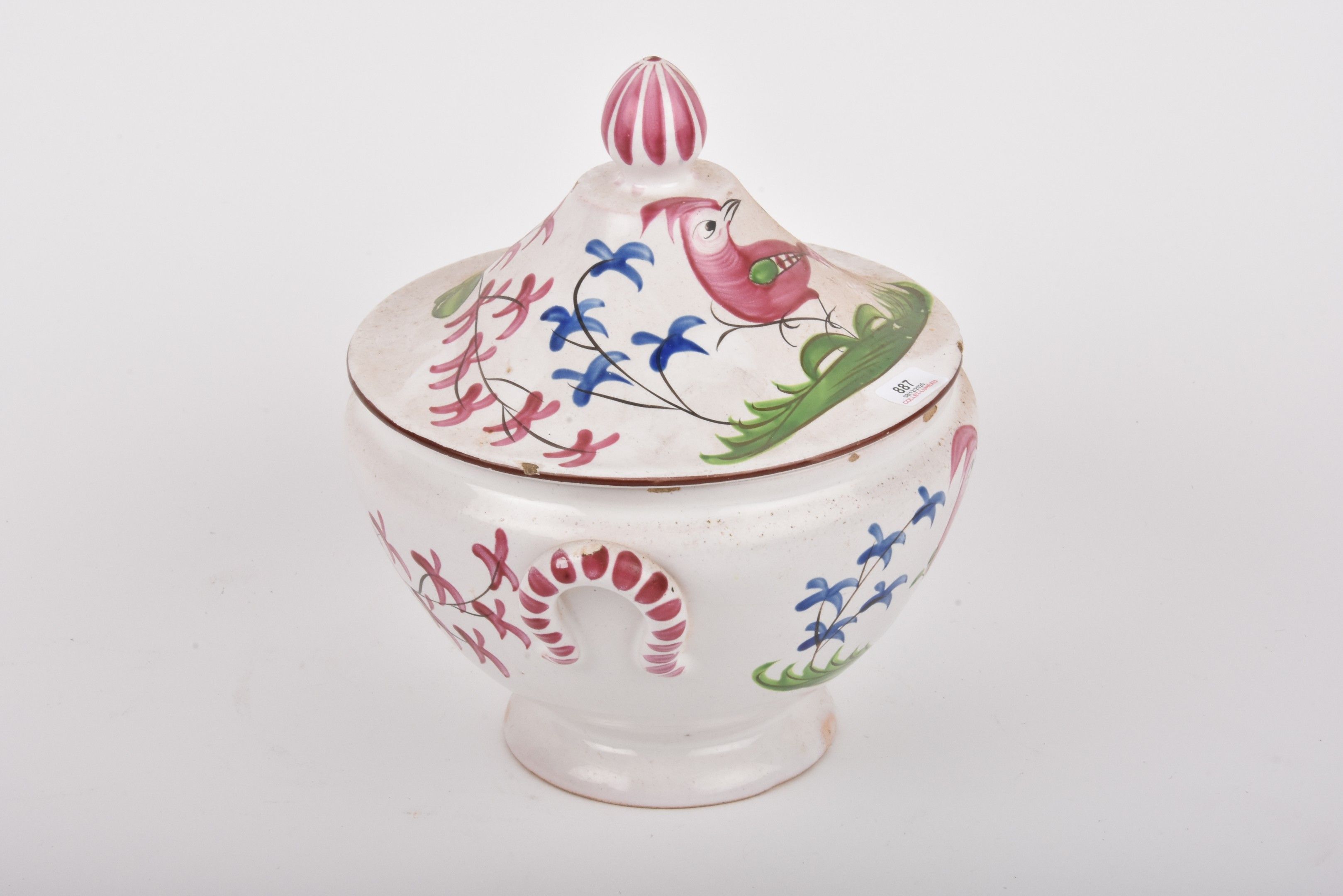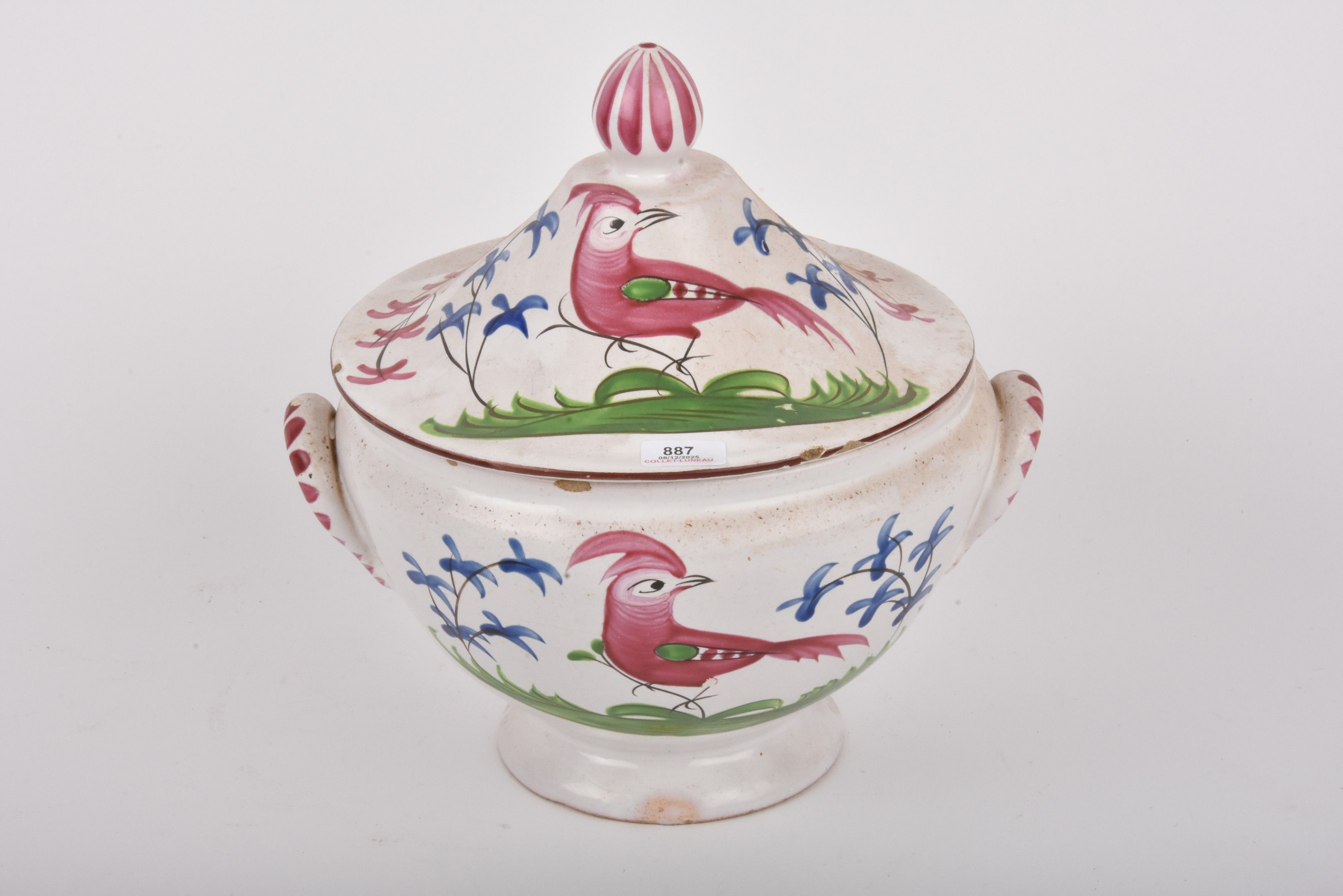 LES ISLETTES. Small earthenware tureen decorated with birds.