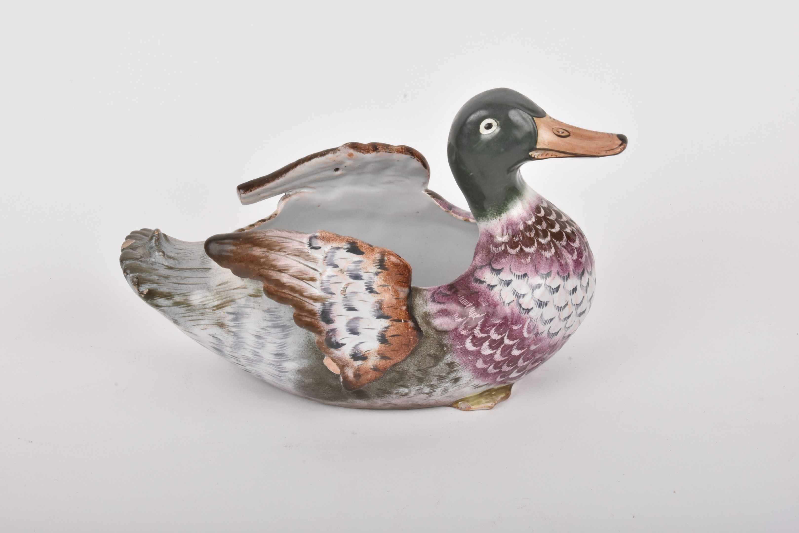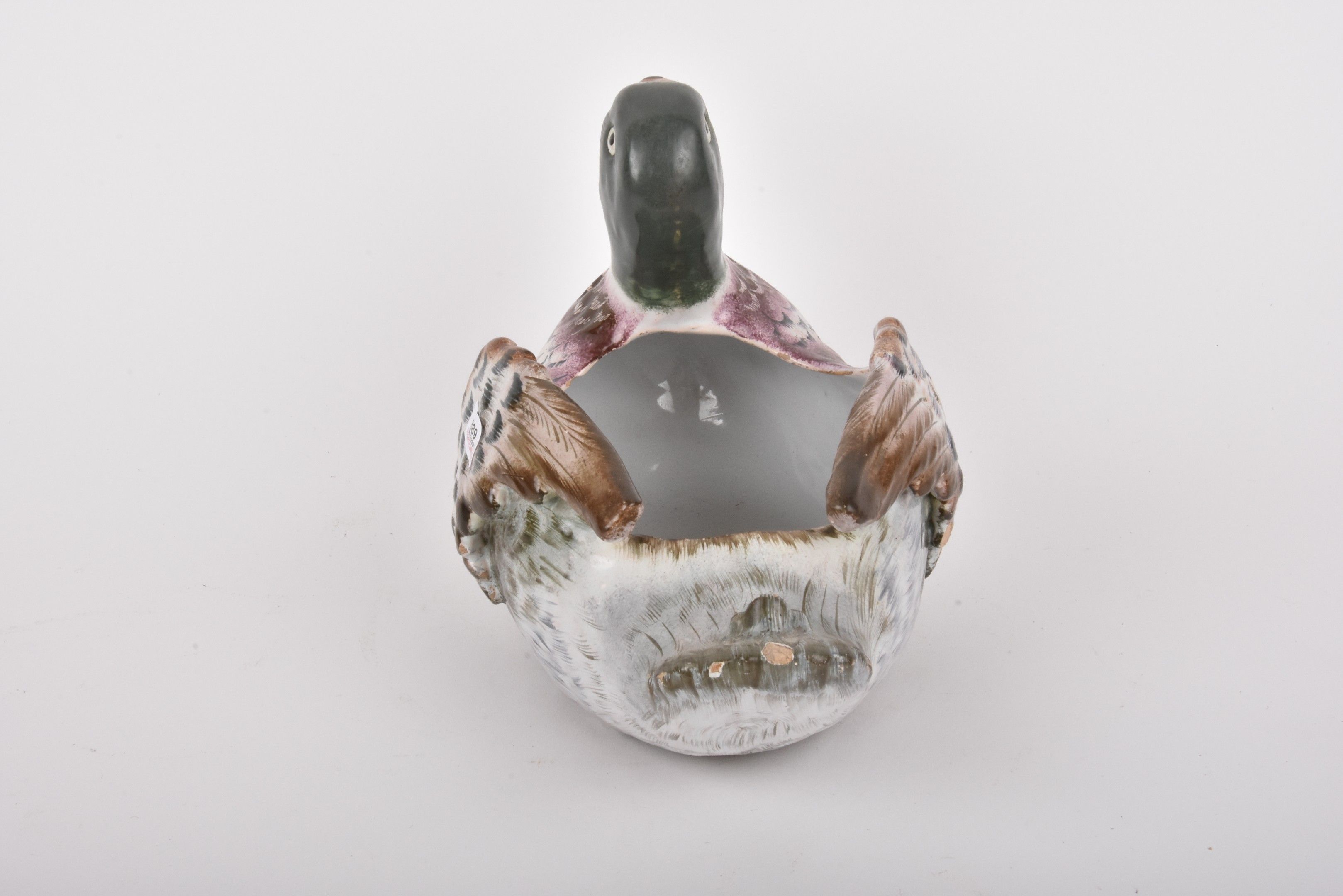 SAINT-CLEMENT. Earthenware planter with trompe-l'oeil duck design.