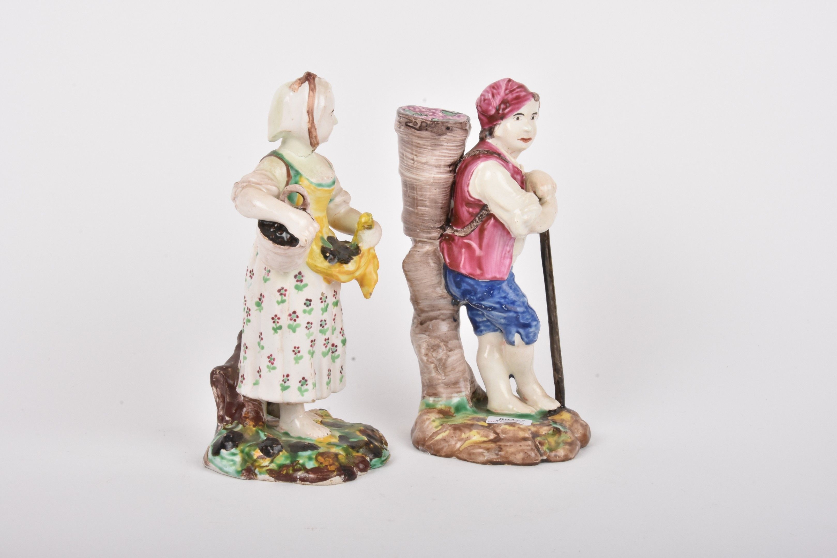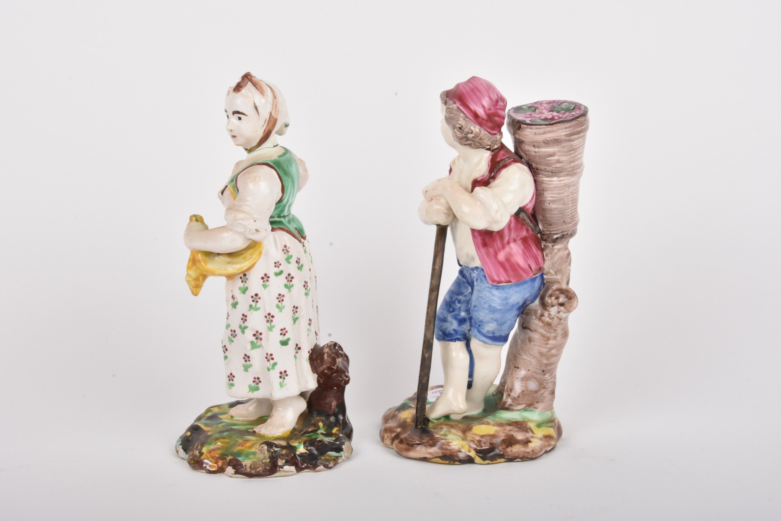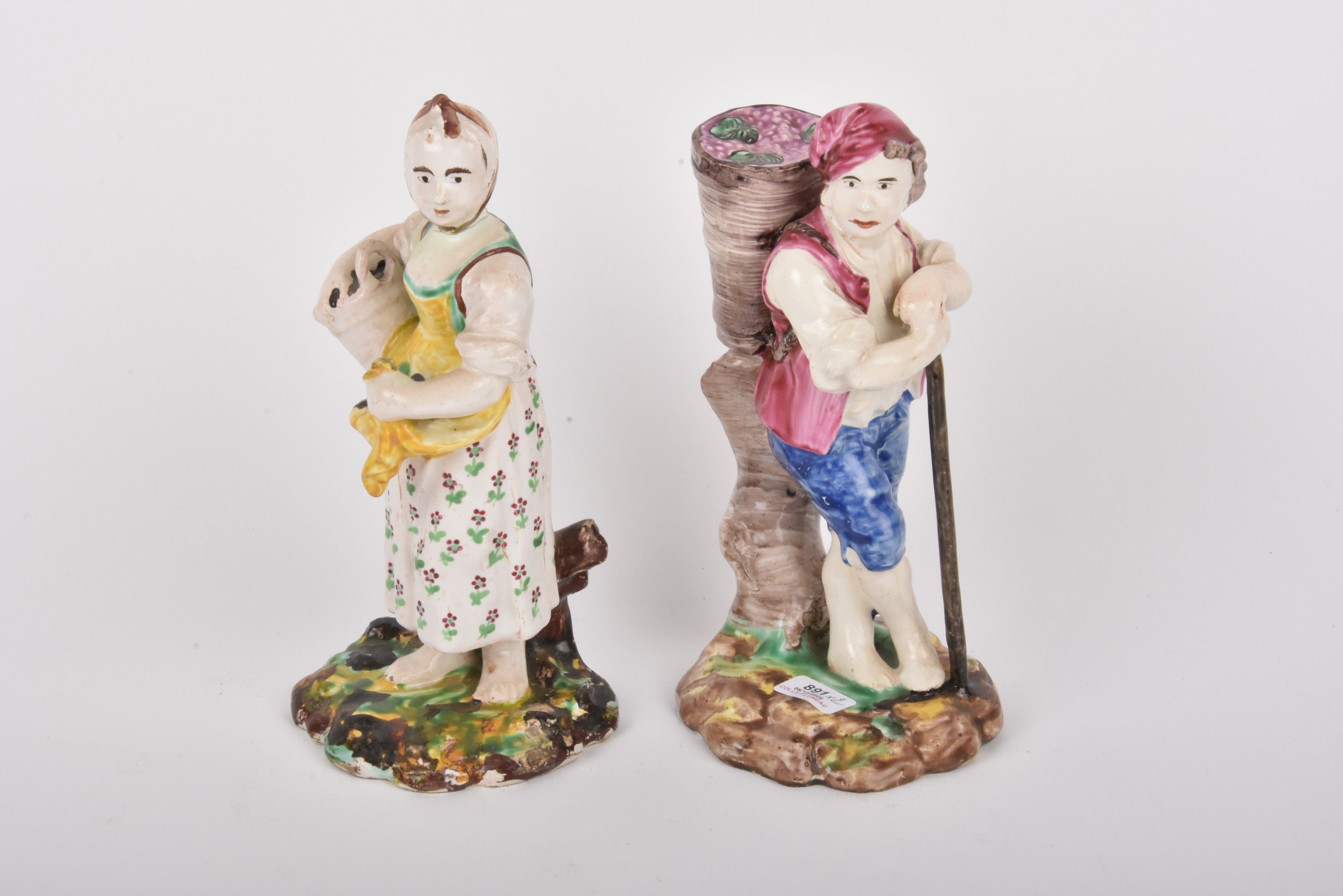 EST. Pair of fine earthenware subjects decorated with a winegrower and a peasant woman.