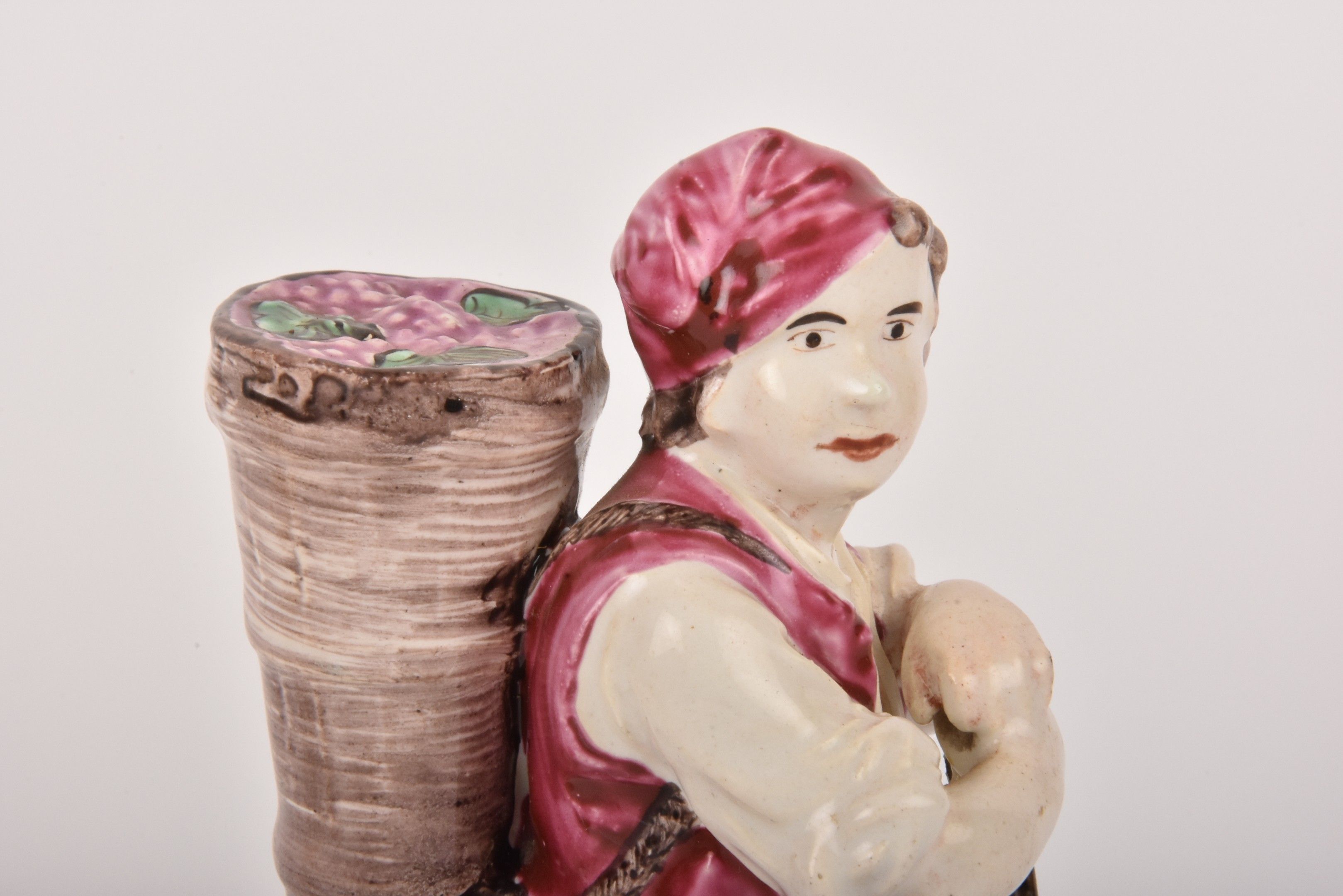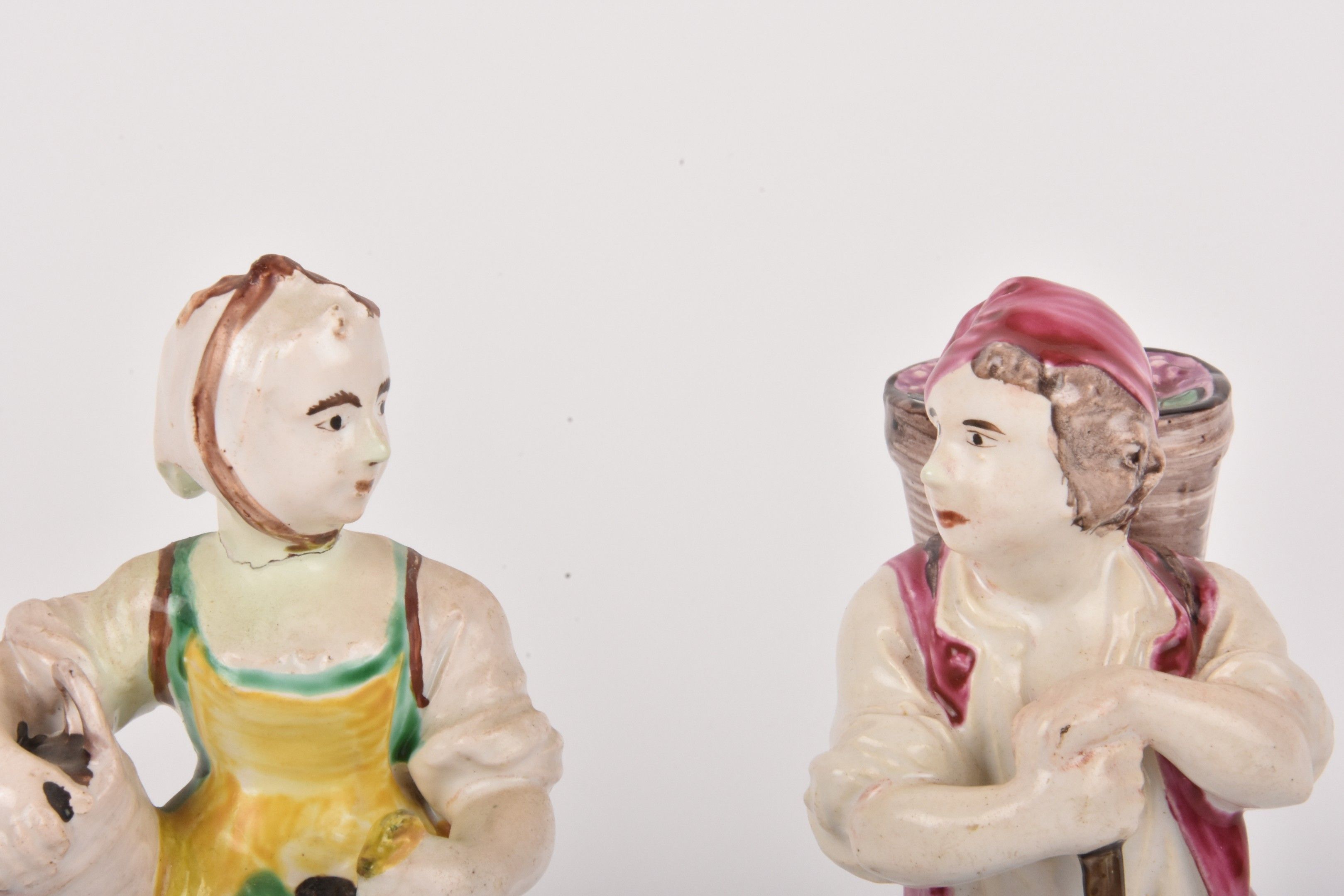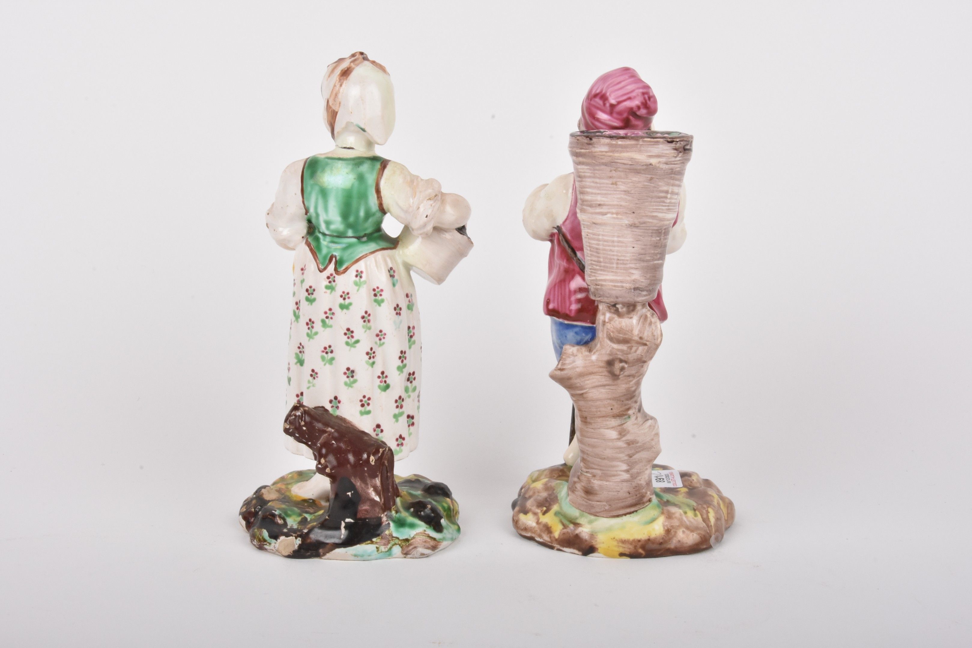 EST. Pair of fine earthenware subjects decorated with a winegrower and a peasant woman.