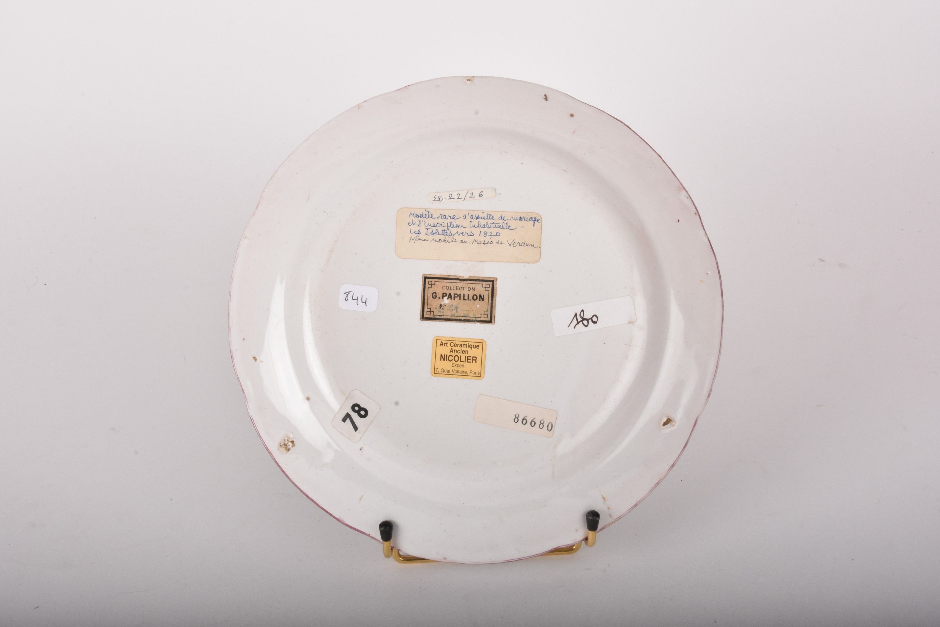Premium LES ISLETTES, DUPRE period. Rare earthenware wedding plate "…