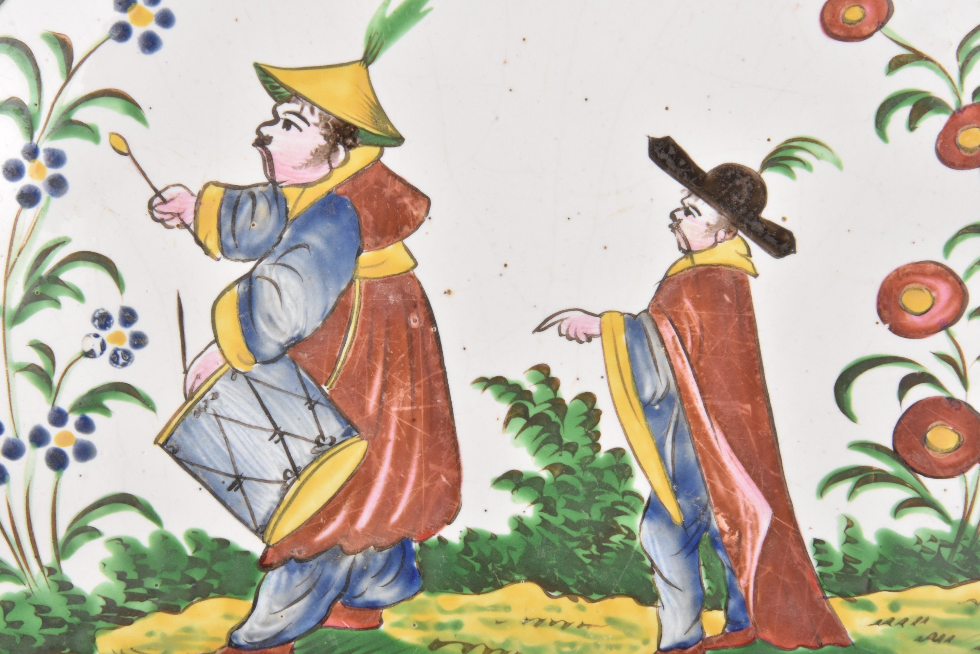 THE ISLETTES. Earthenware dish decorated with a lively Chinese scene.