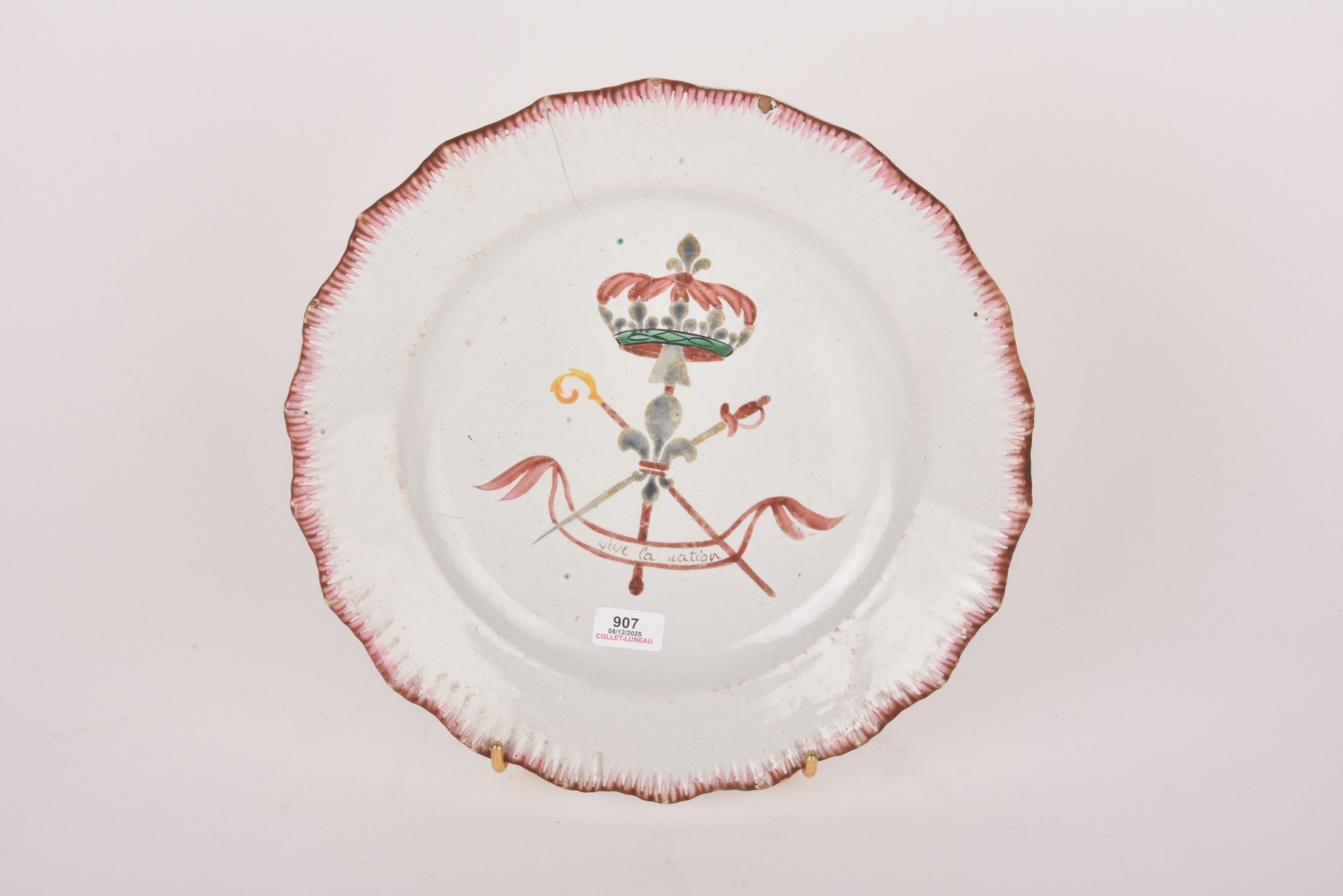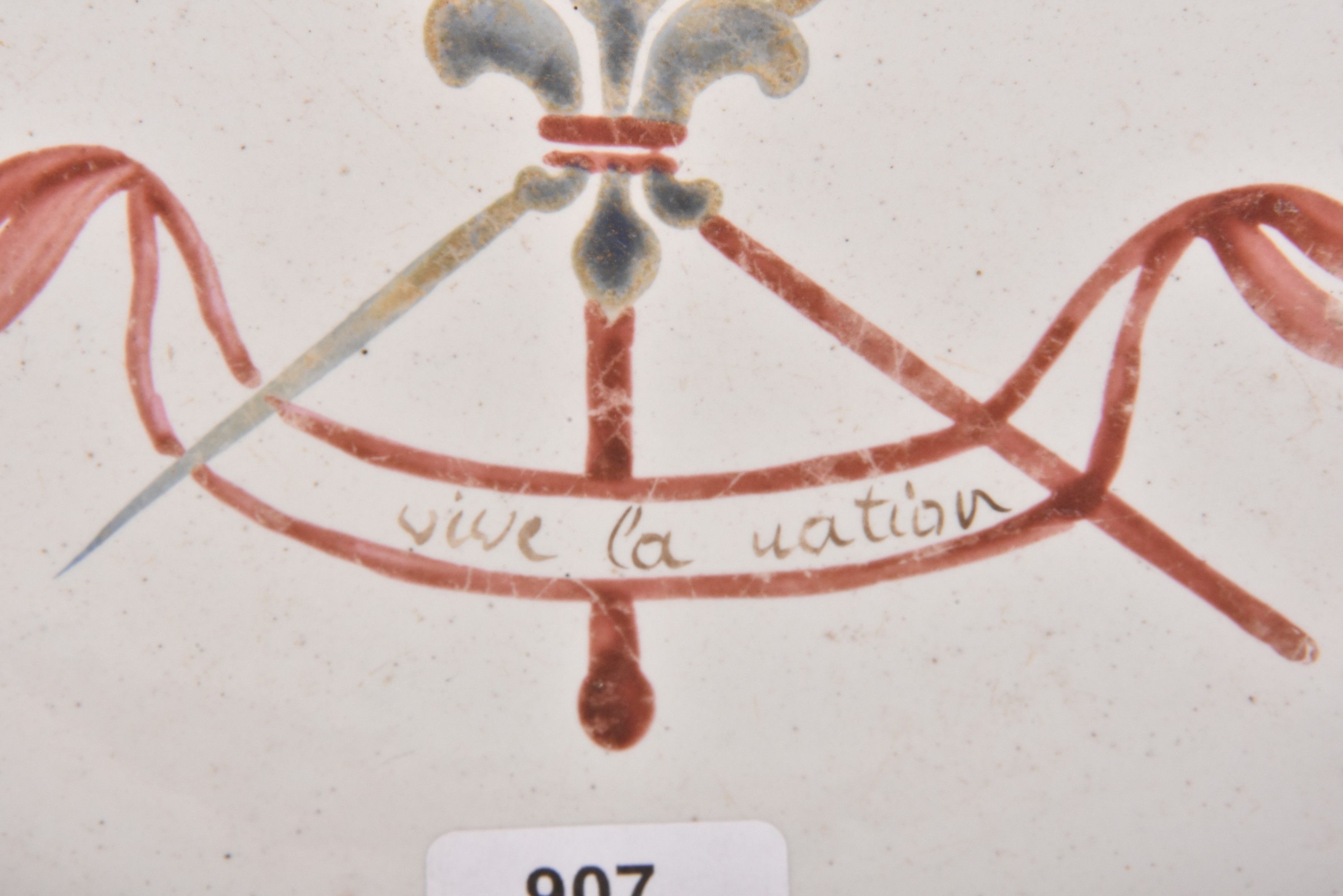 LES ISLETTES. Earthenware plate with revolutionary decoration of the three orders surmounted by the motto Vive la Nation.
