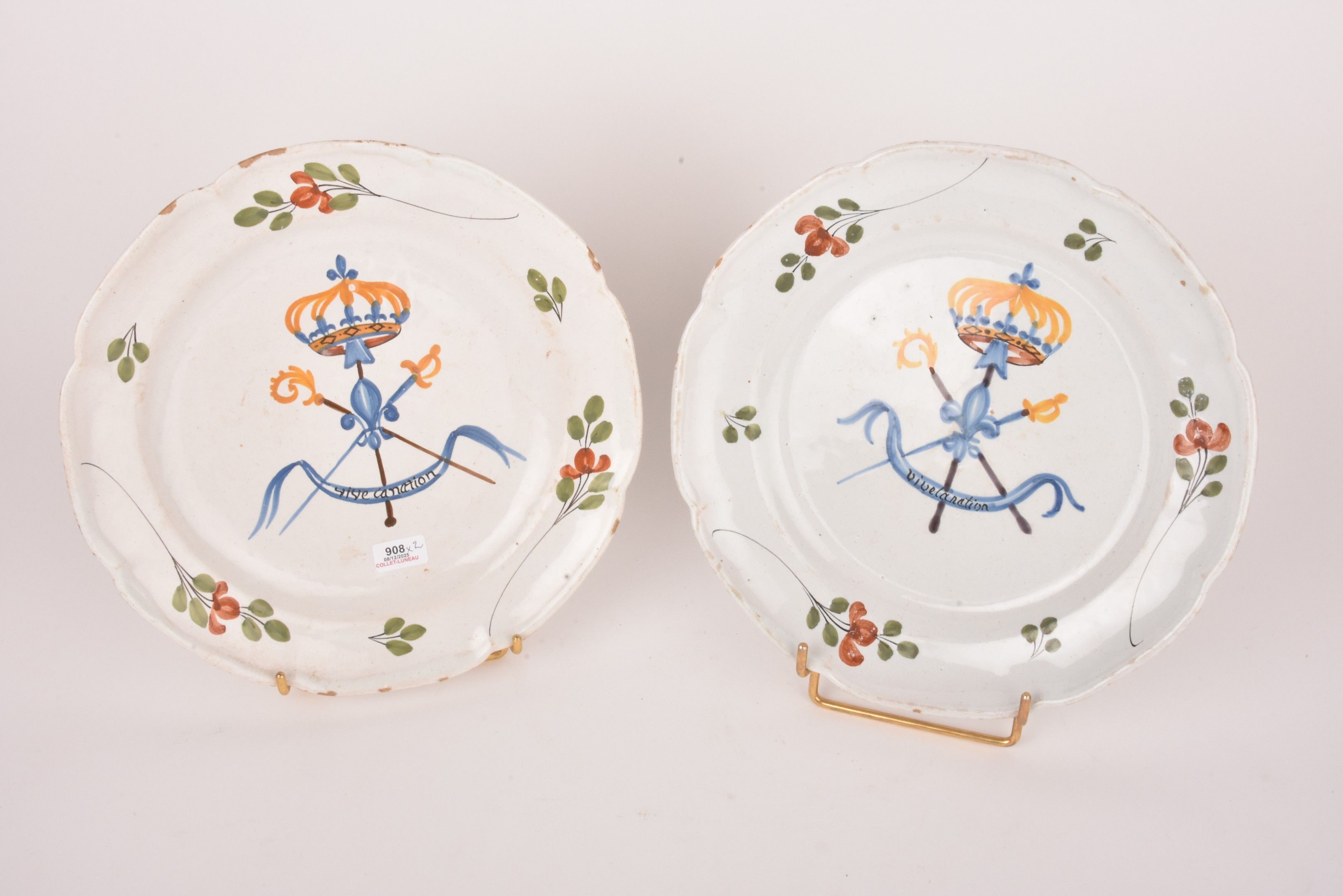 WALY. Two earthenware plates with revolutionary decoration with the three orders bearing the motto Vive la Nation.