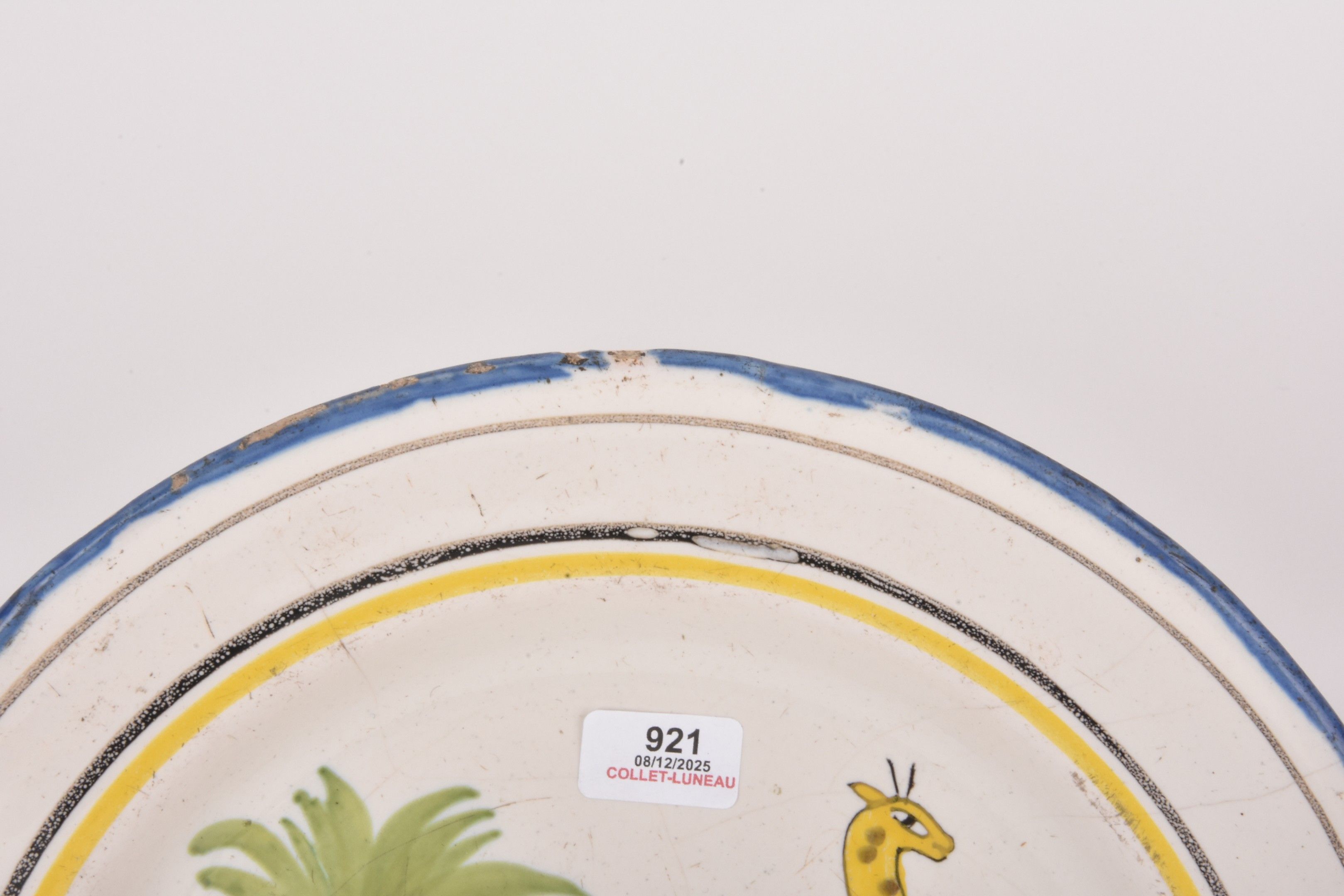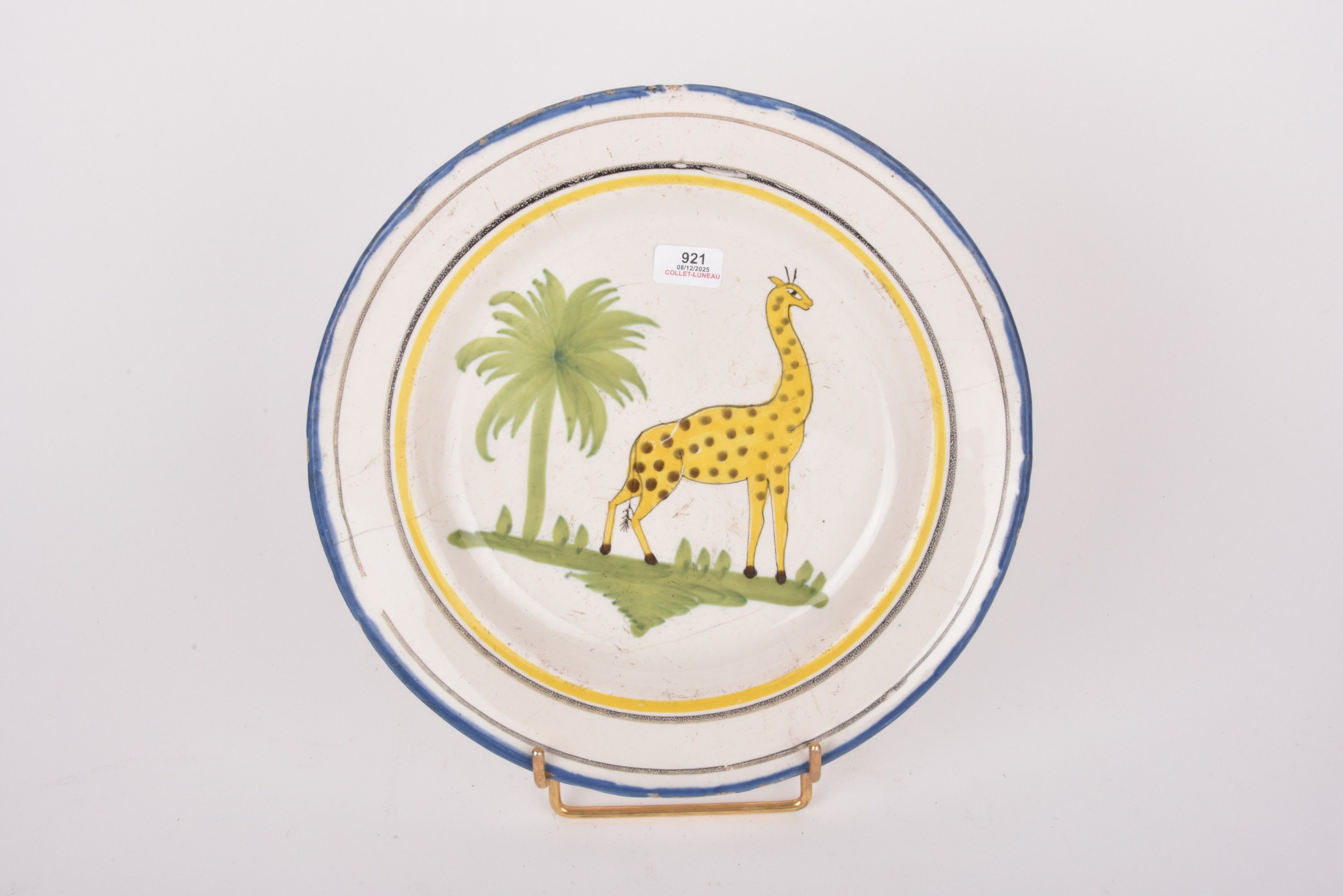 WALY. Earthenware plate decorated with a giraffe.
