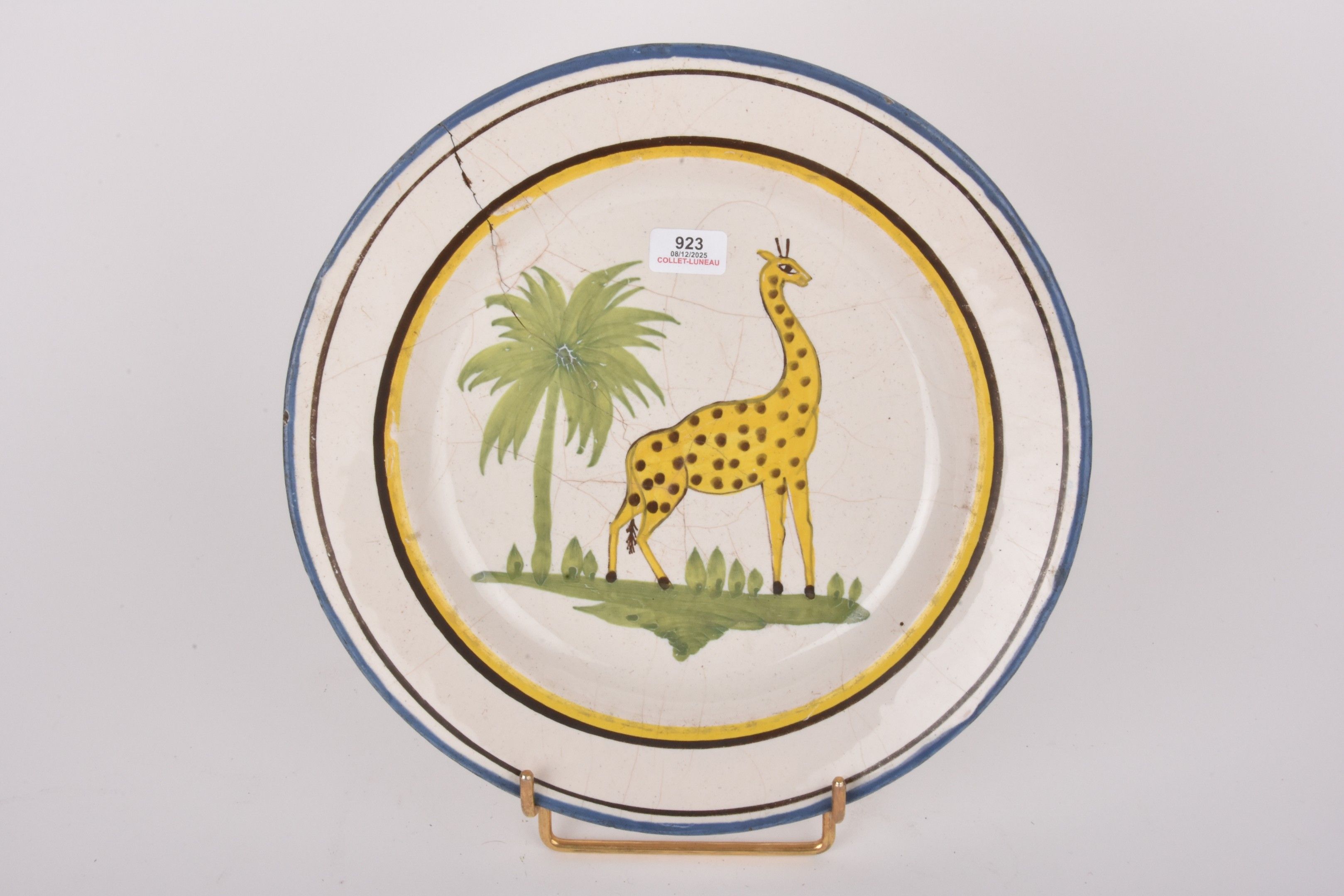 WALY. Earthenware plate decorated with a giraffe.