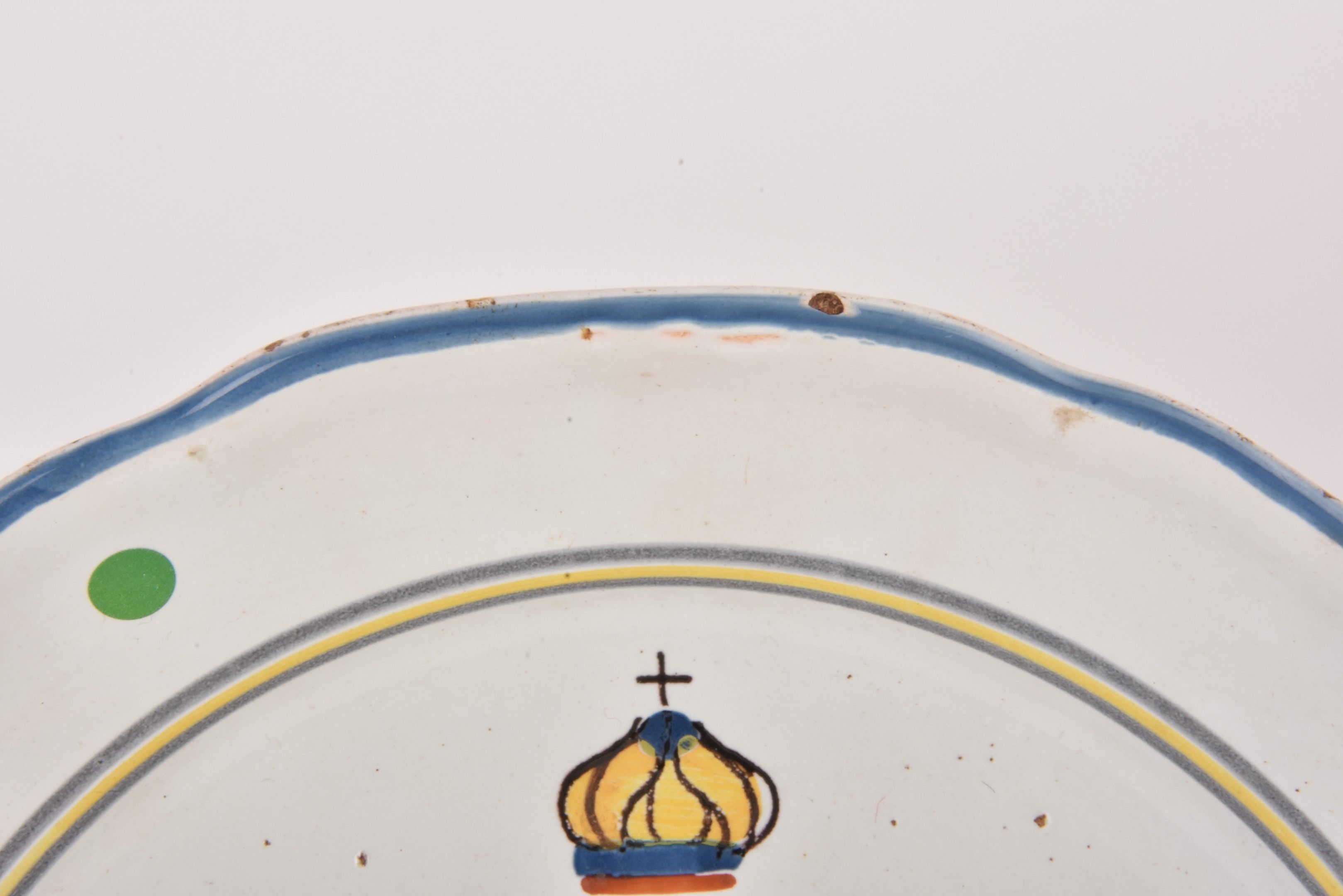 WALY. Earthenware plate decorated with a Napoleonic eagle on a thundering mound.