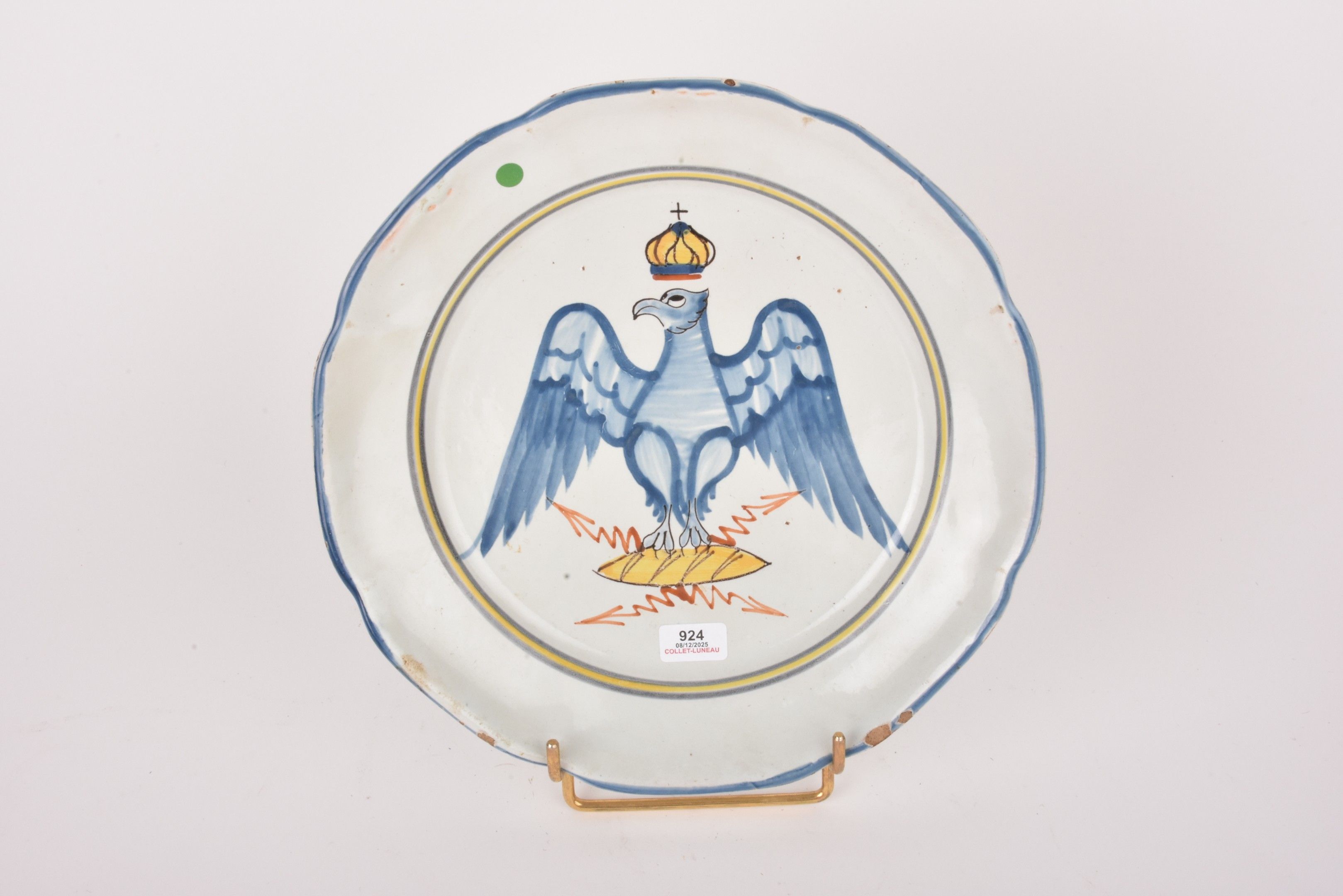 WALY. Earthenware plate decorated with a Napoleonic eagle on…