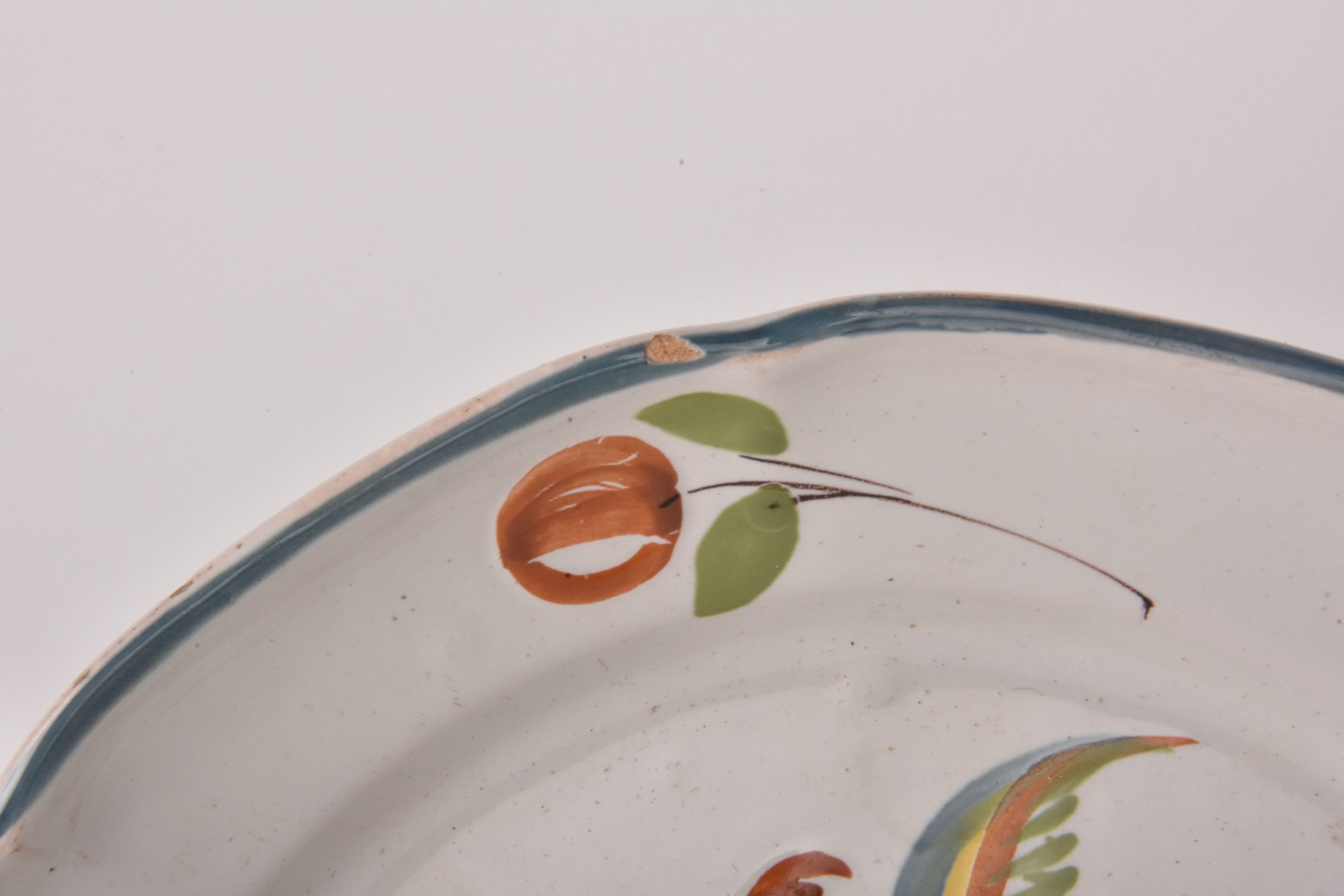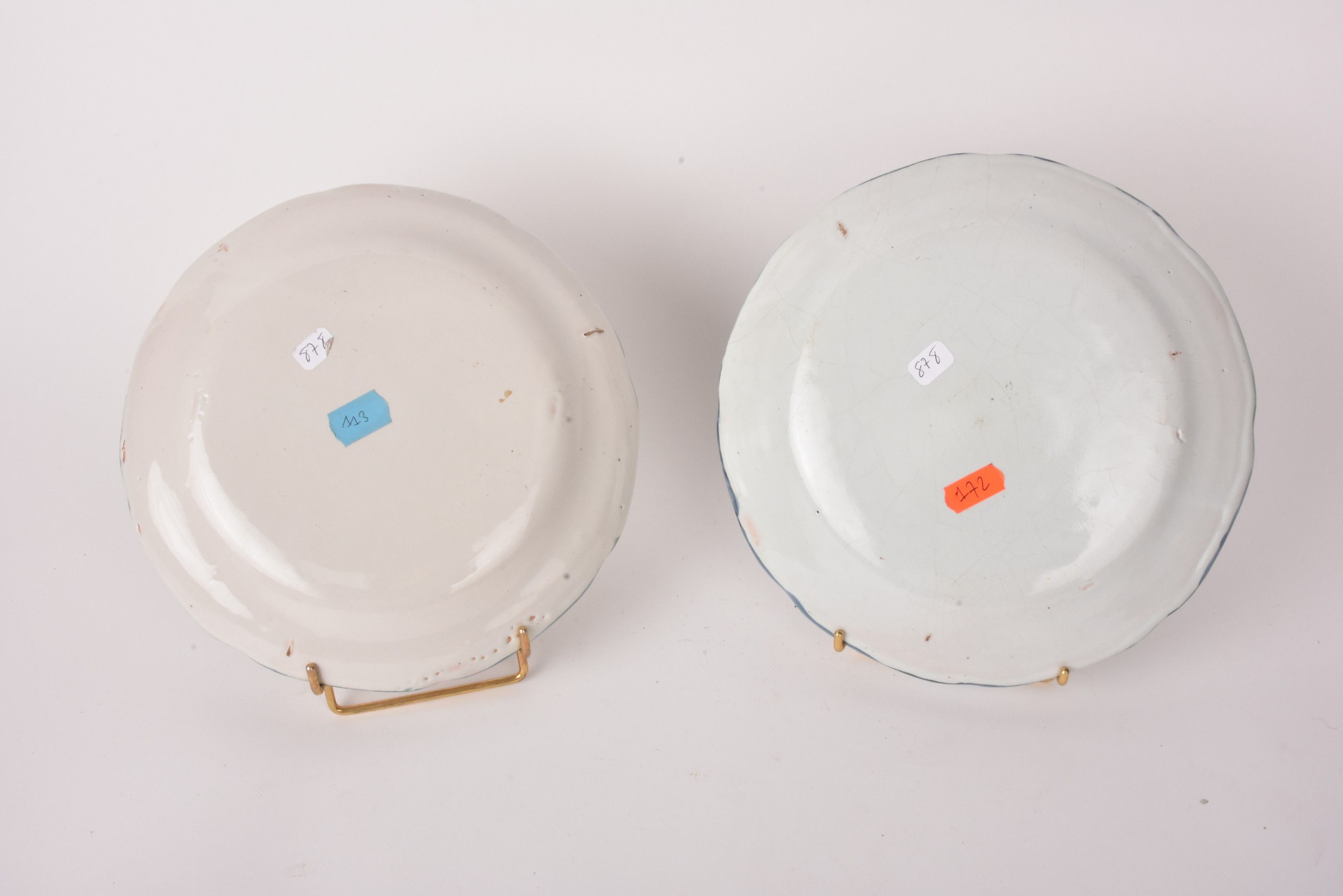 EST. Two earthenware plates decorated with a bird.