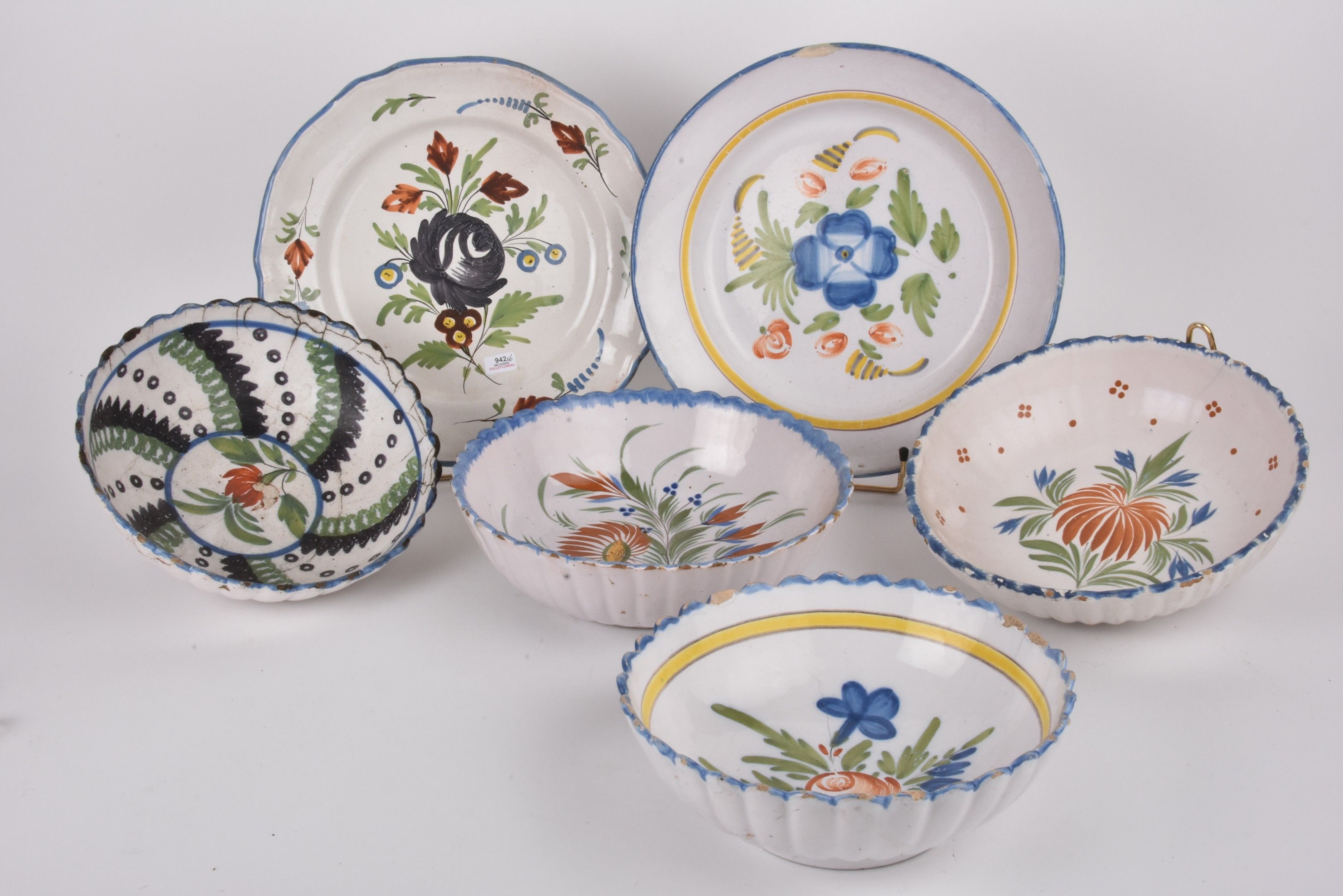 ARGONNE and EST. Two dishes and four salad bowls in earthenware decorated with flowers.