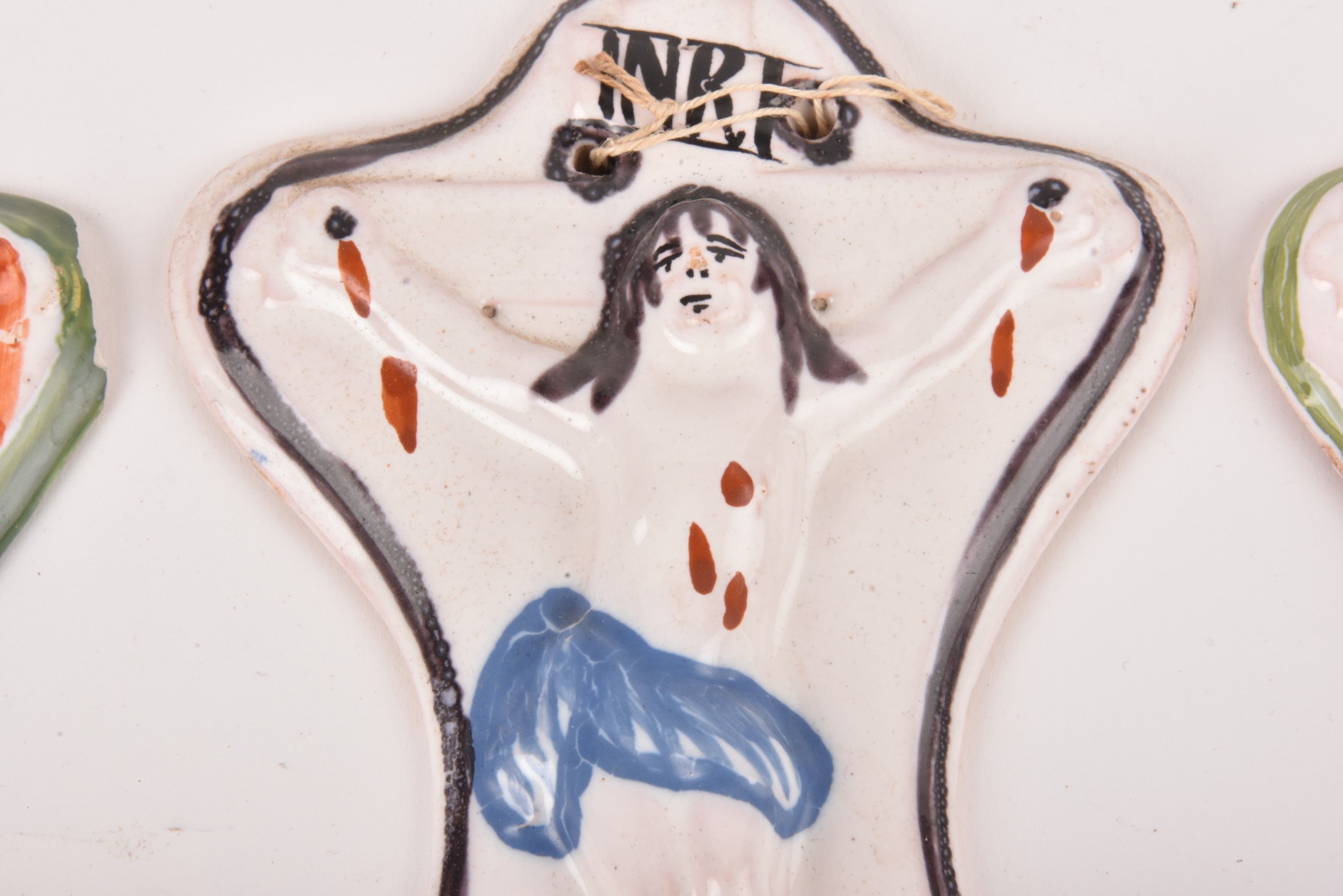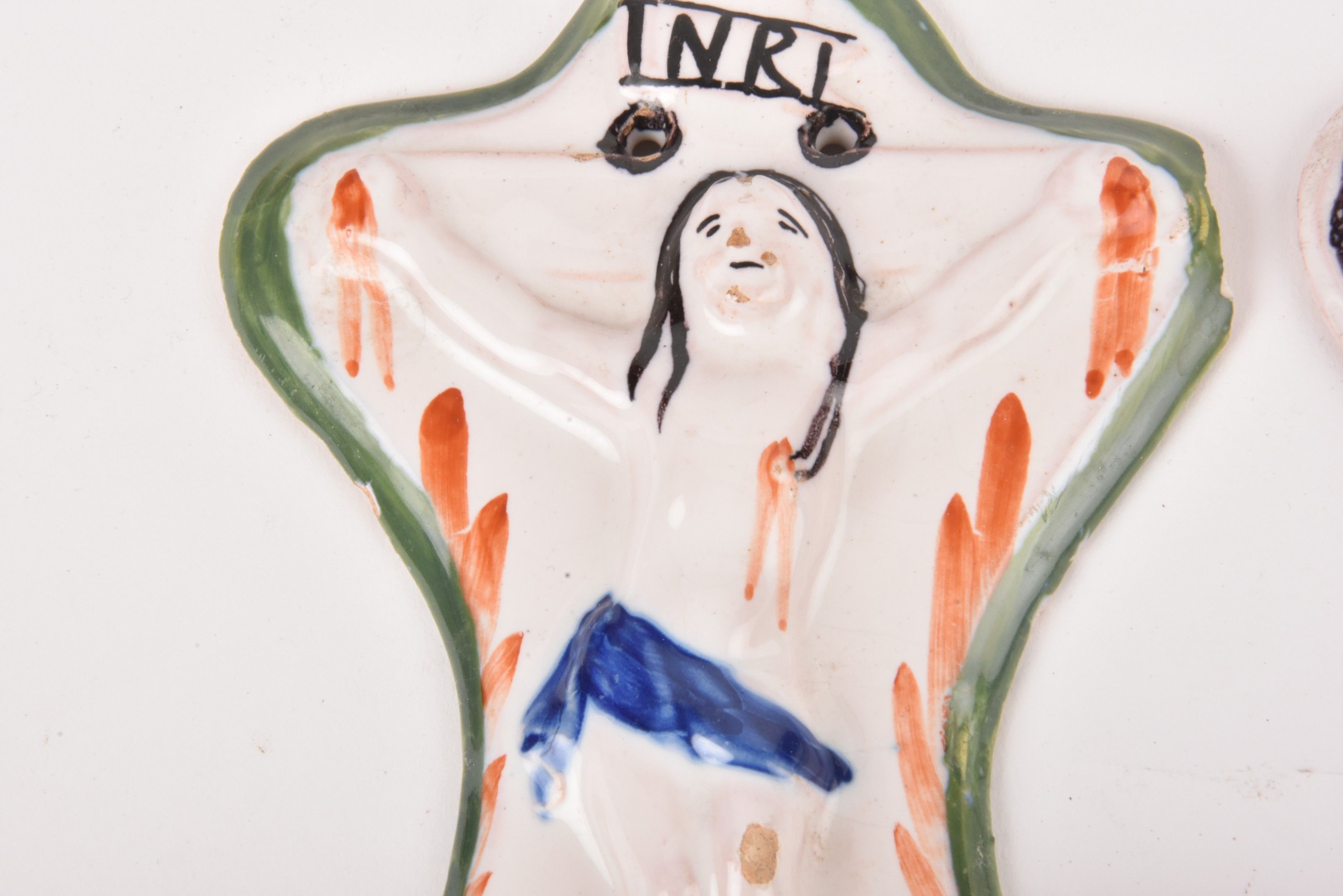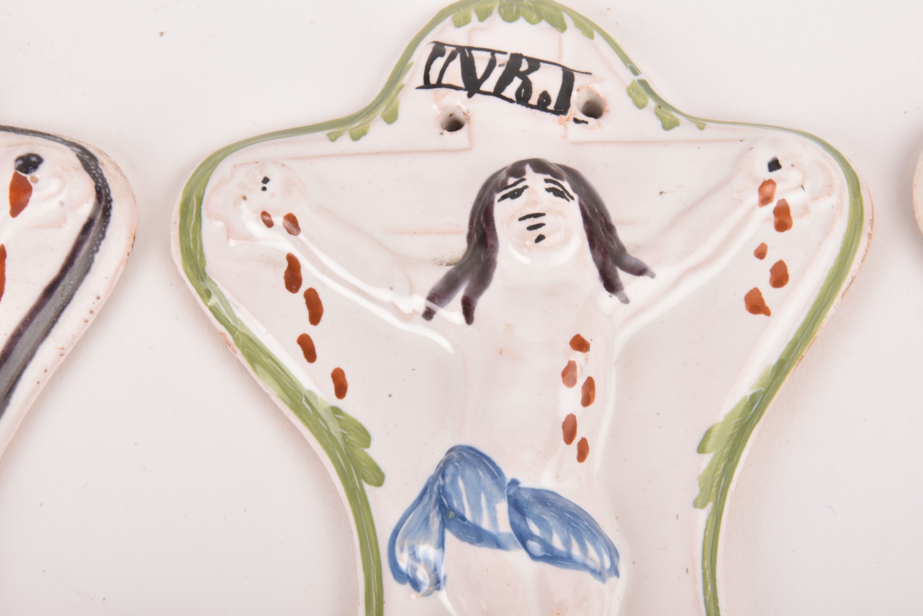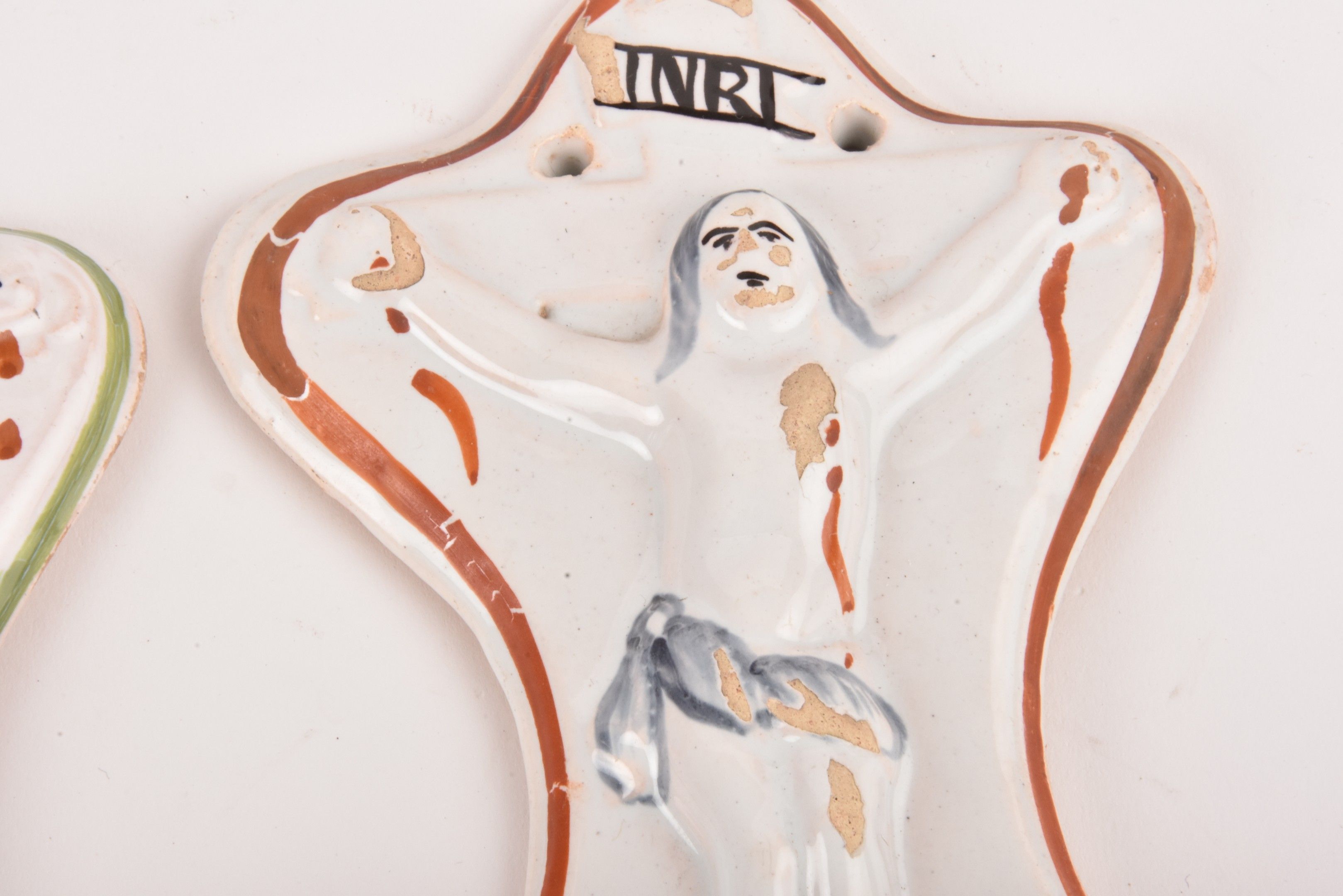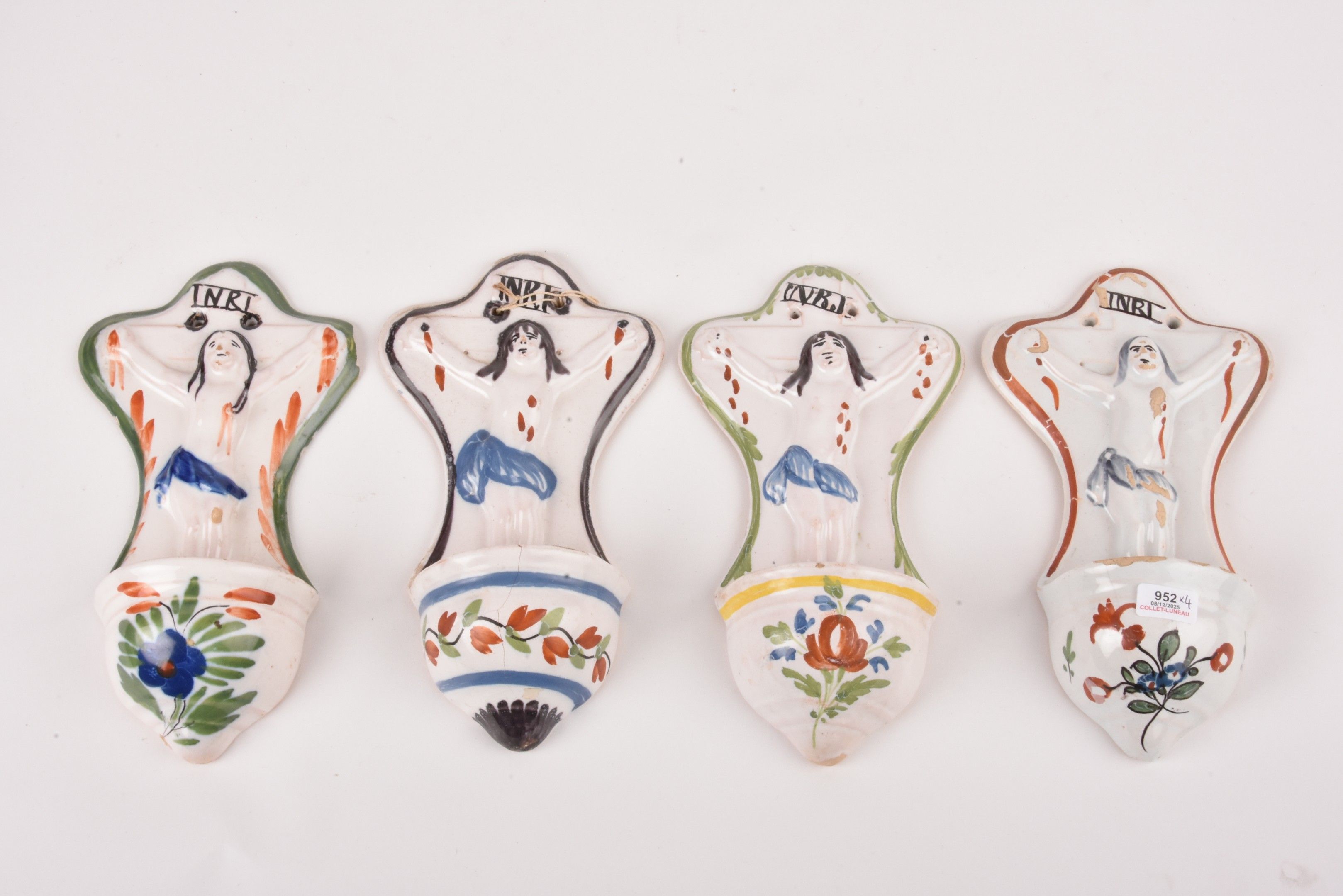 EST. 4 earthenware fonts. 19th century. h. 20 and 25 cm Glaze chips and cracks.