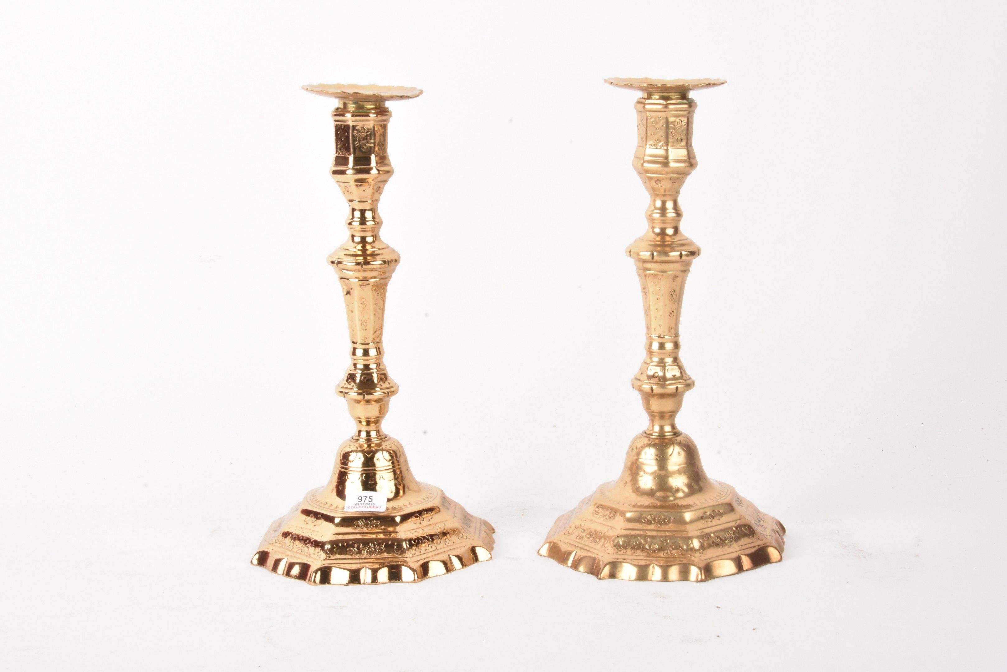 Pair of 18th century bronze candlesticks (bobèche?)