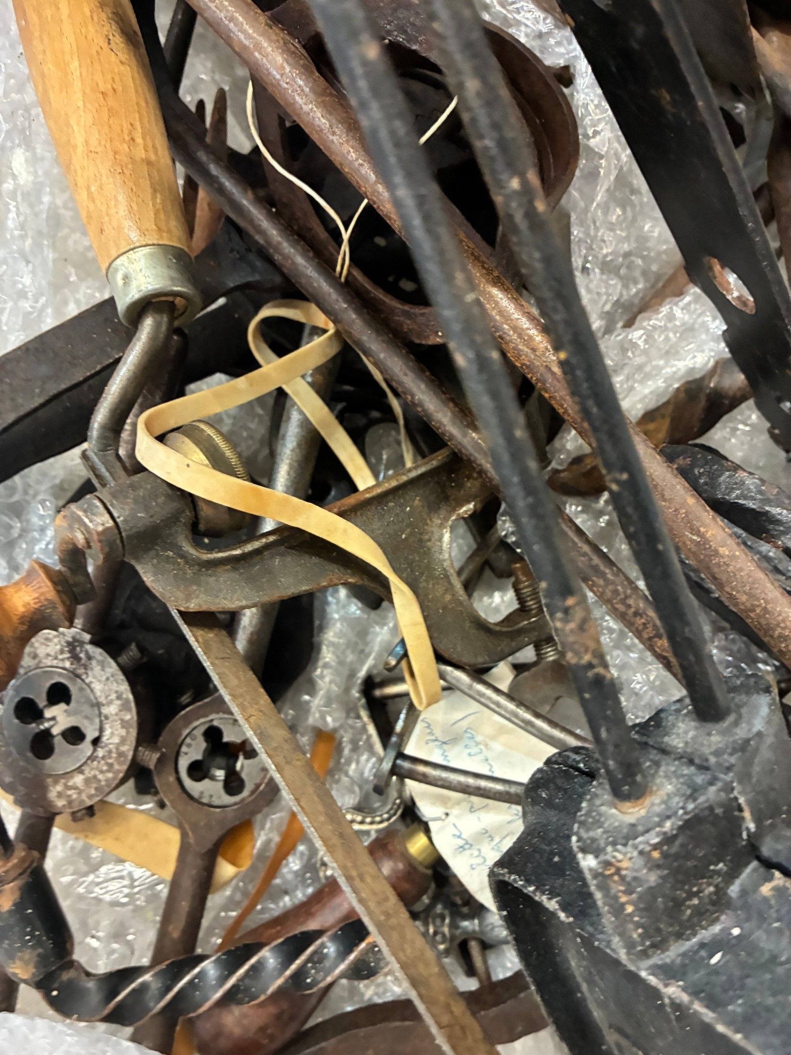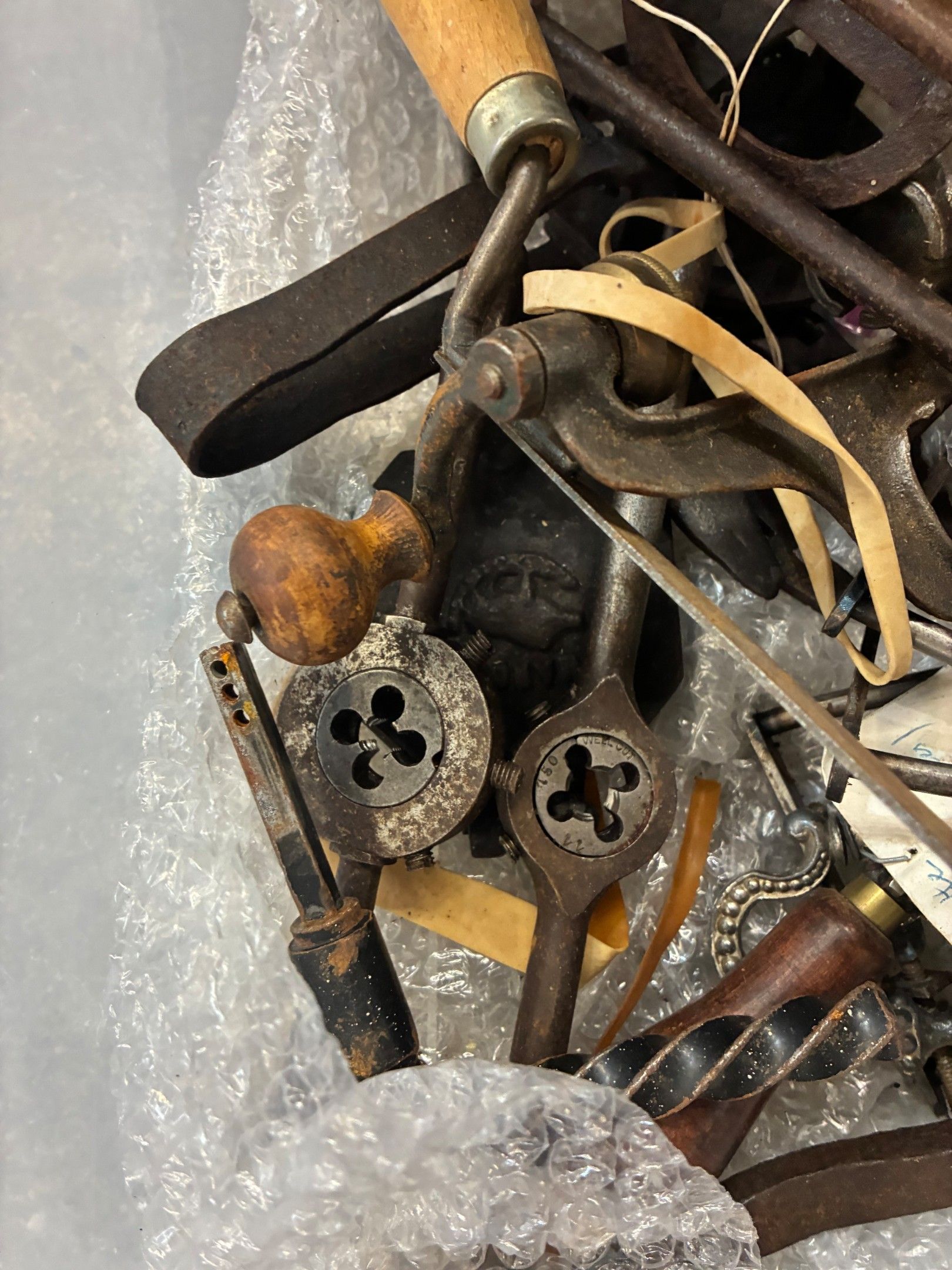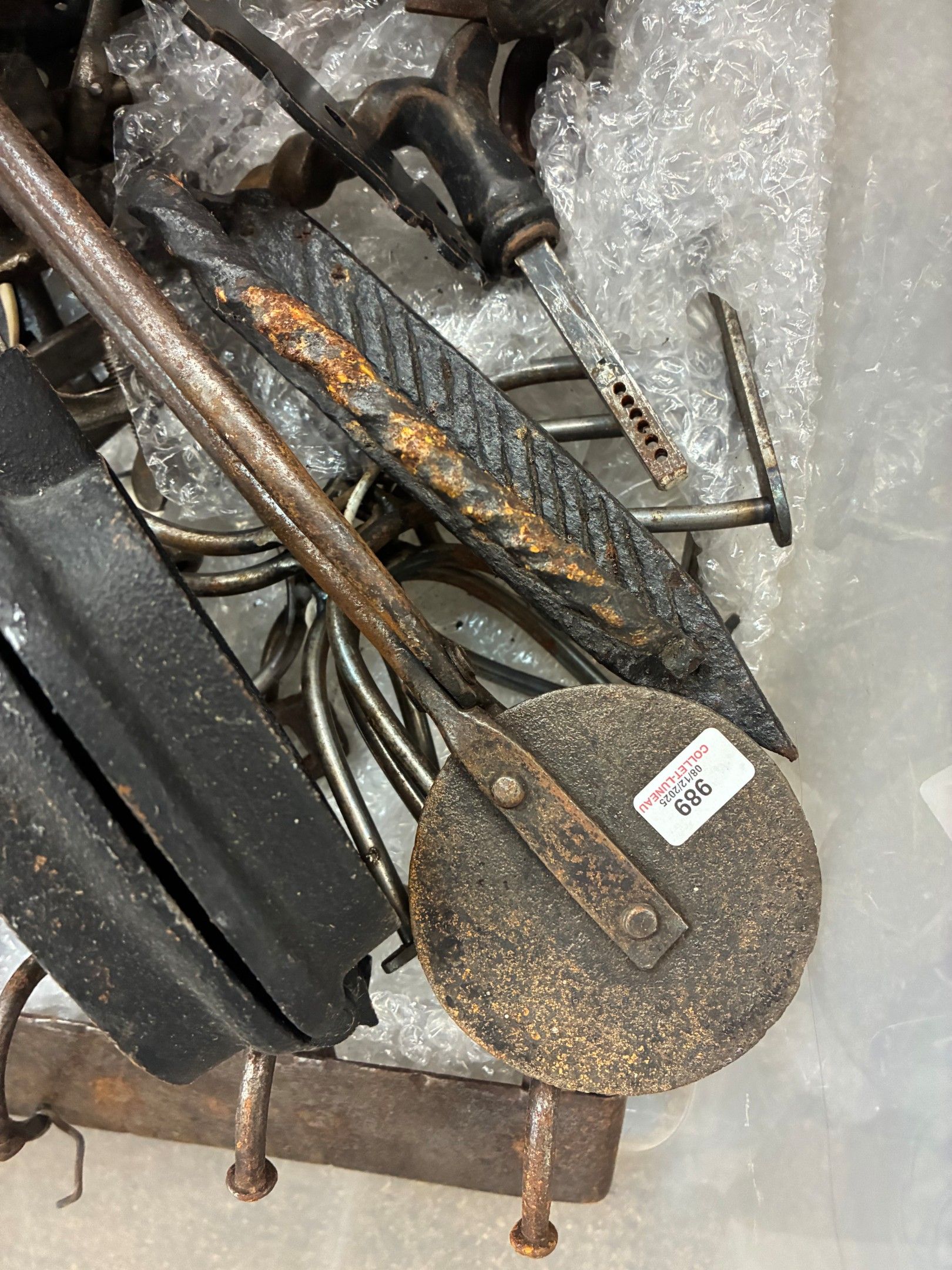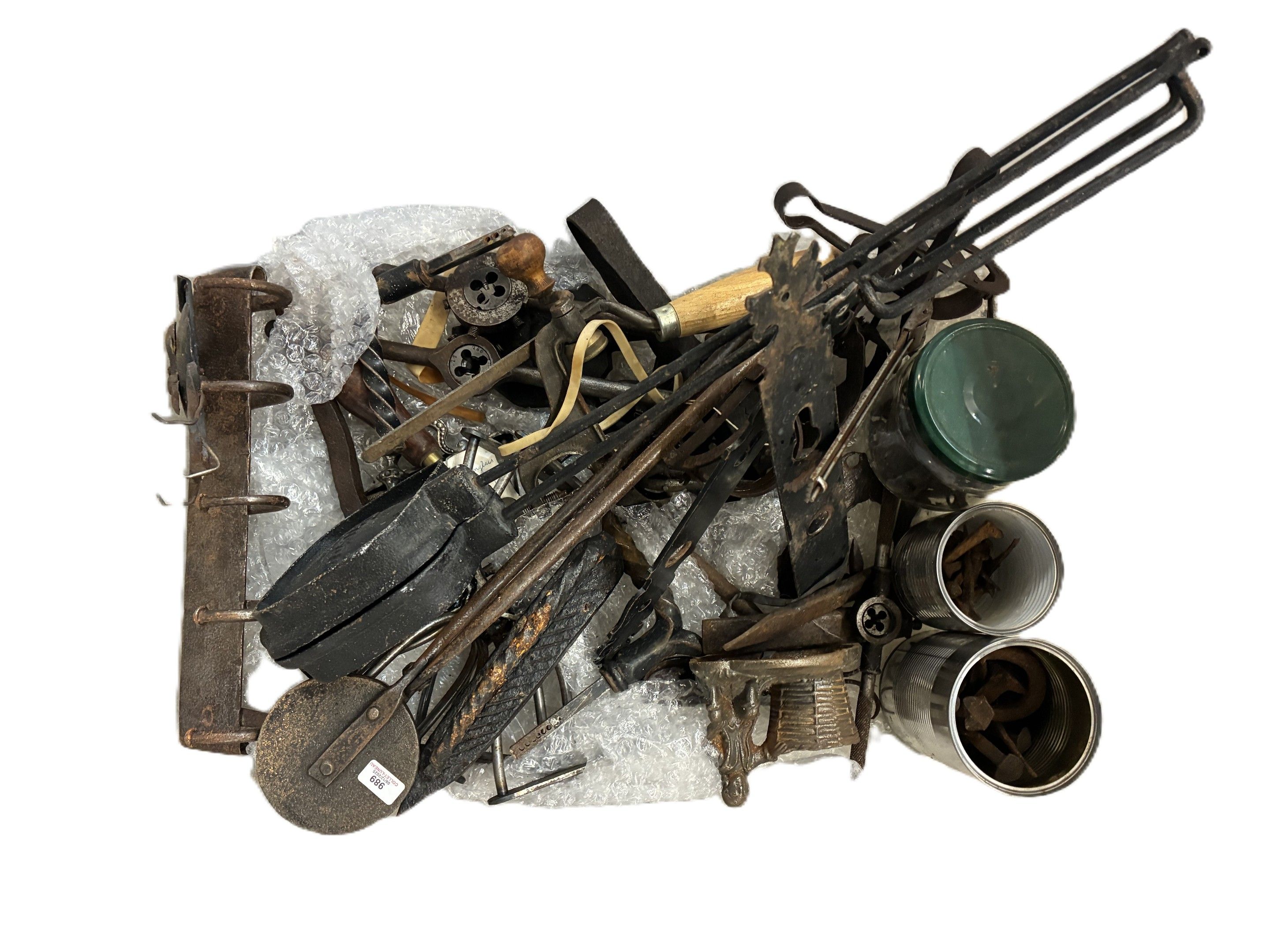 Miscellaneous lot including waffle irons, folk art tools, an…