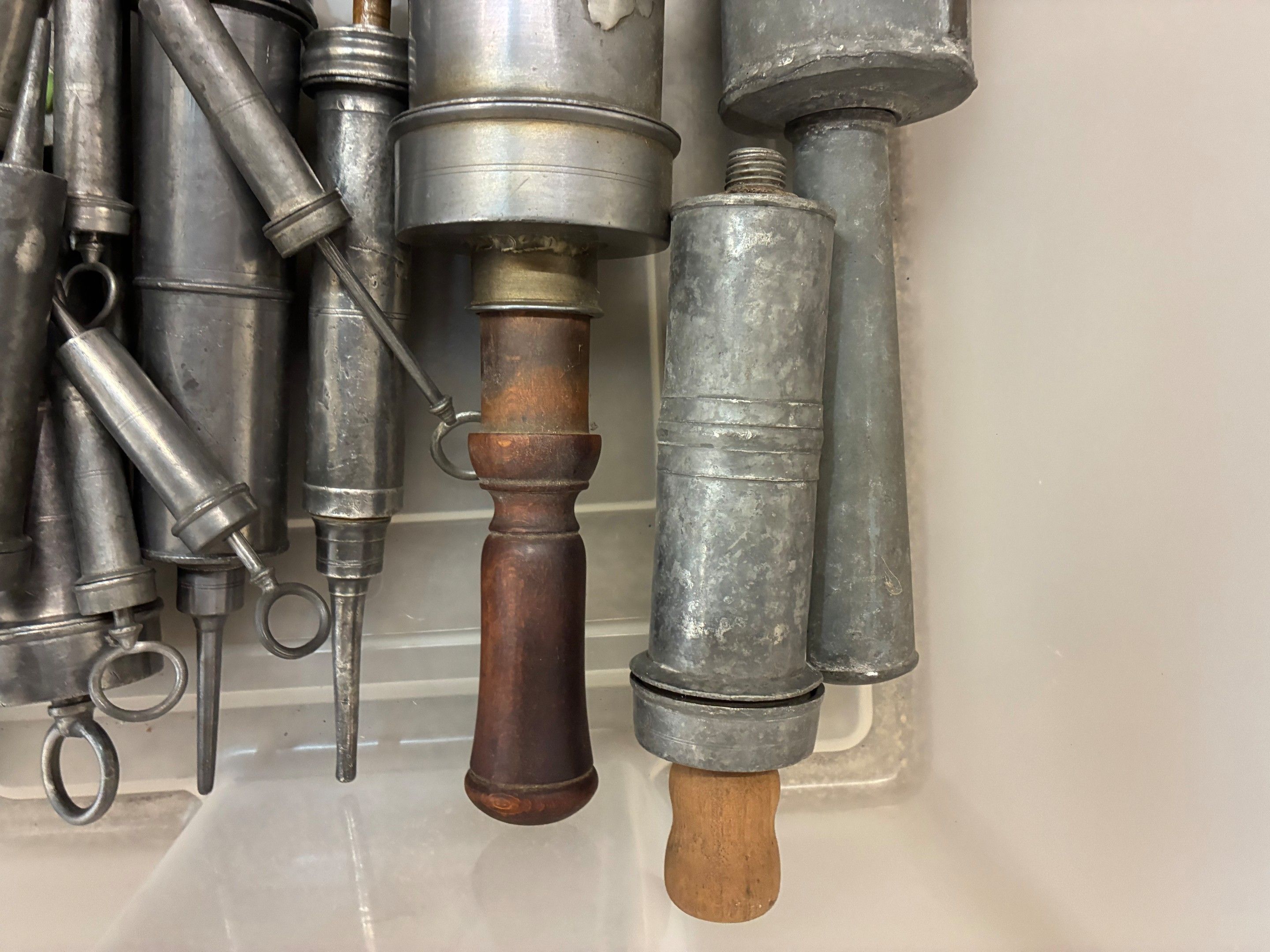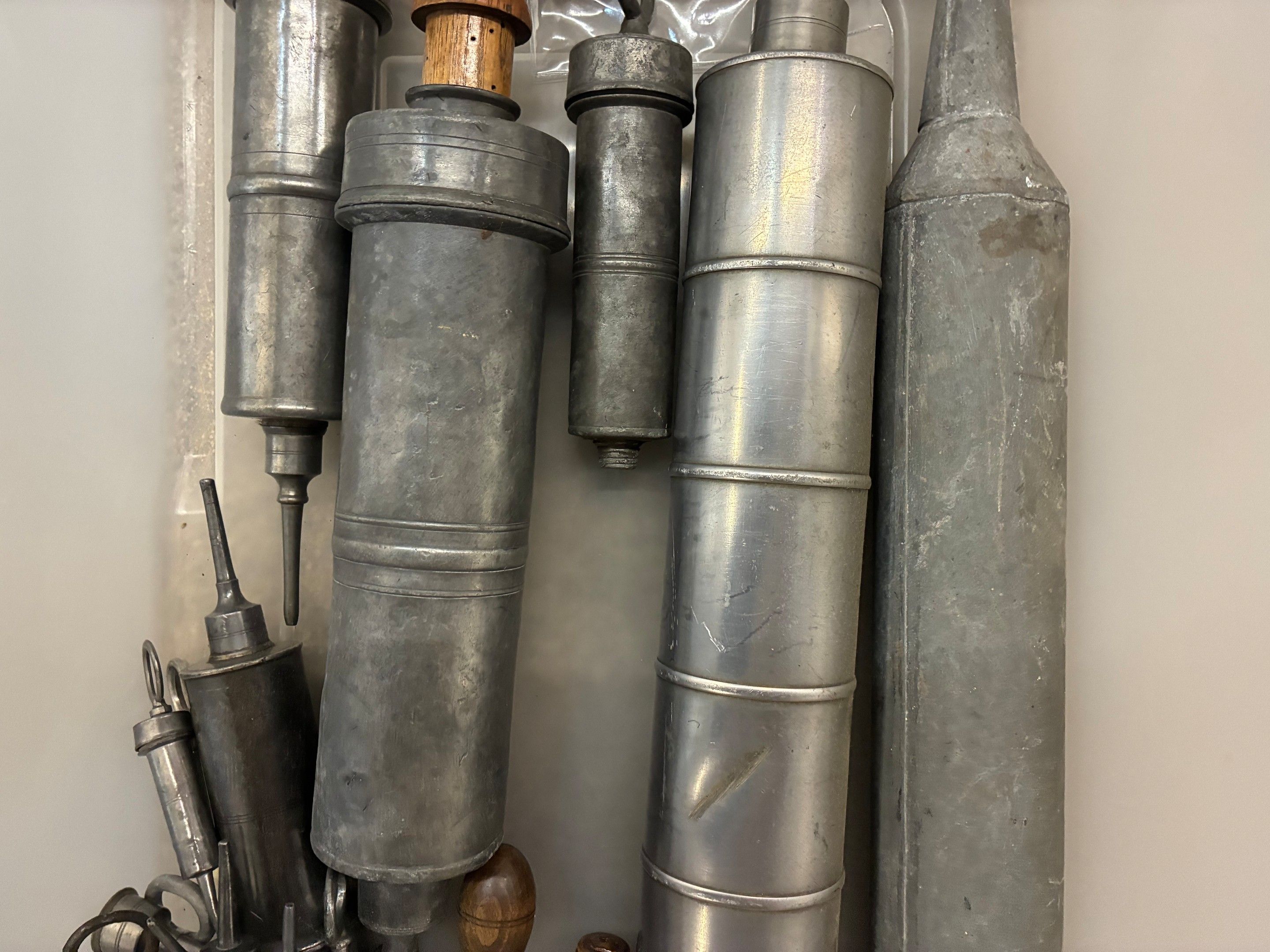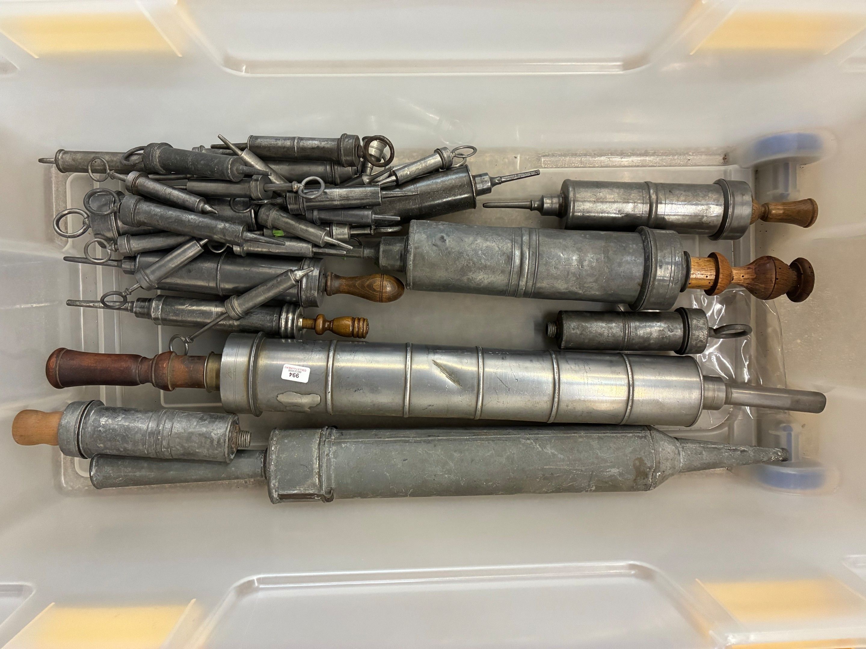 Set of 31 small and large pewter clyster syringes, 19th cent…