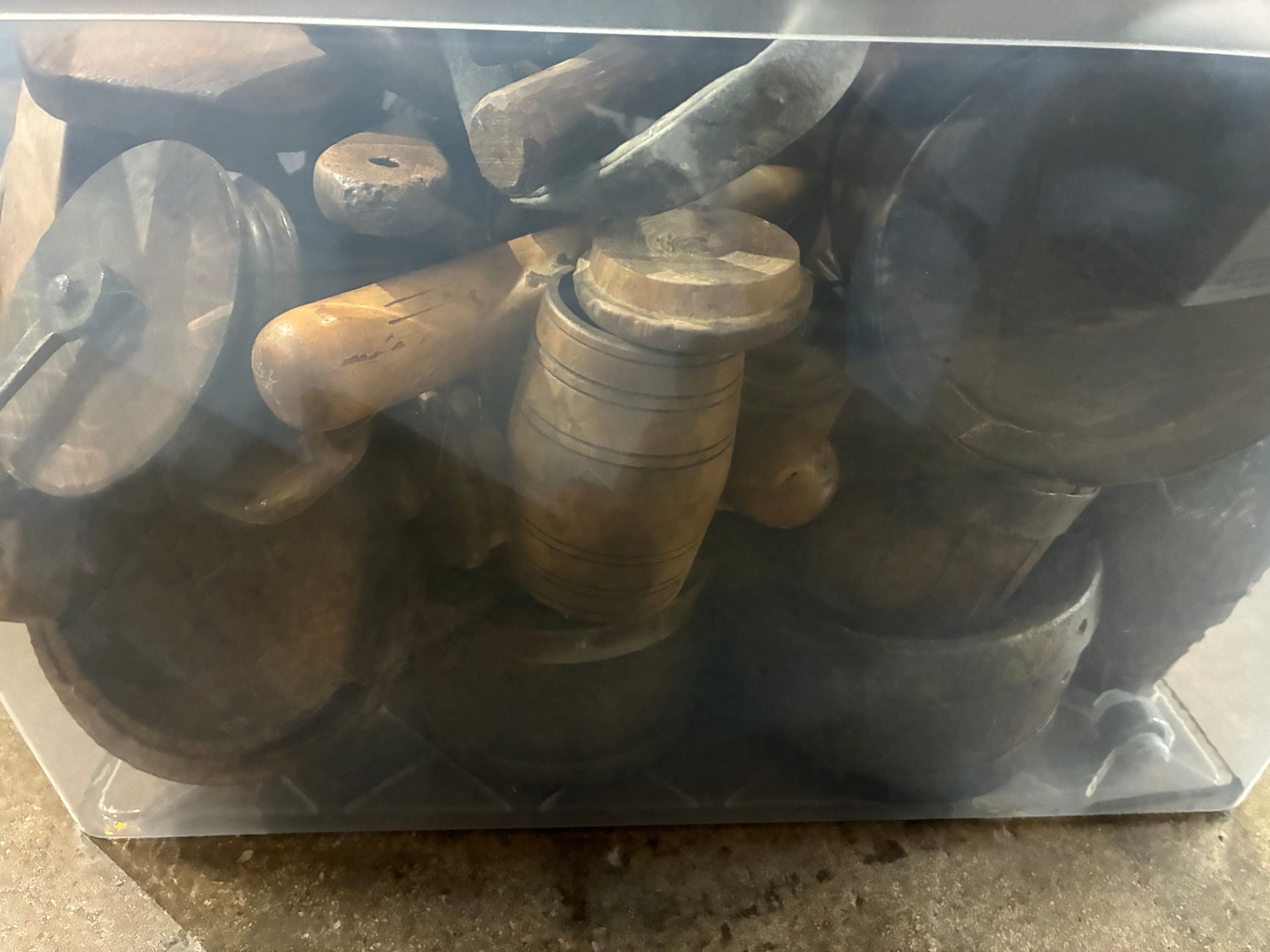 Large lot of popular wooden objects: spoons, combs, boxes...