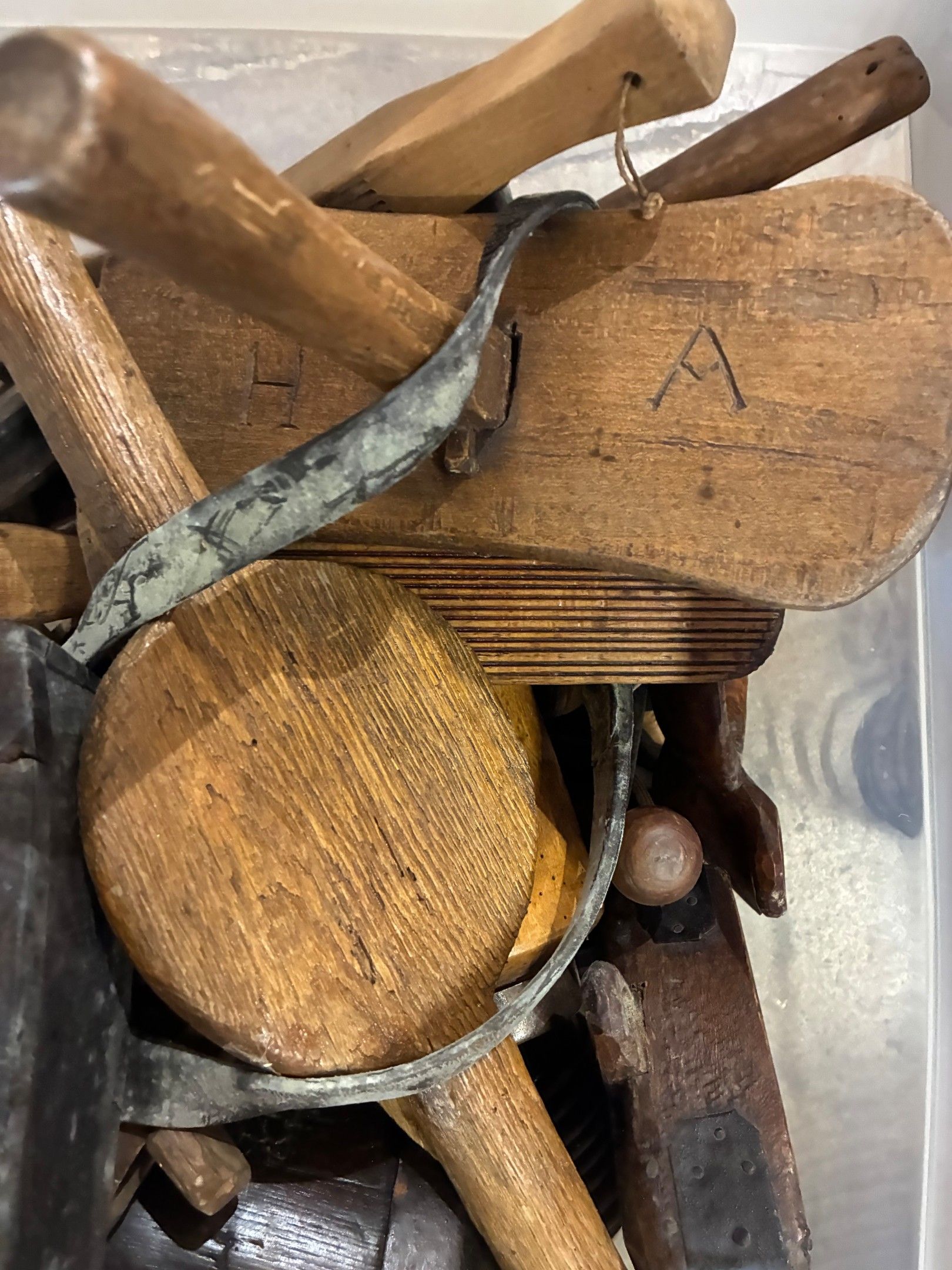 Large lot of popular wooden objects: spoons, combs, boxes.