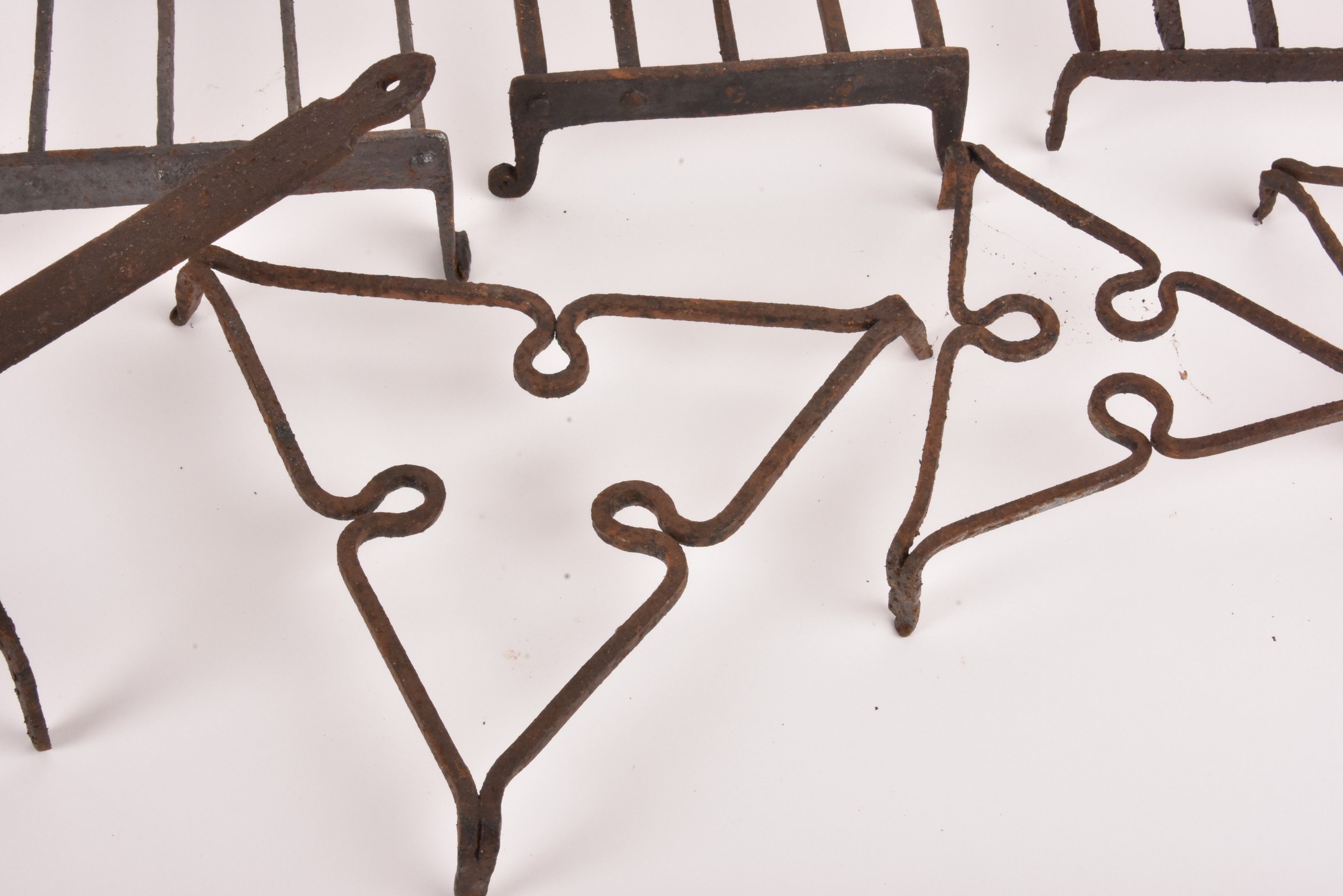 Set of 5 fire grates, 3 wrought iron trivets and a hook, 18t…