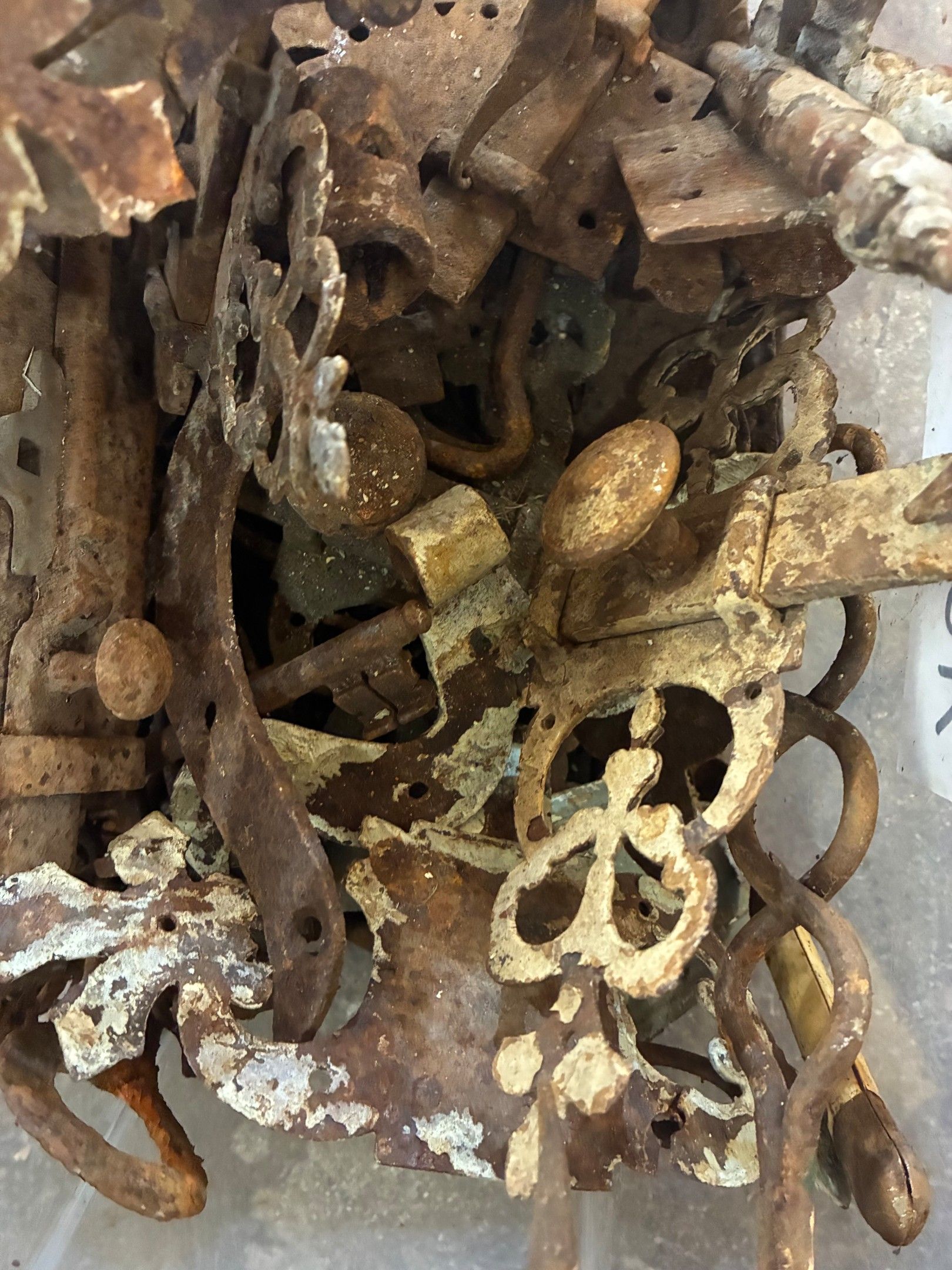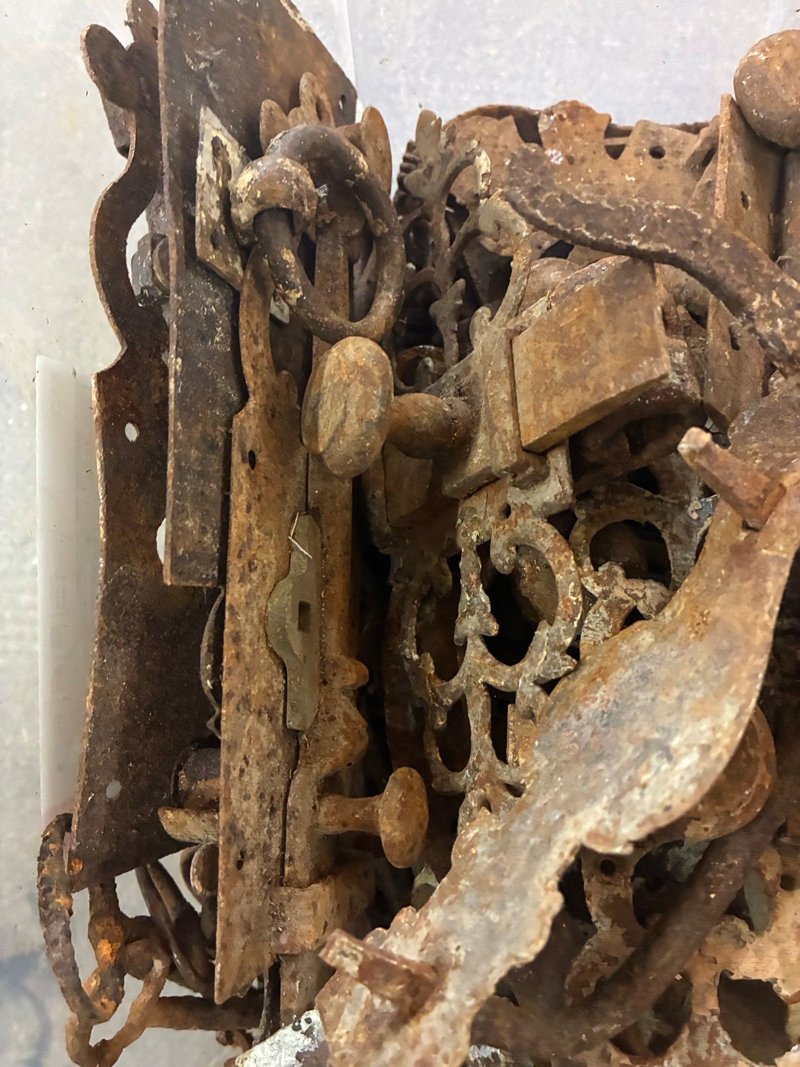 Set of 18th and 19th century wrought iron fittings, locks, hinges and handles (rust)