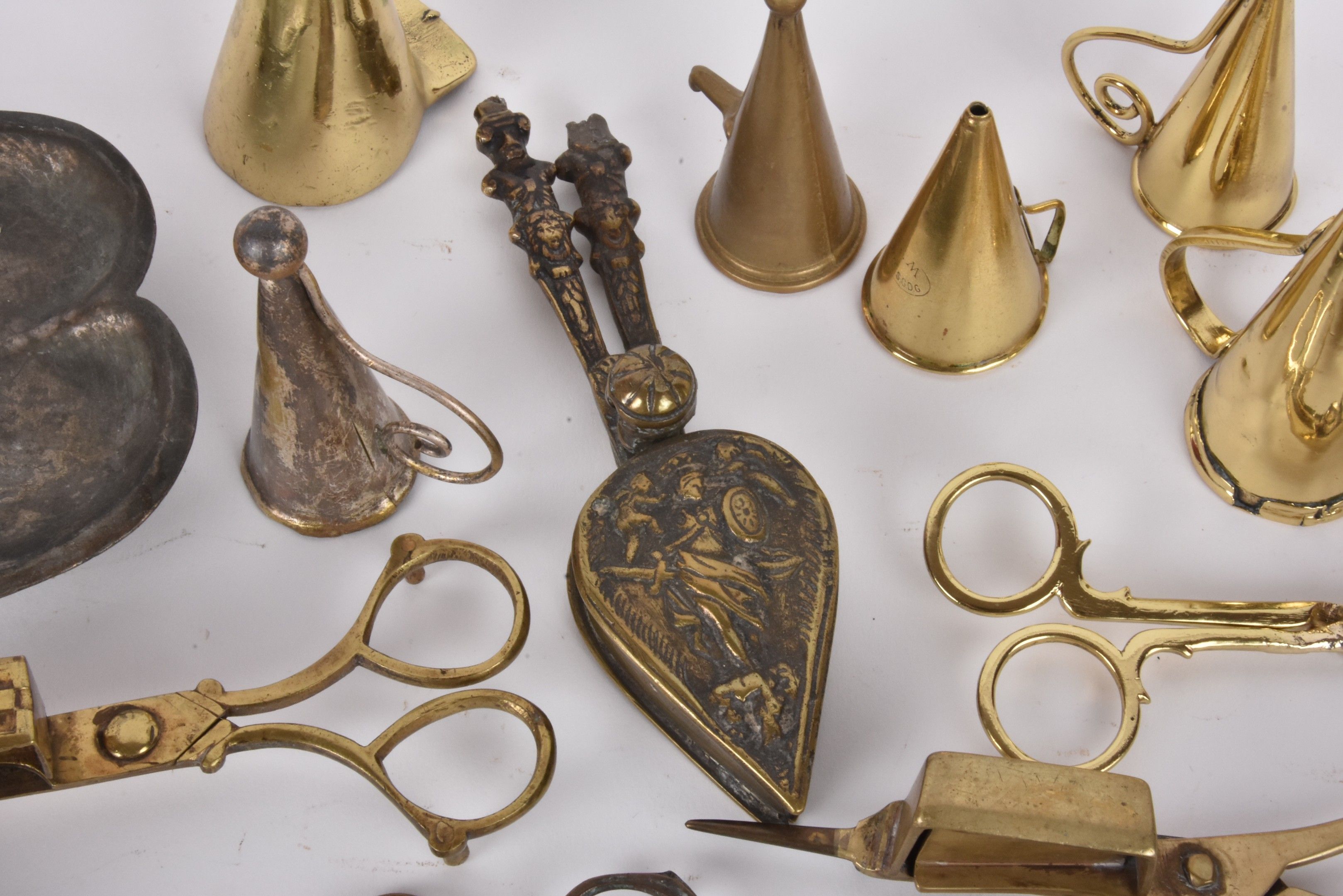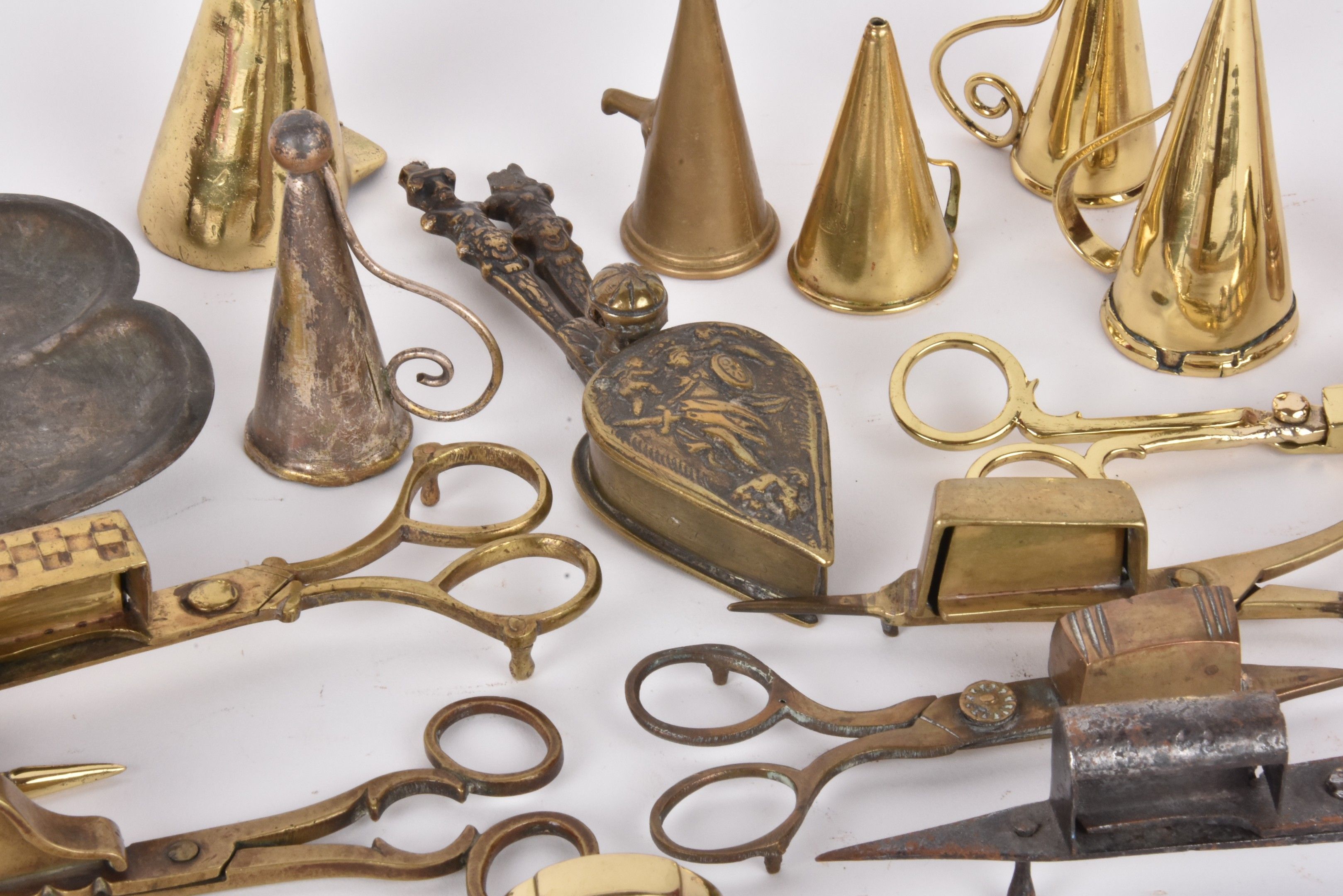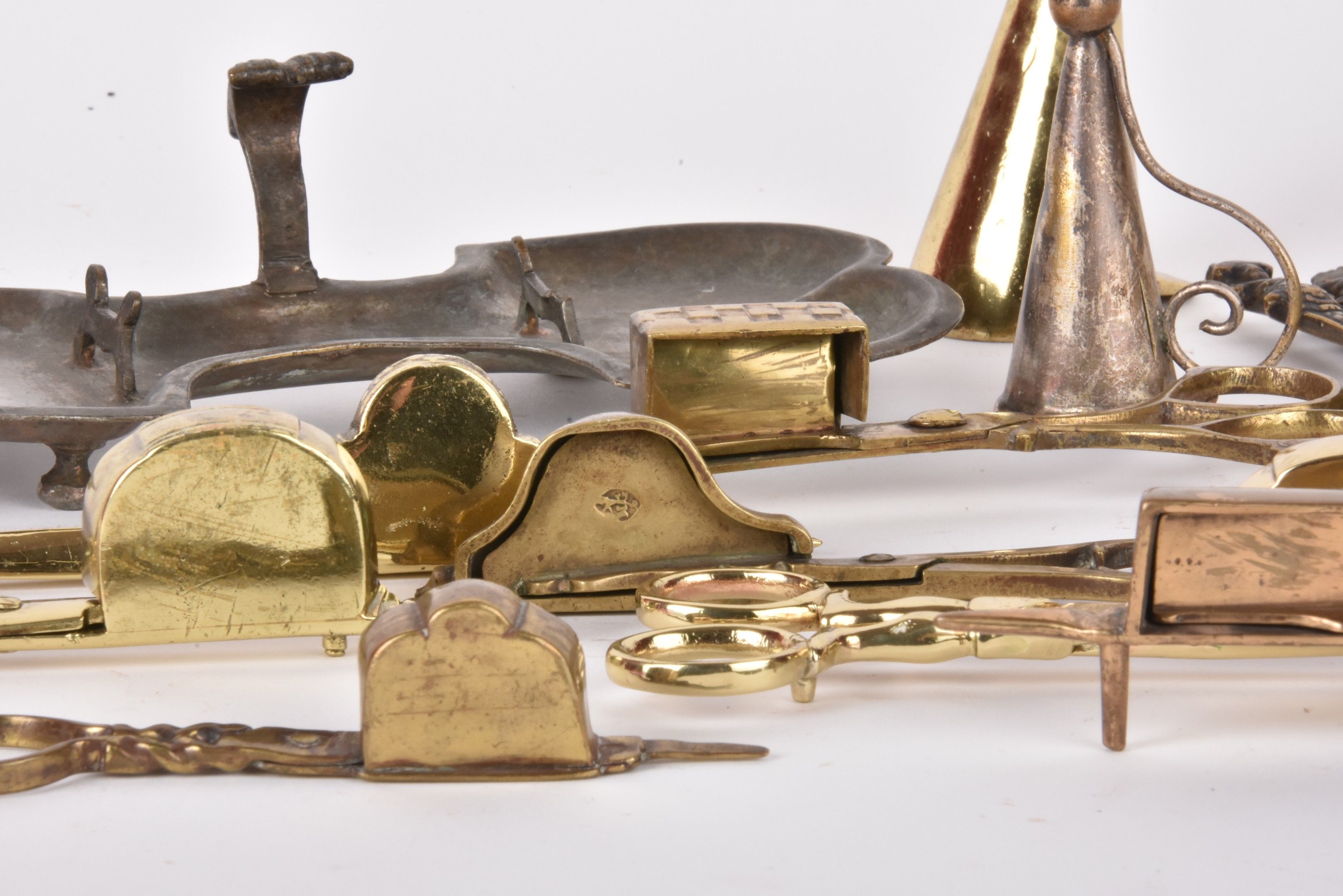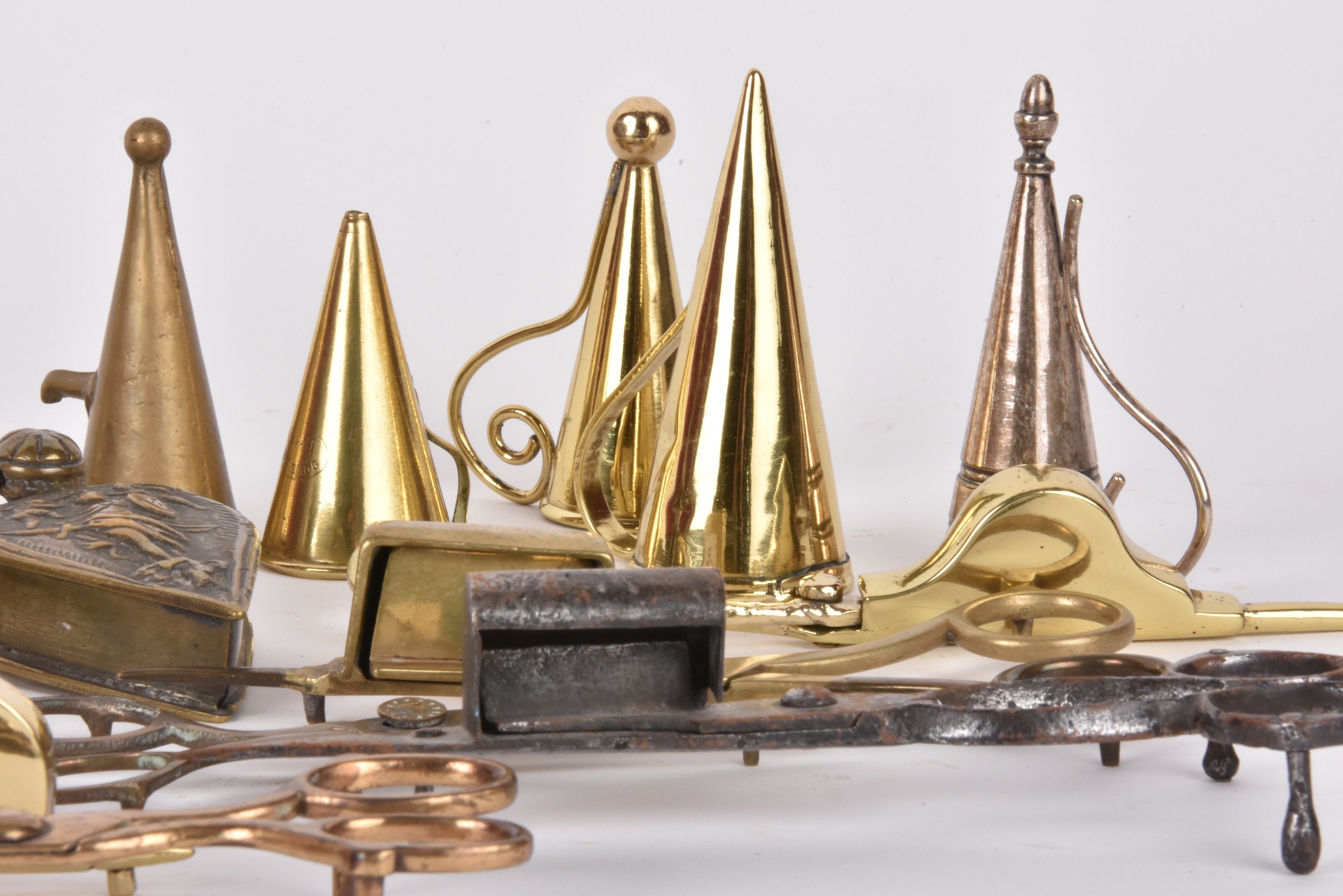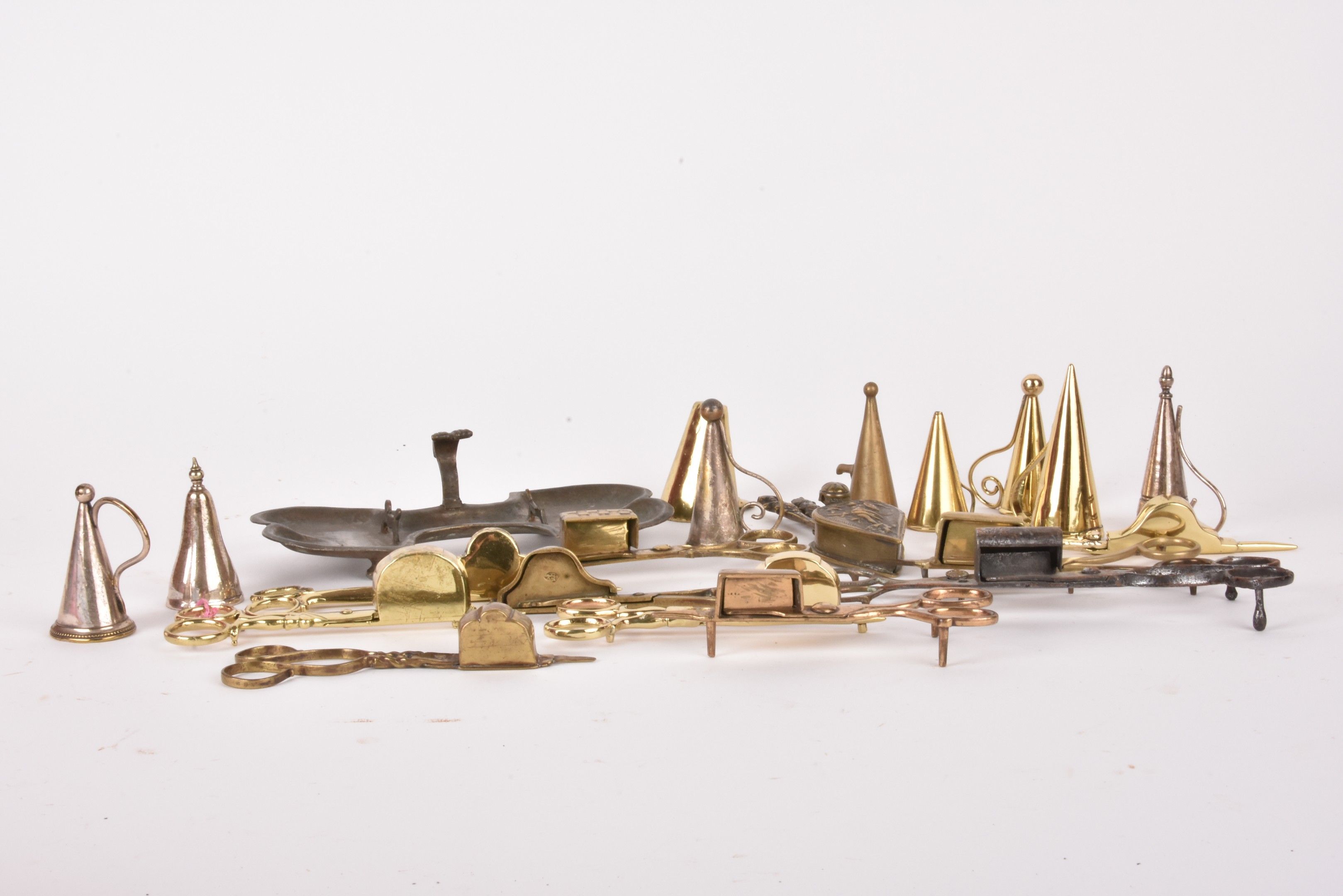 Set of wrought iron and brass flycatchers and snuffers