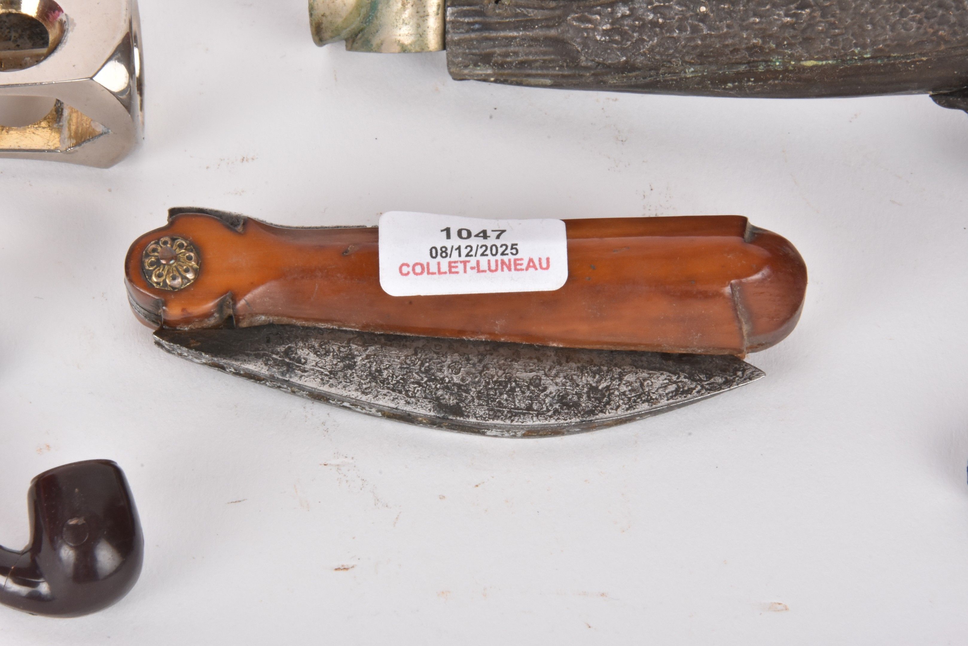 Set of two cigar cutters, a shoe-shaped penknife and pipe cl…