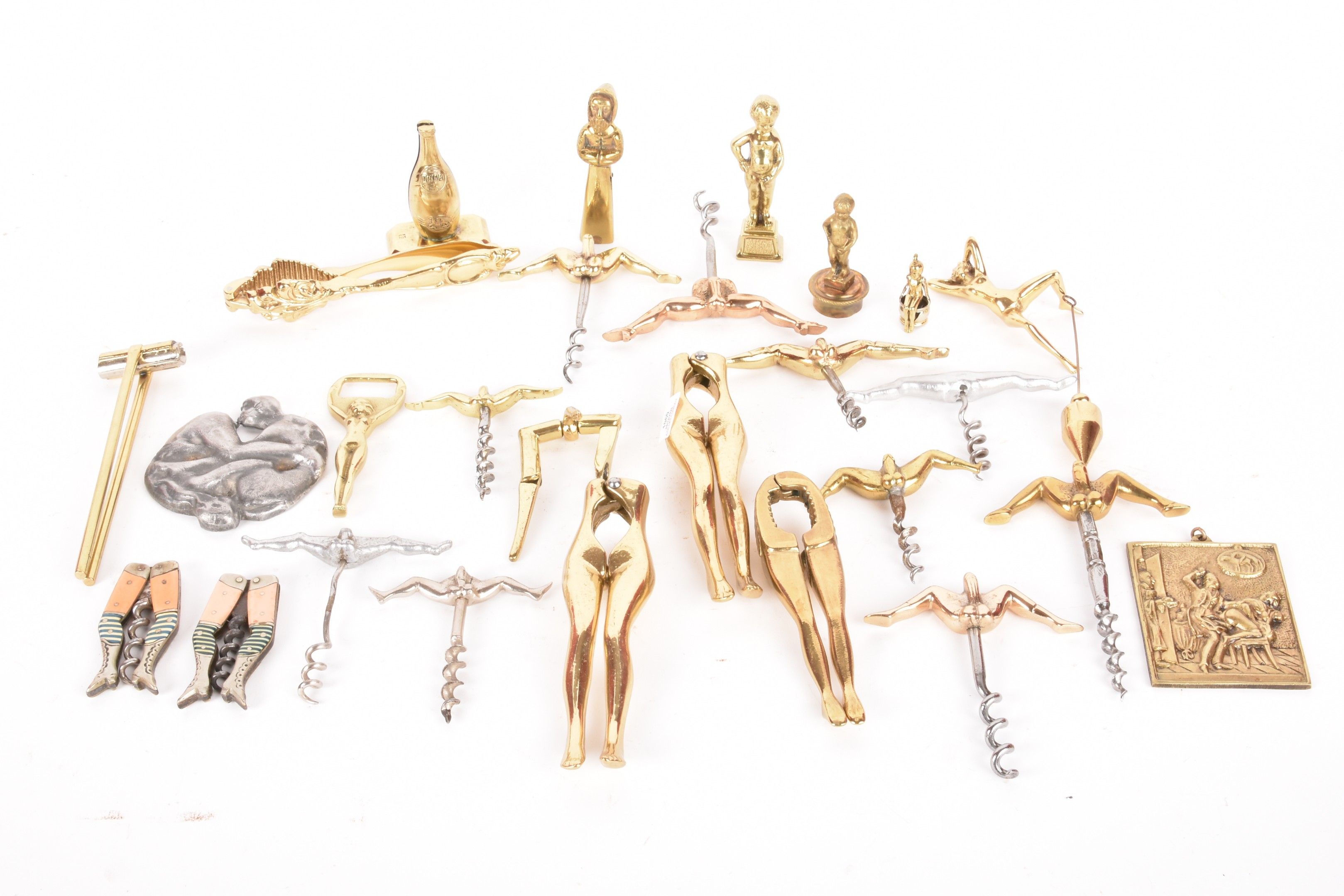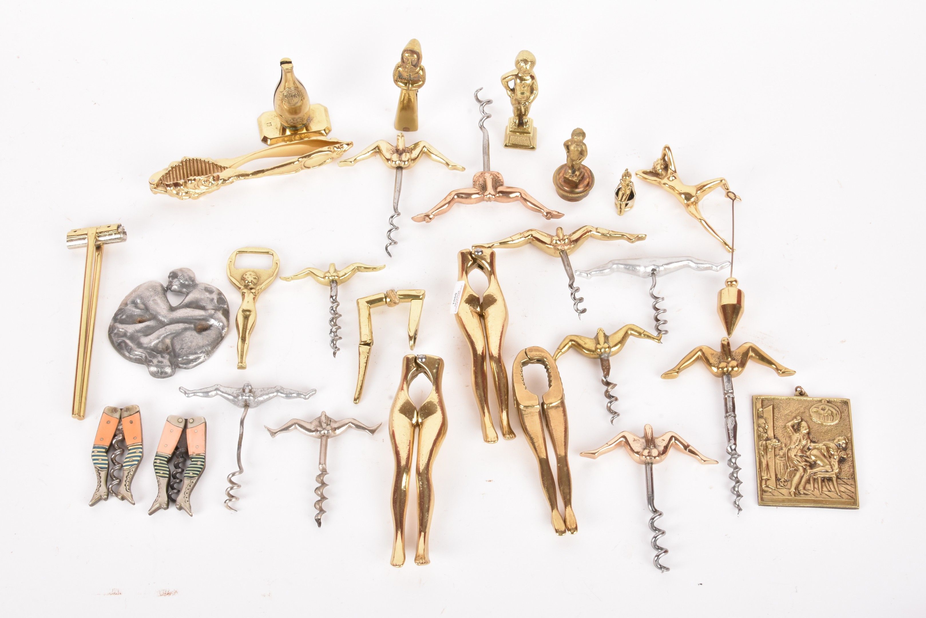 EROTICA - Set of corkscrews, nutcrackers and bottle openers in brass and metal