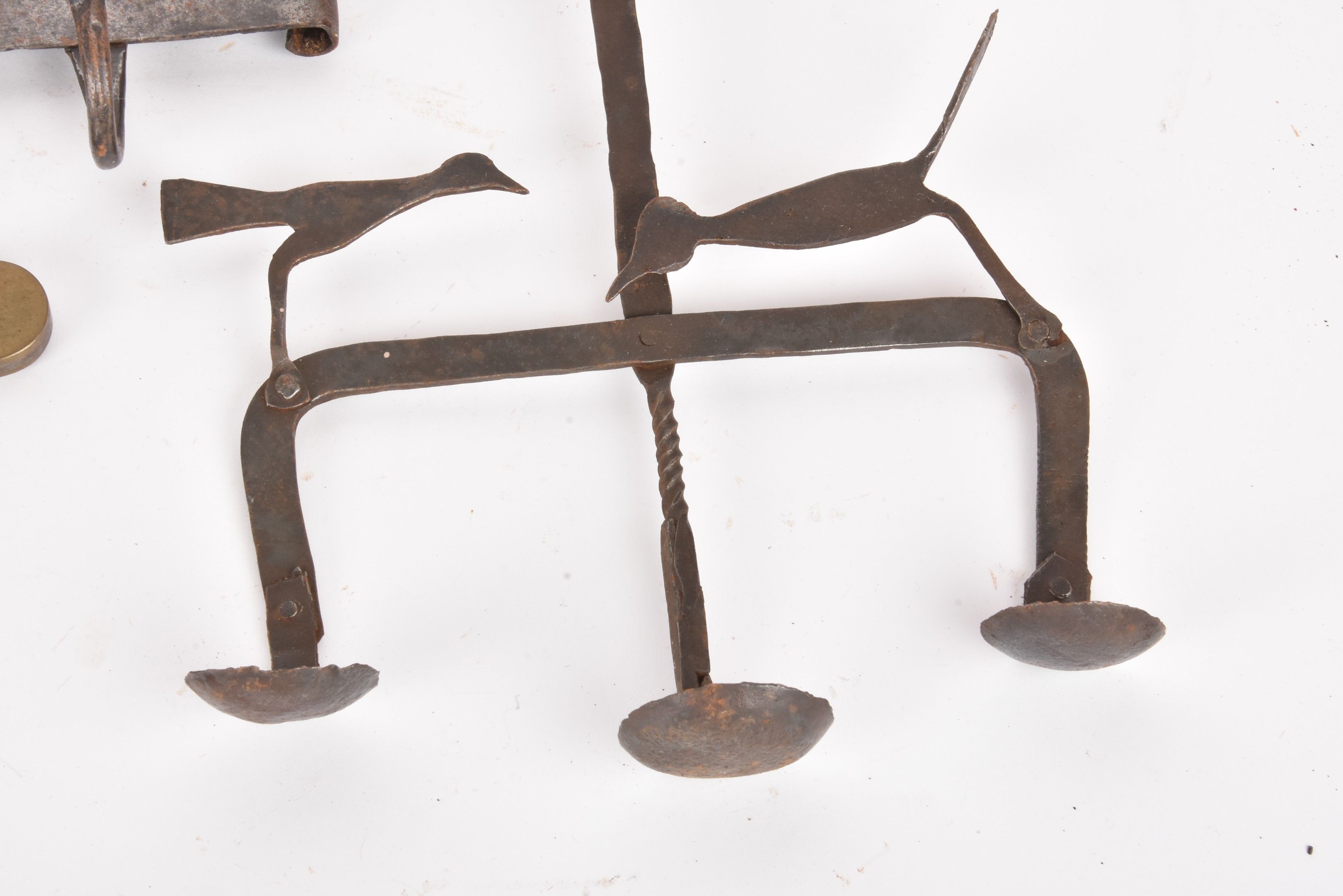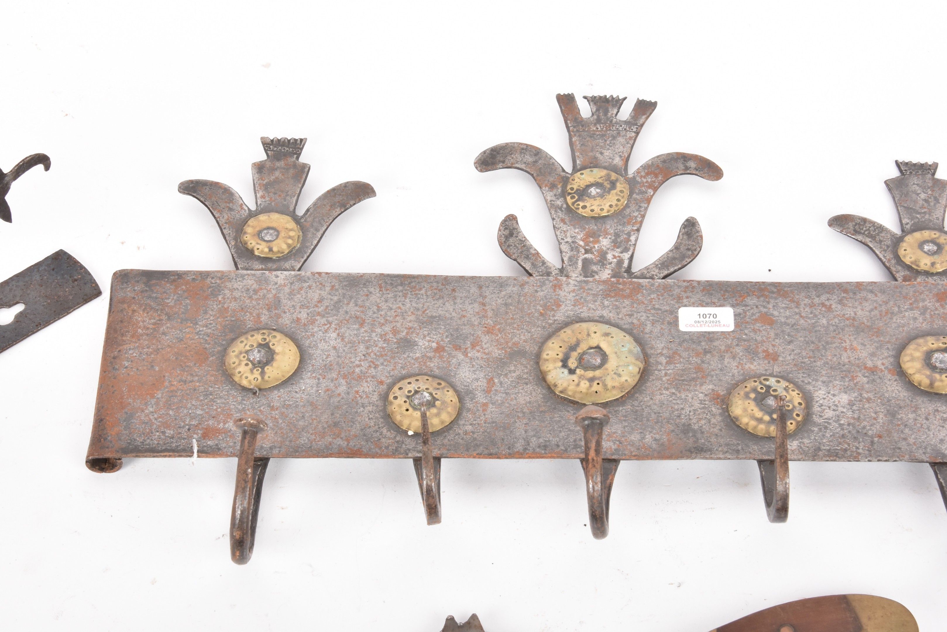 Batch of wrought-iron items: instrument and miscellaneous ho…