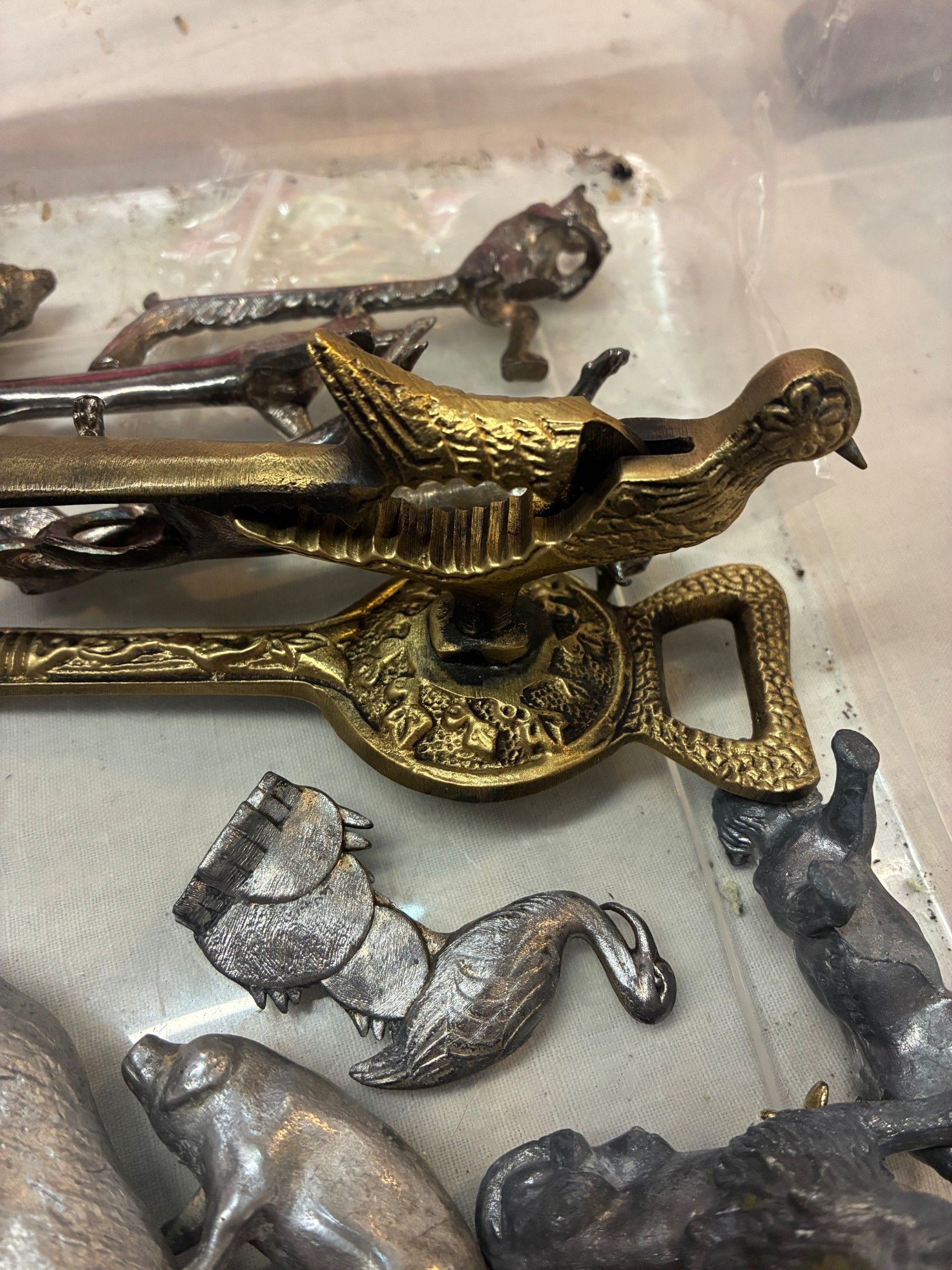 Lot of small knick-knacks depicting animals: nutcrackers, knife-holders and other knick-knacks