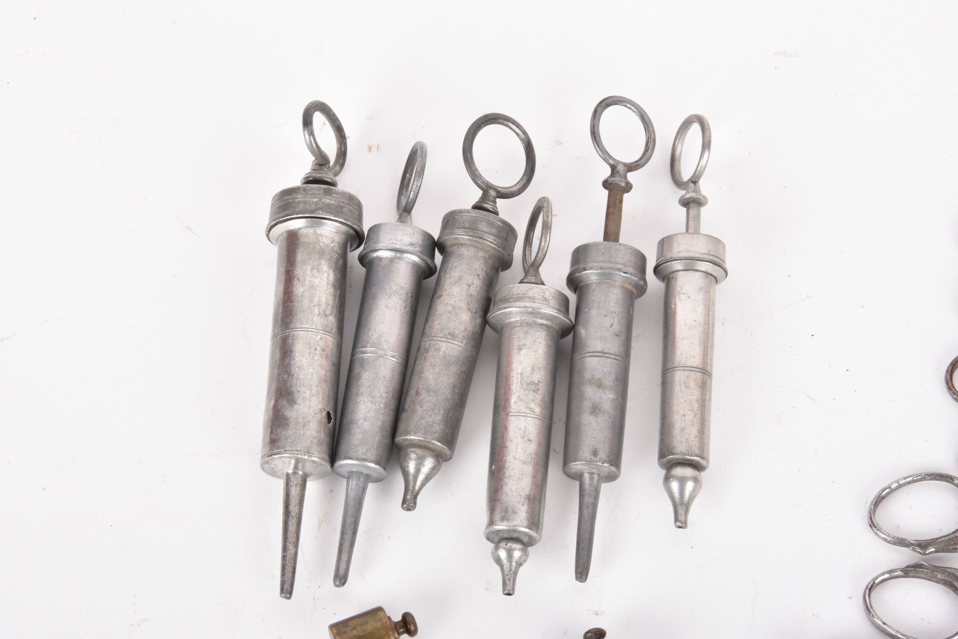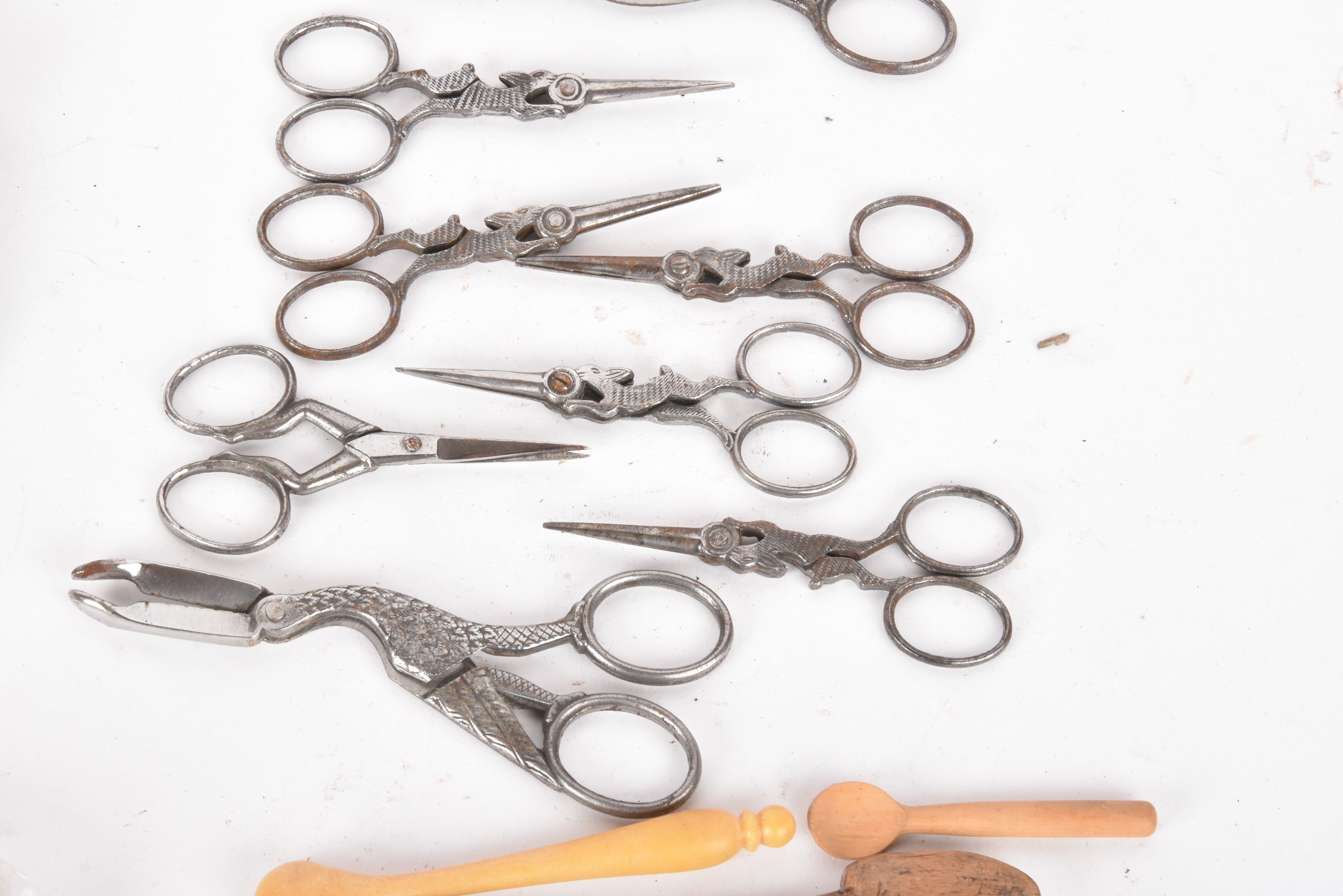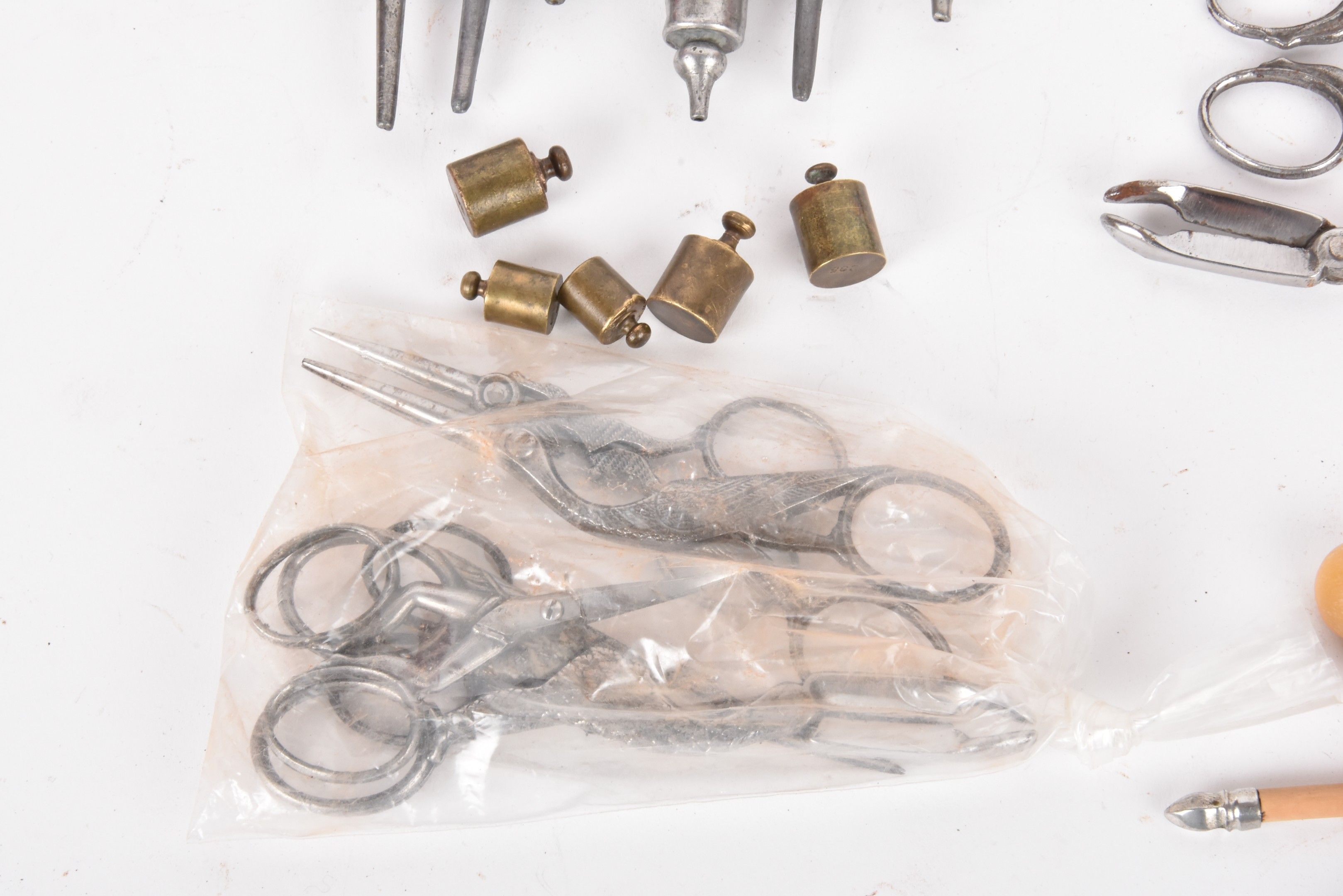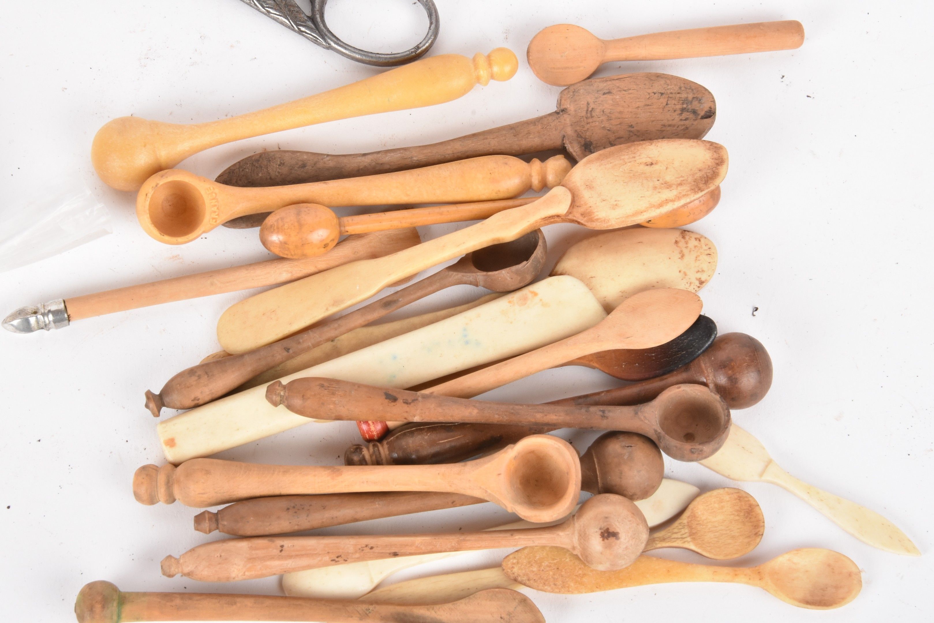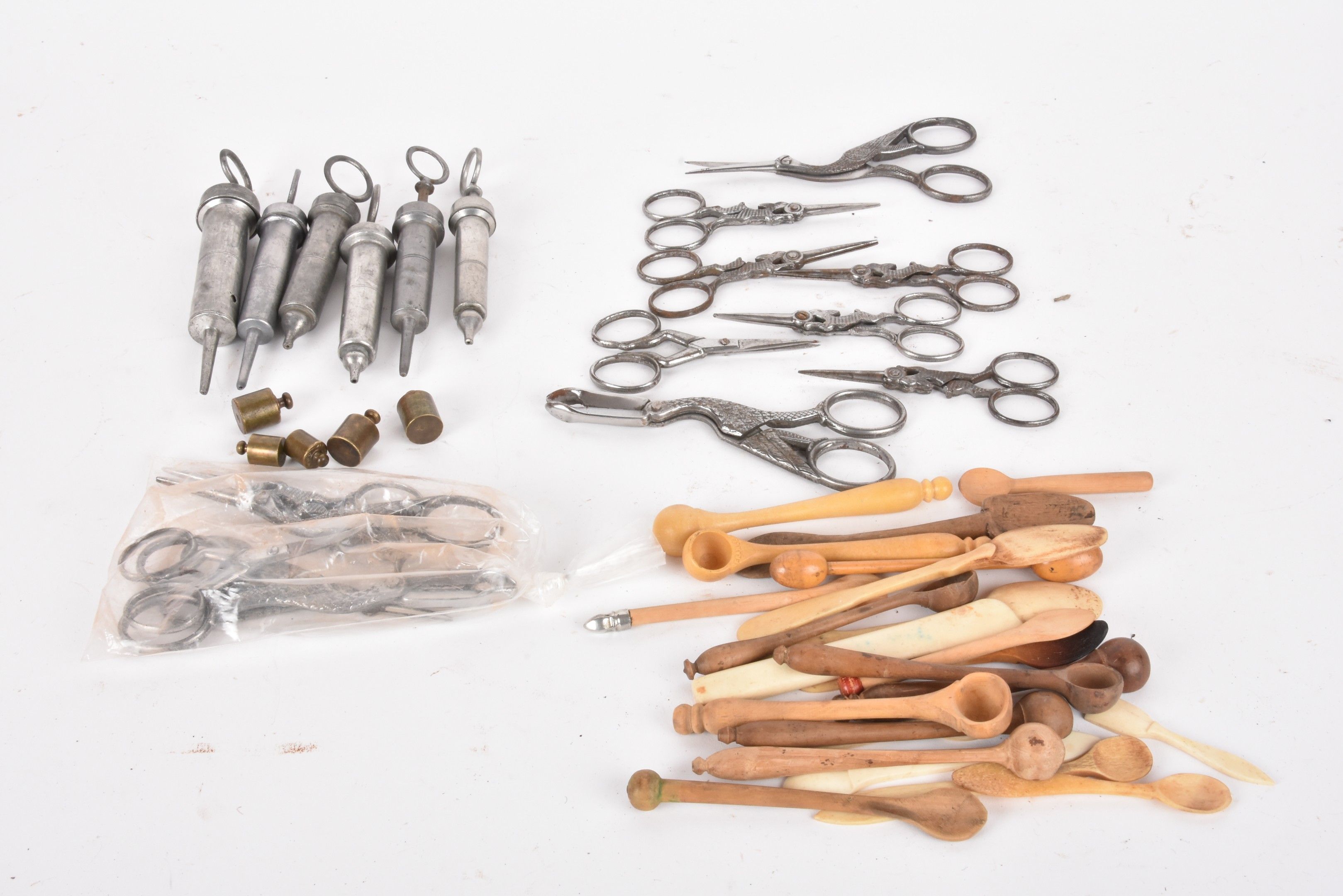 Lot including small scissors, small wooden spoons, clyster syringes, weights...
