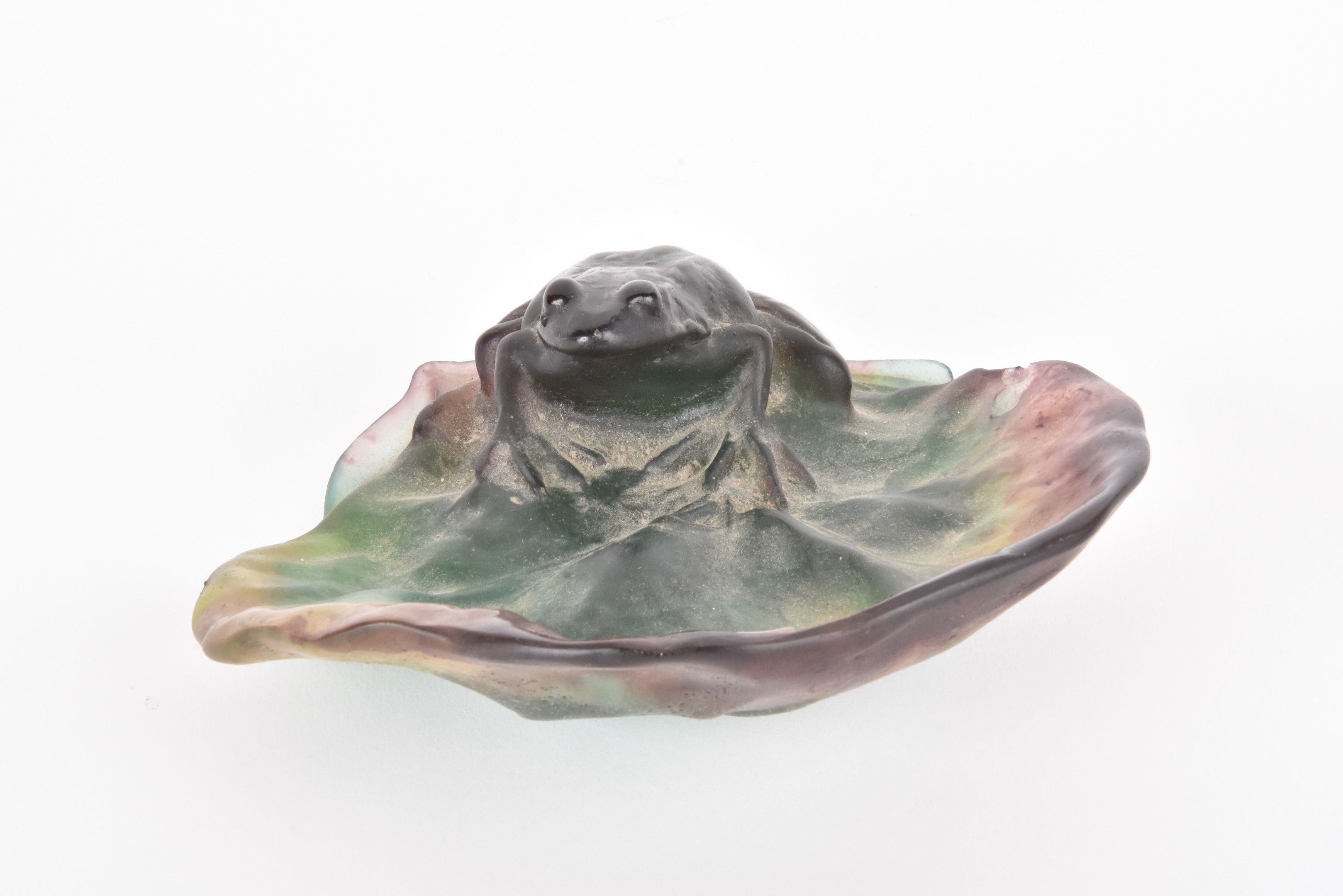 DAUM France - Green and mauve pâte de verre pocket with frog…