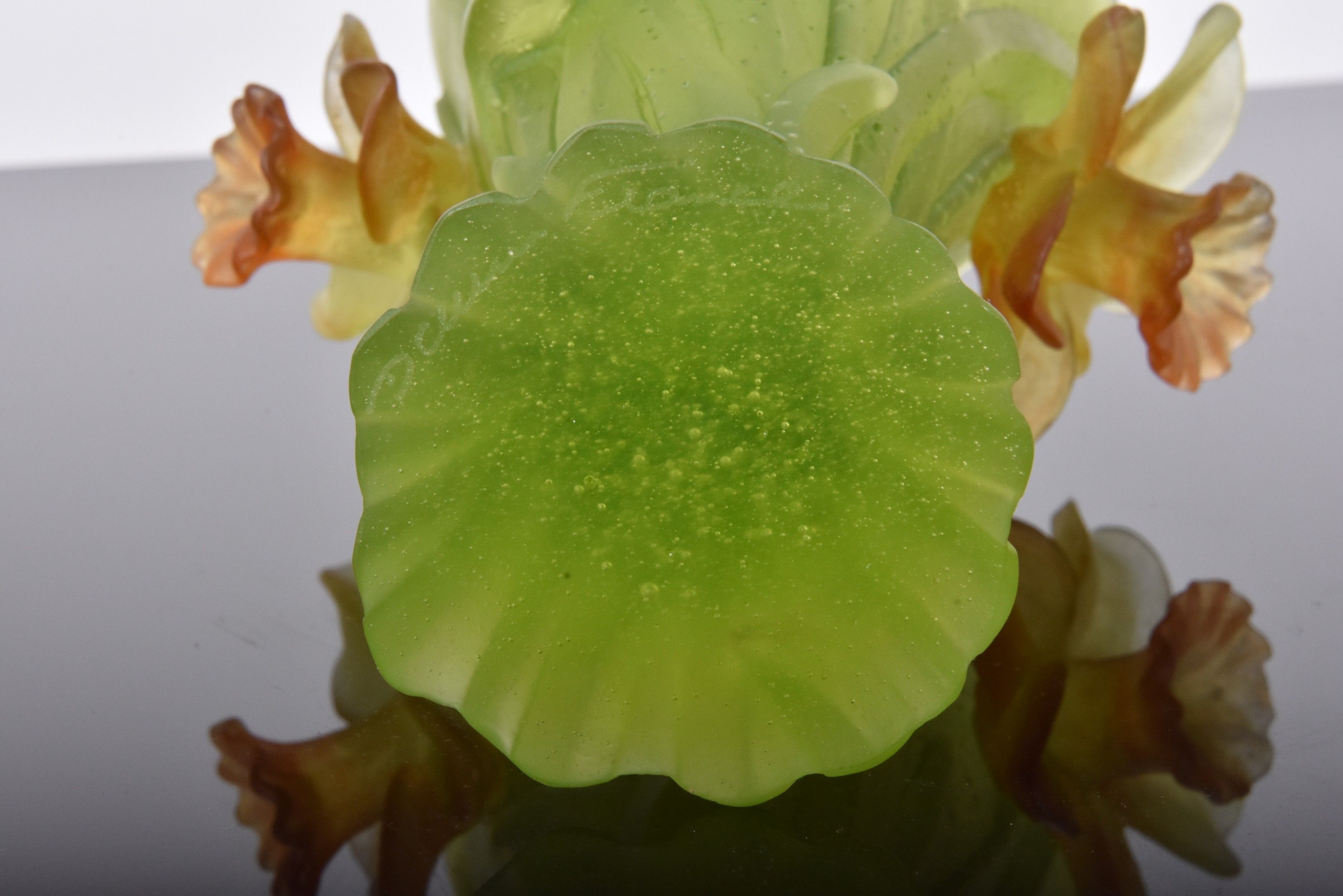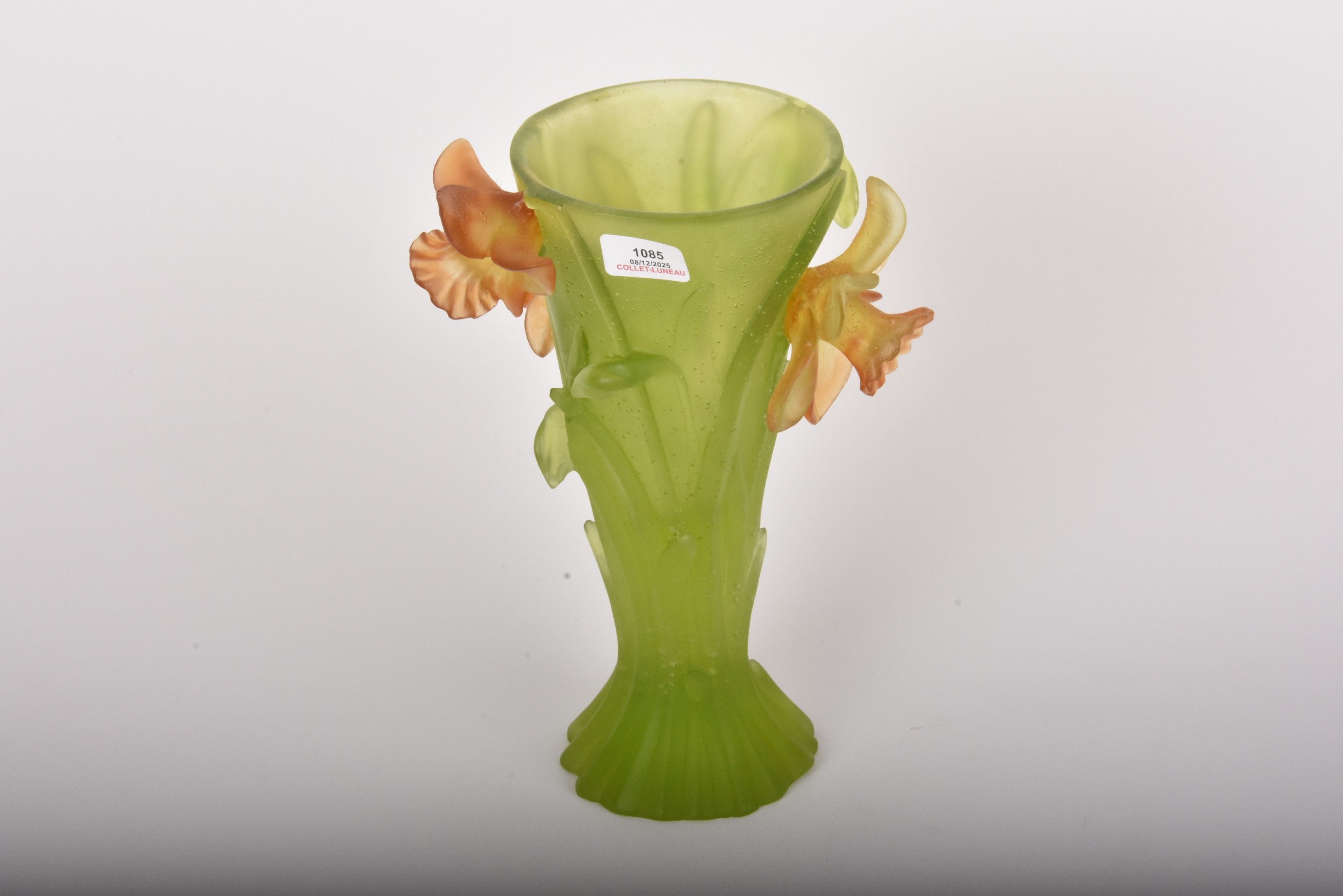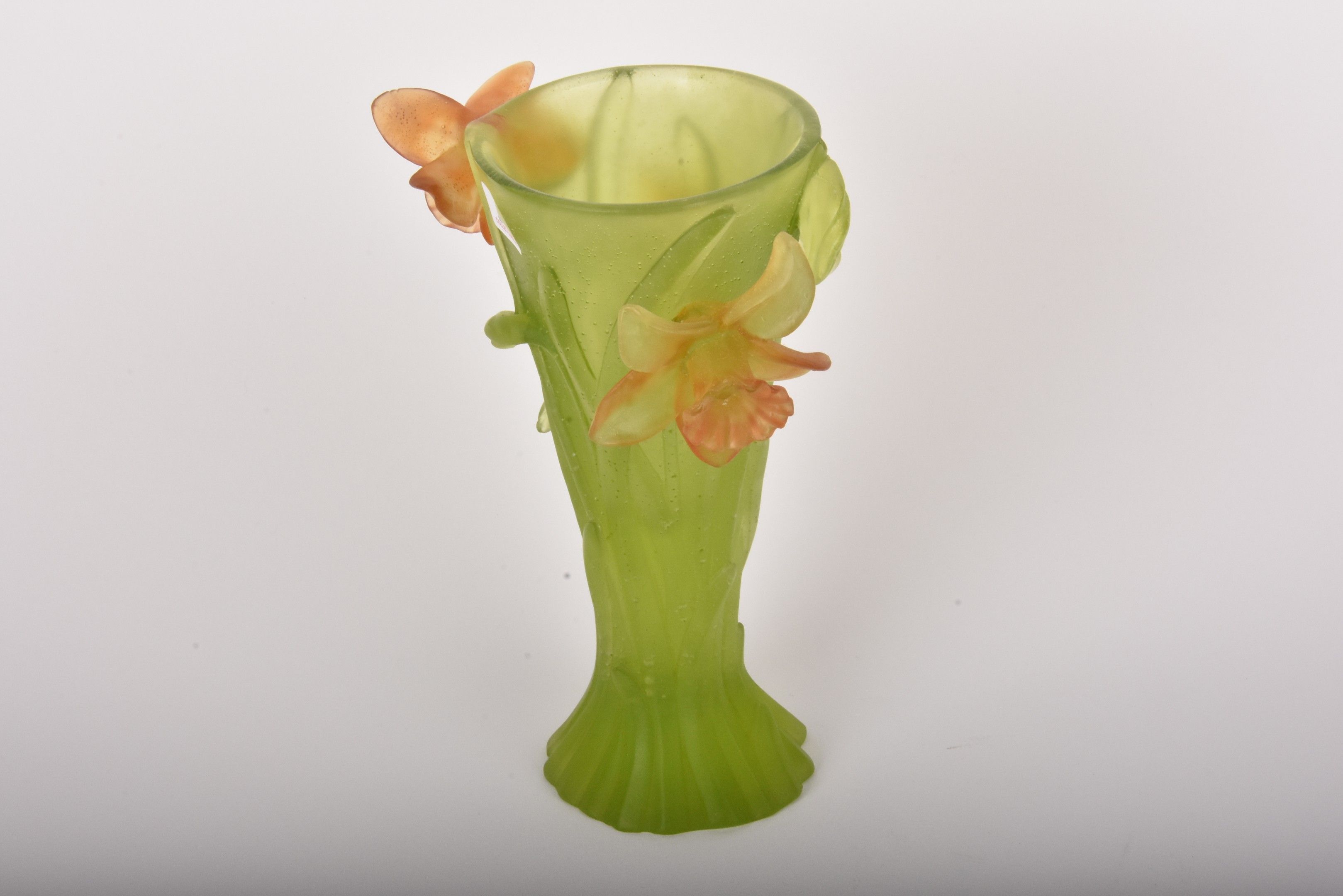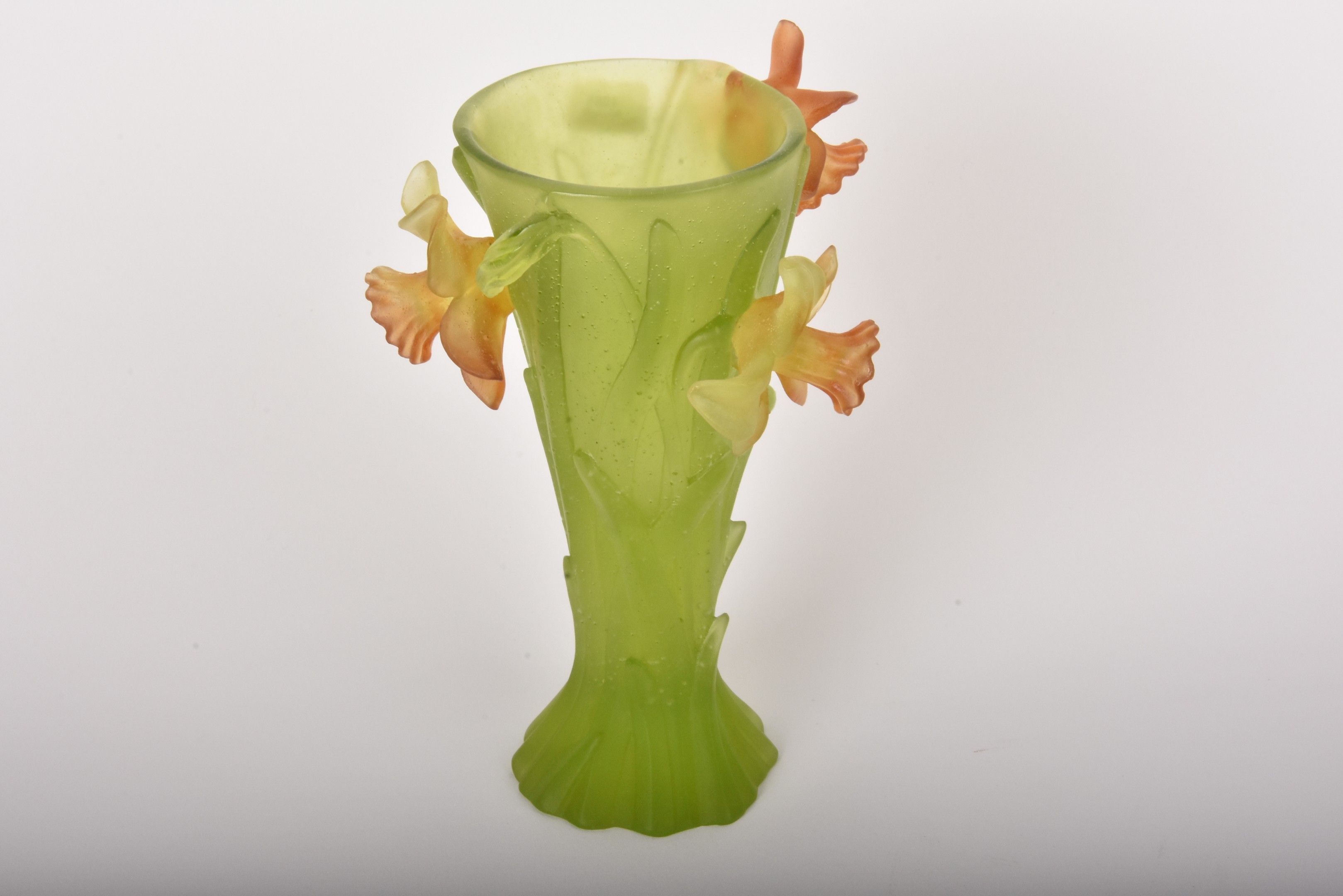 DAUM France - Daffodil vase in green and yellow shaded glass…