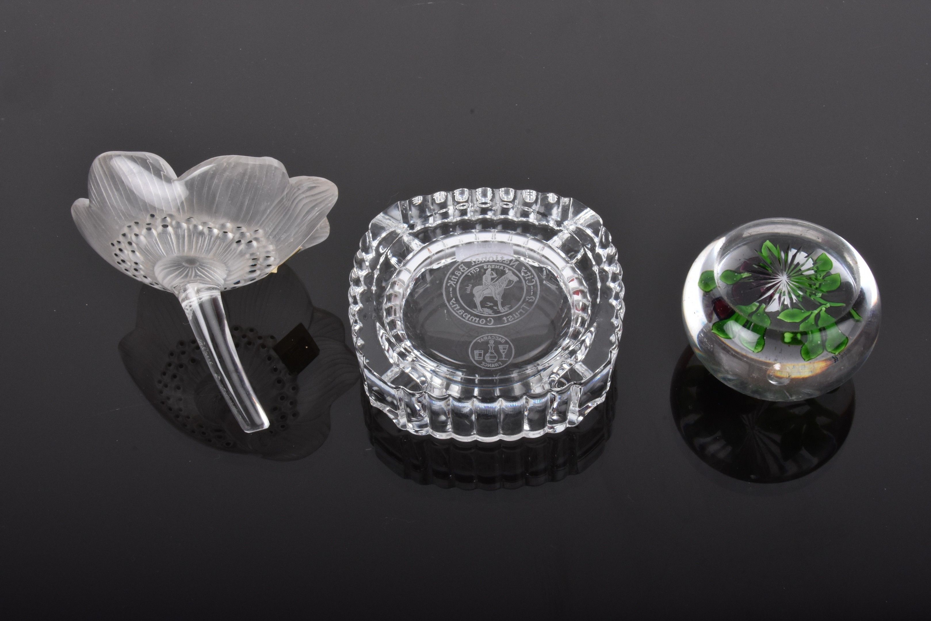 Lot including a LALIQUE flower, a BACCARAT ashtray and a sulphur ball
