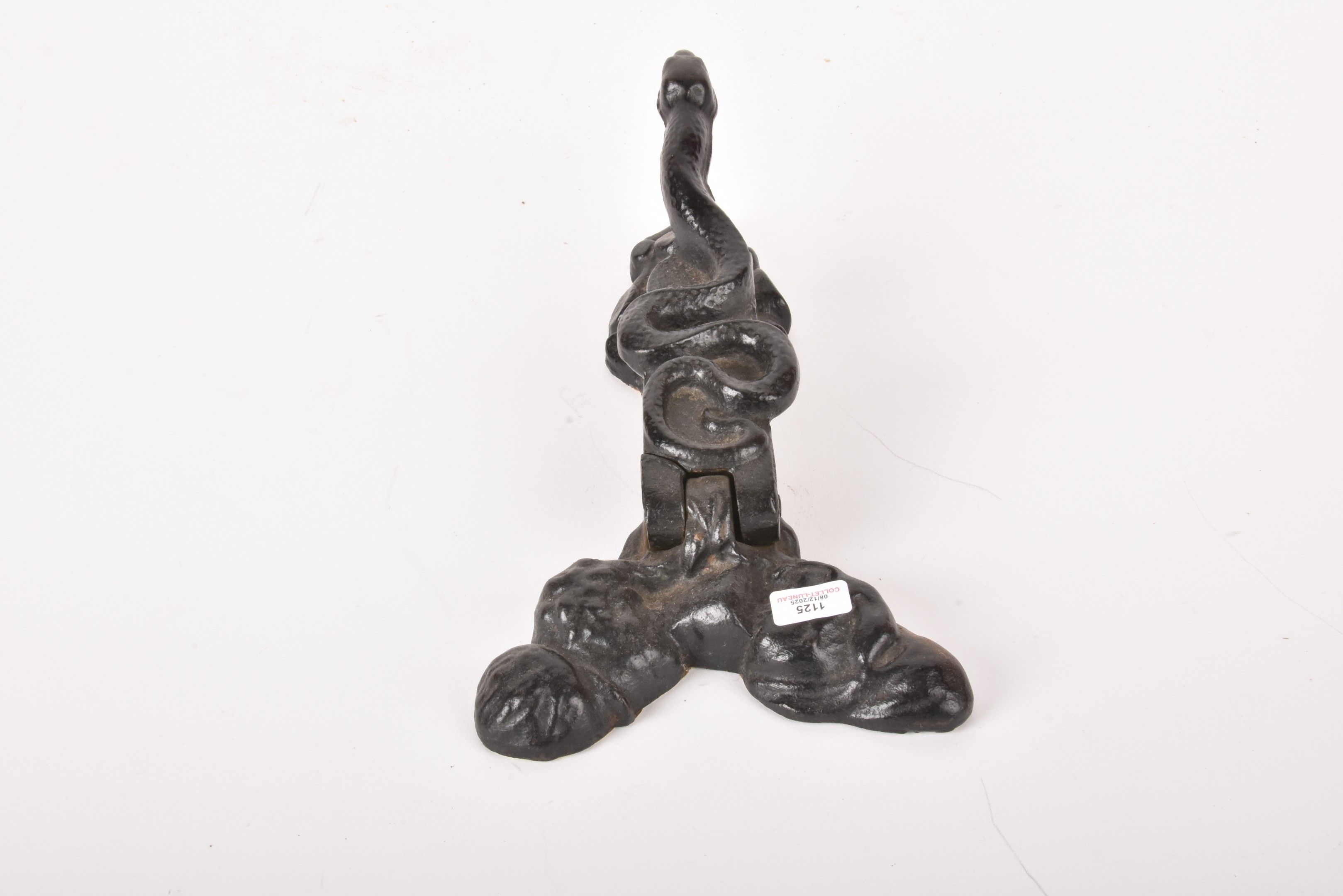 Cast iron apothecary stopper decorated with a snake. 19th century, damaged L: 26 cm
