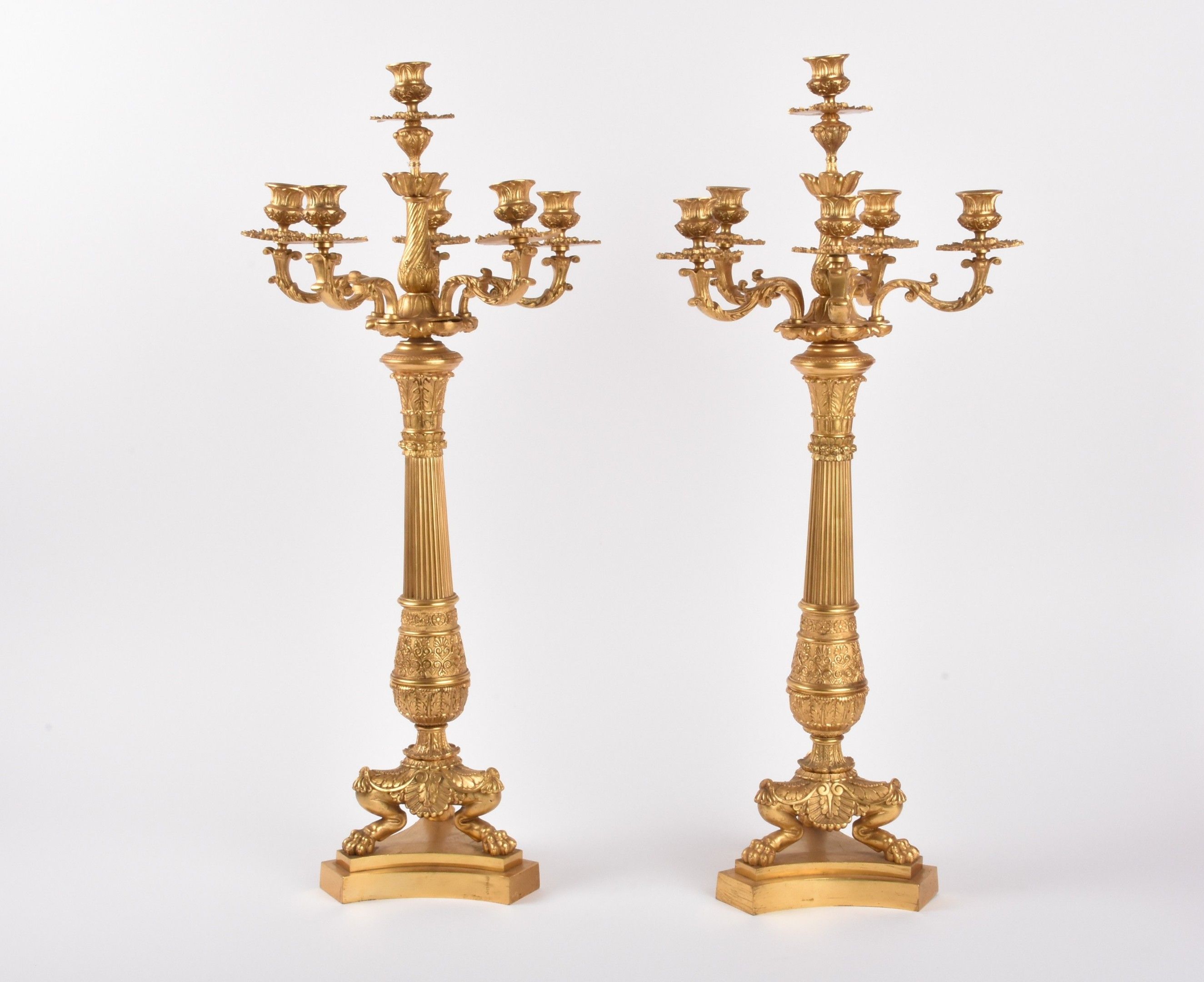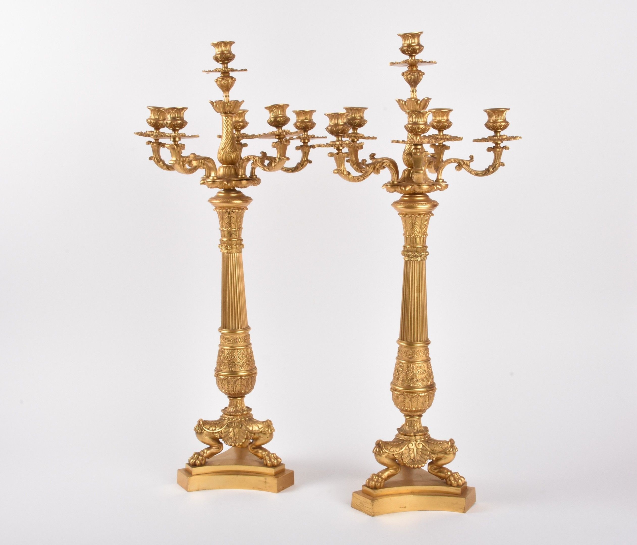 Pair of large gilt bronze candelabras.