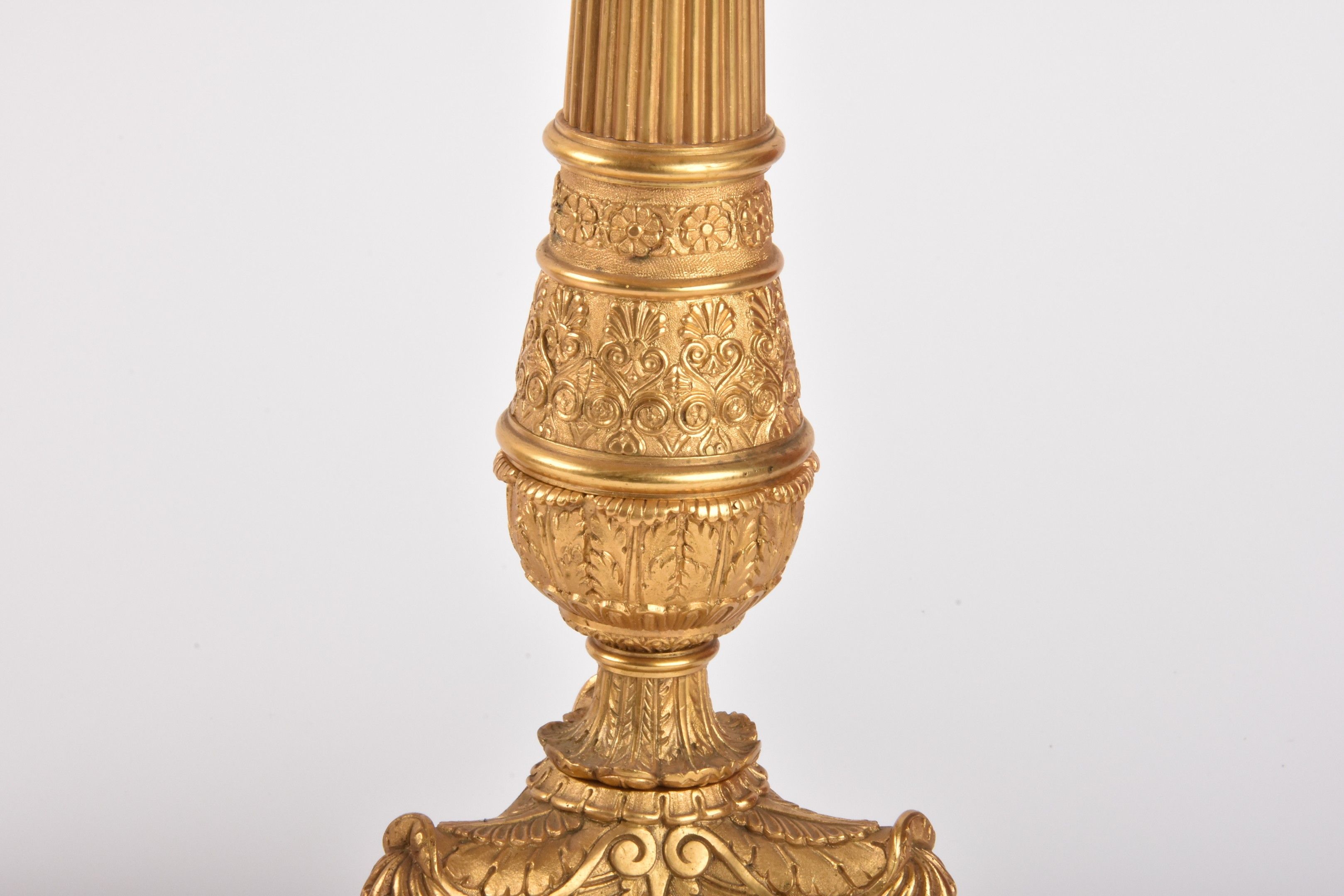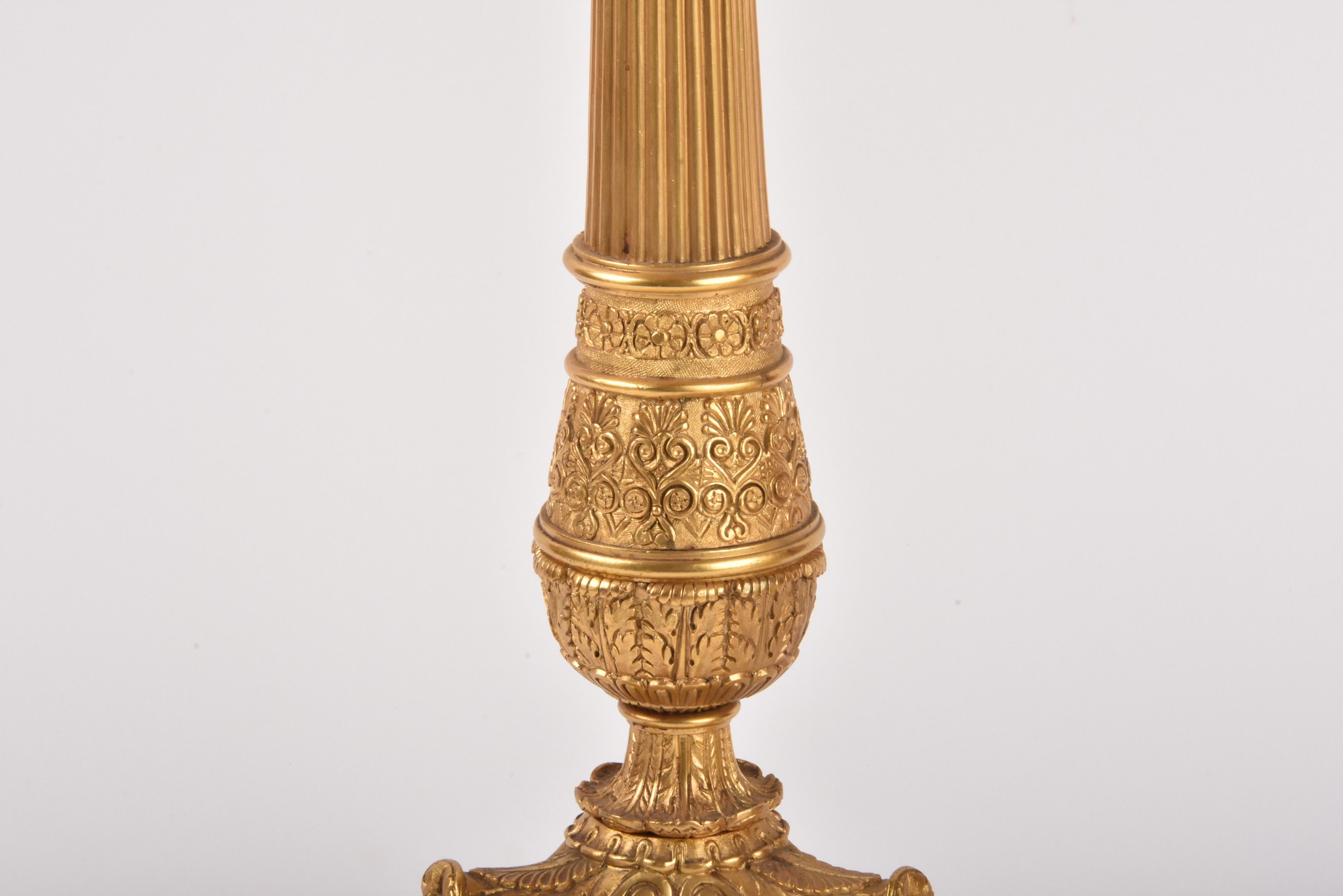Pair of large gilt bronze candelabras. Restoration style. Height 71 cm