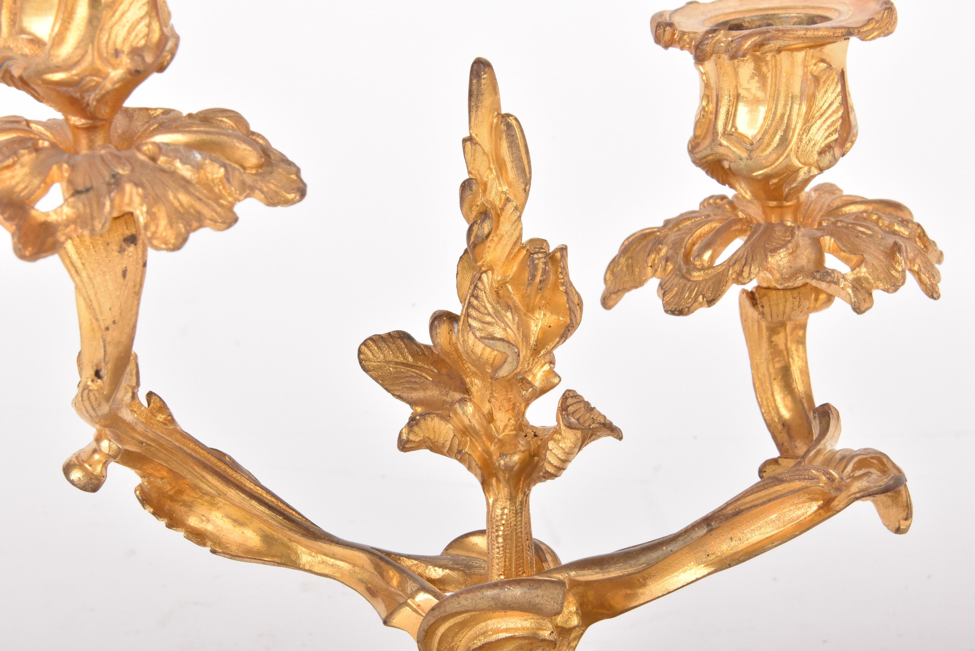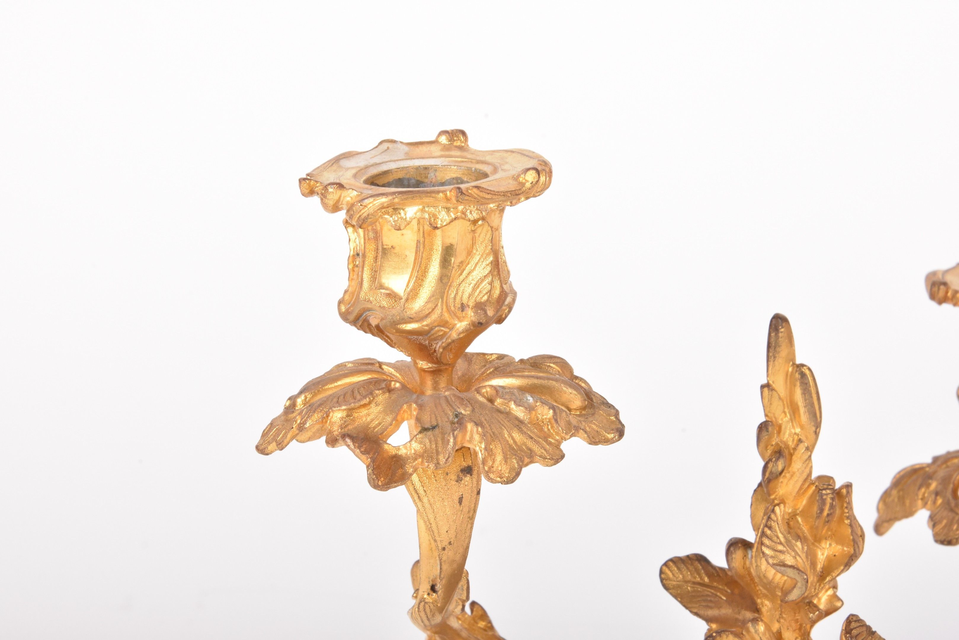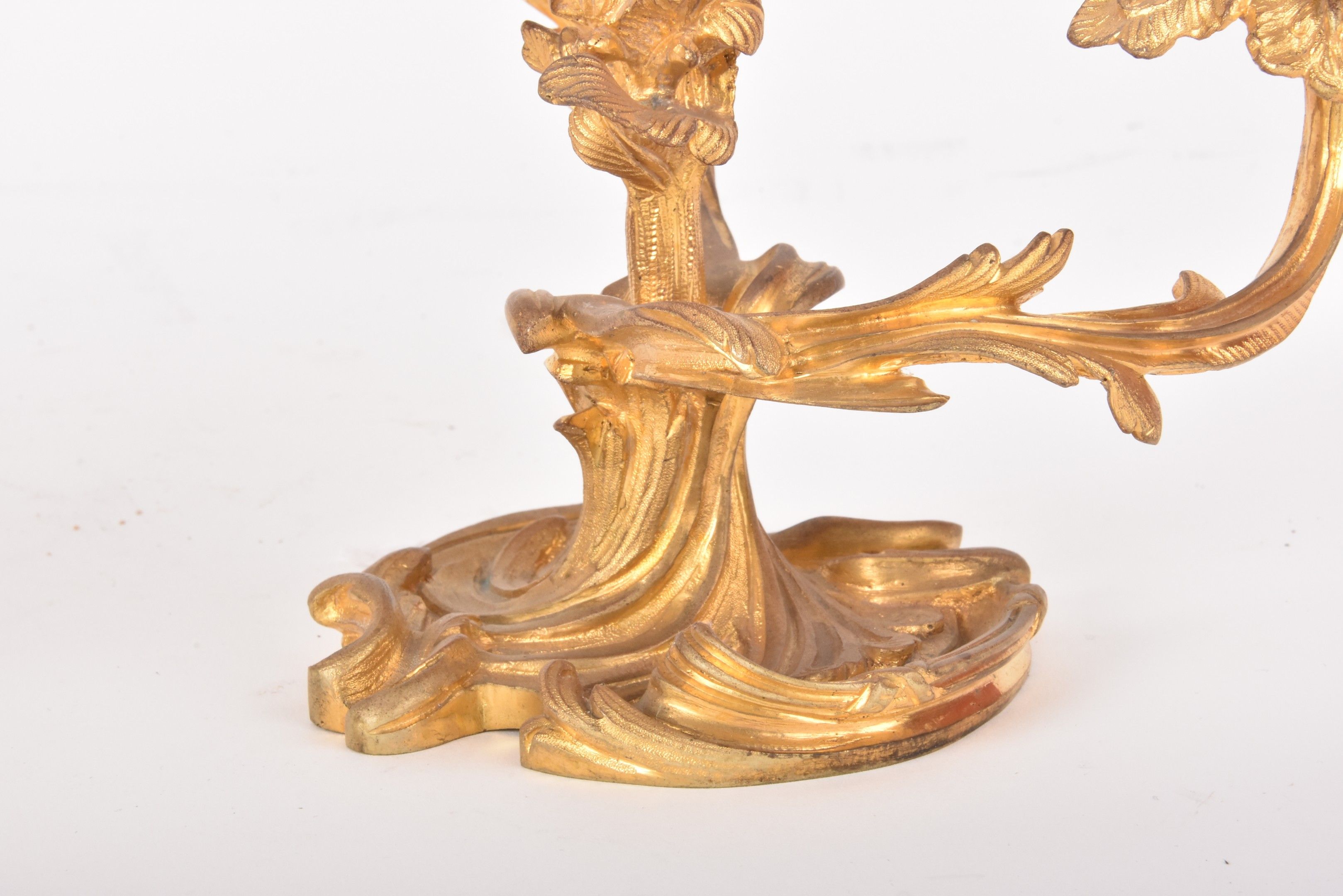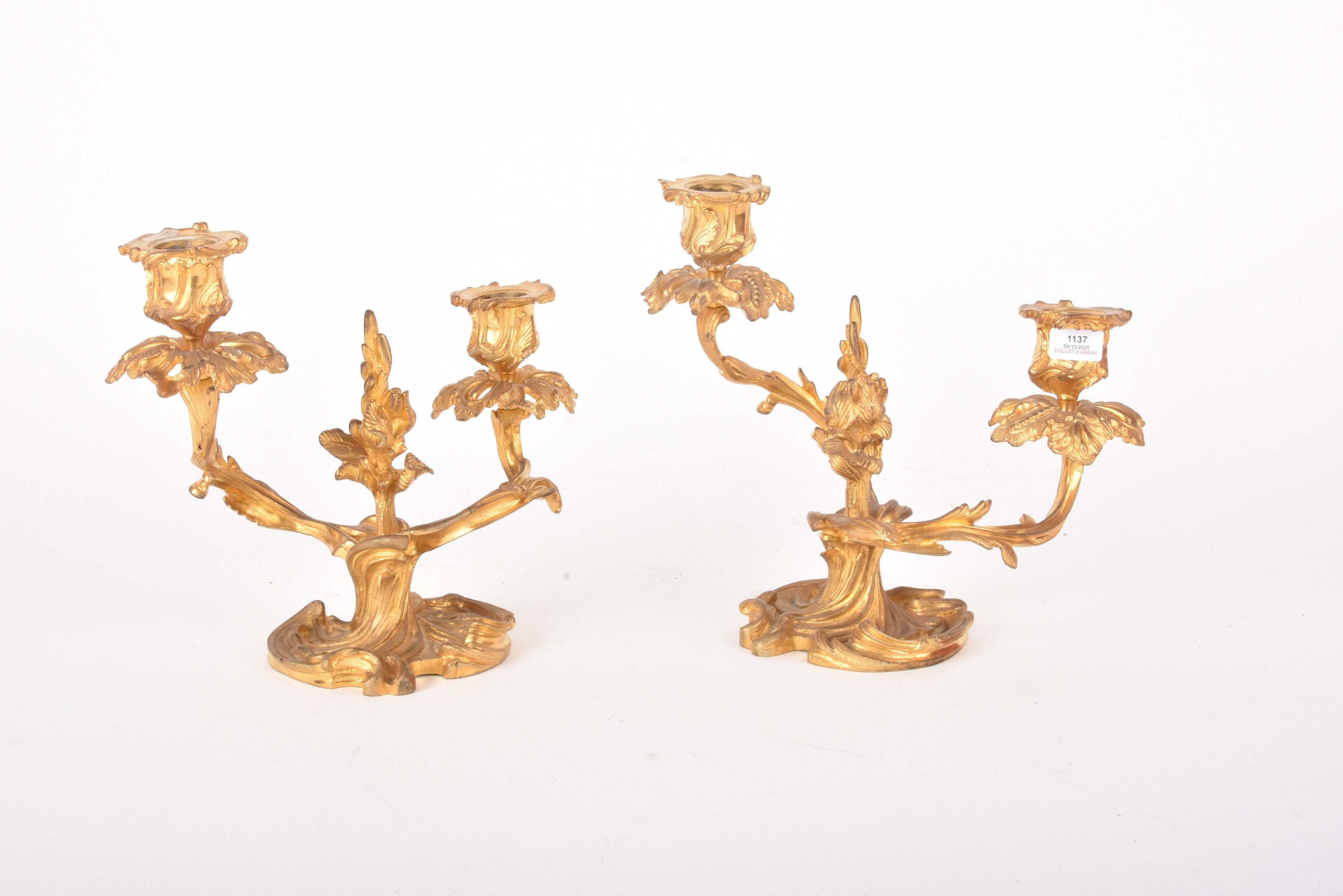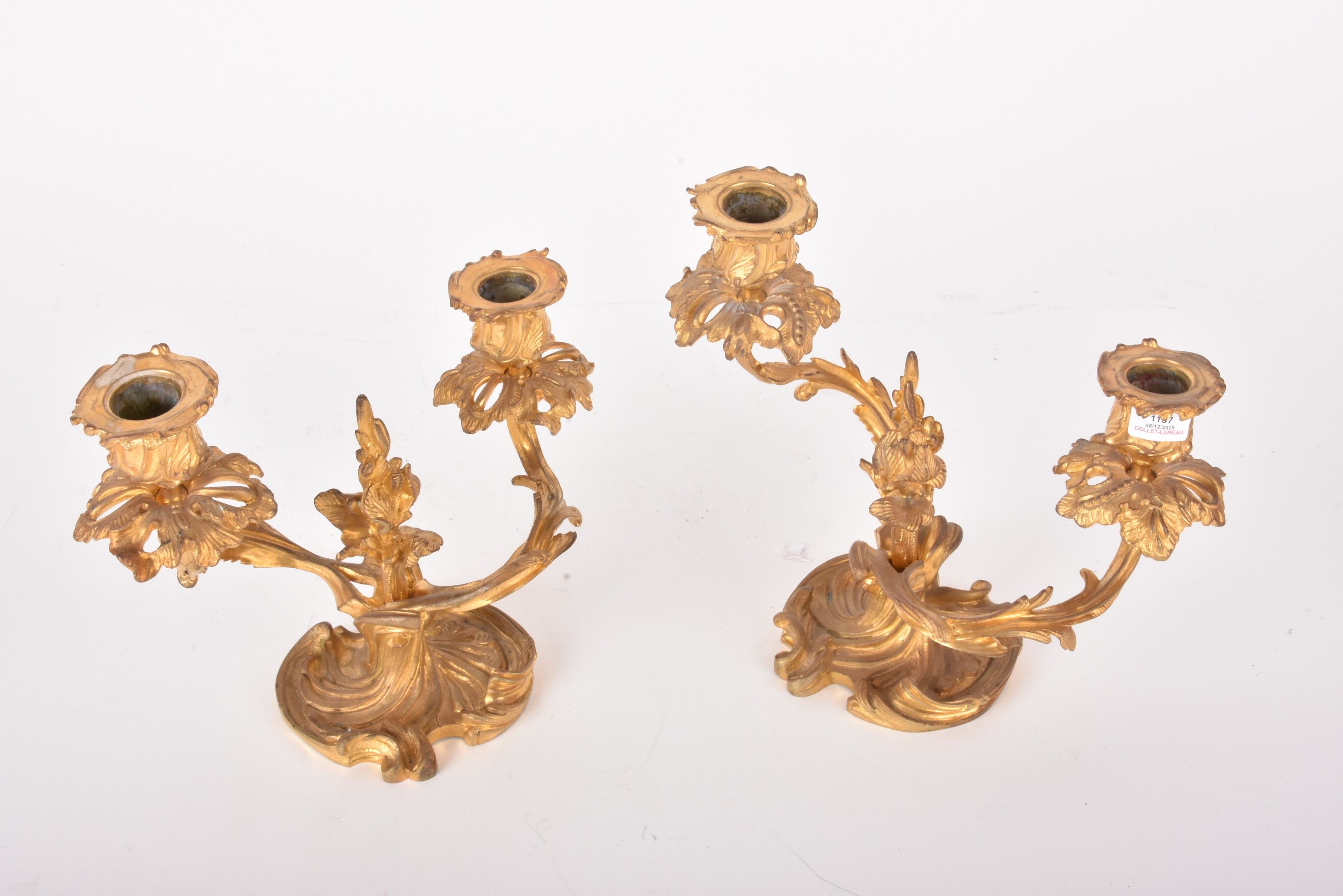 Pair of small chased gilt bronze candelabra in the Rococo style H: 19 cm