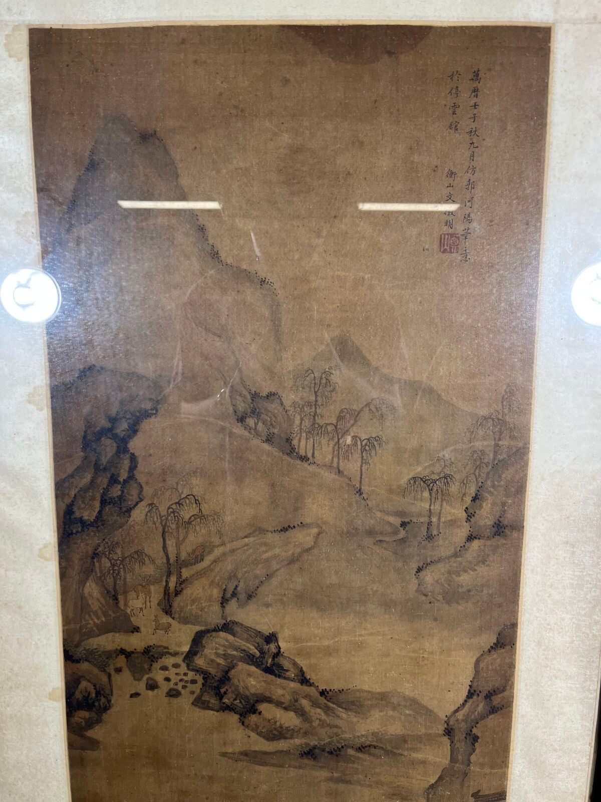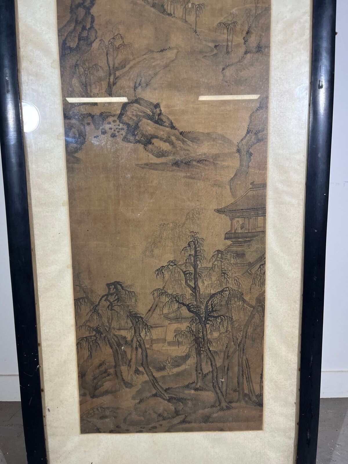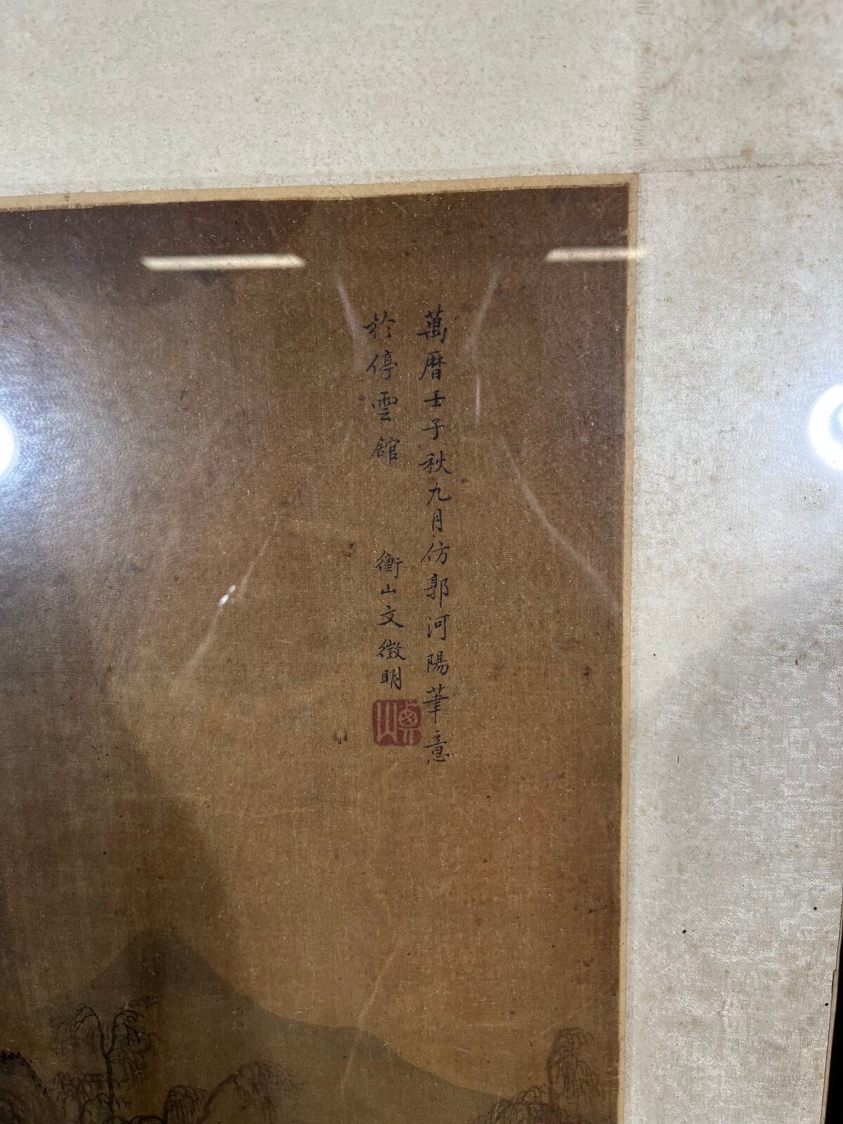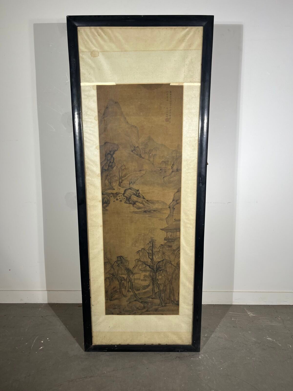 Mounted in a vertical scroll and framed under glass